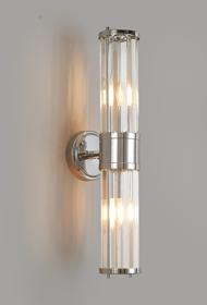 The Mestrino collection presents sophisticated wall light fixtures that combine functionality with elegance. Featuring an IP44 rating, their clear crystal rods provide ample illumination and a stunning visual effect. These tubular shaped wall lights are available in a range of finishes including gold, antique brass, satin black, and polished chrome, each complementing the clear crystal elements that refract light beautifully to create a warm, inviting ambiance.