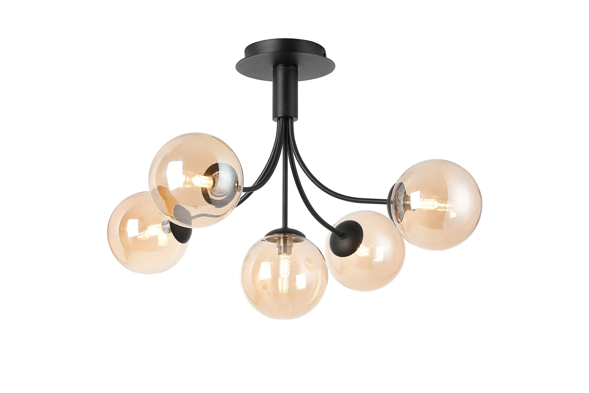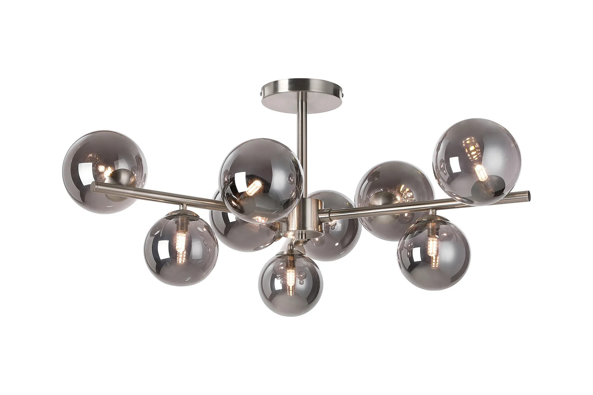 Lanciano Semi Flush Ceiling Light, 6 x G9, Satin Black, Iridescent Plated Glass