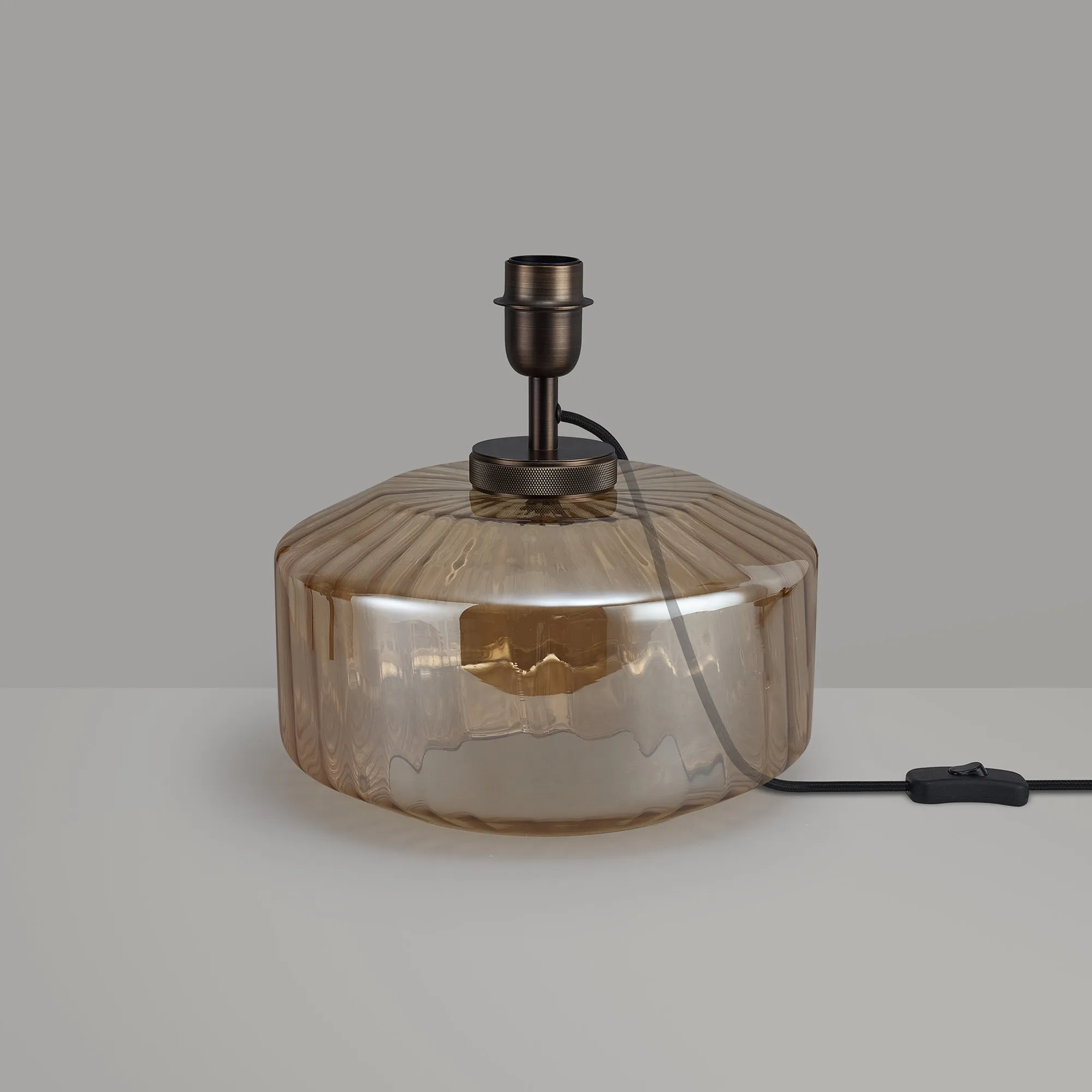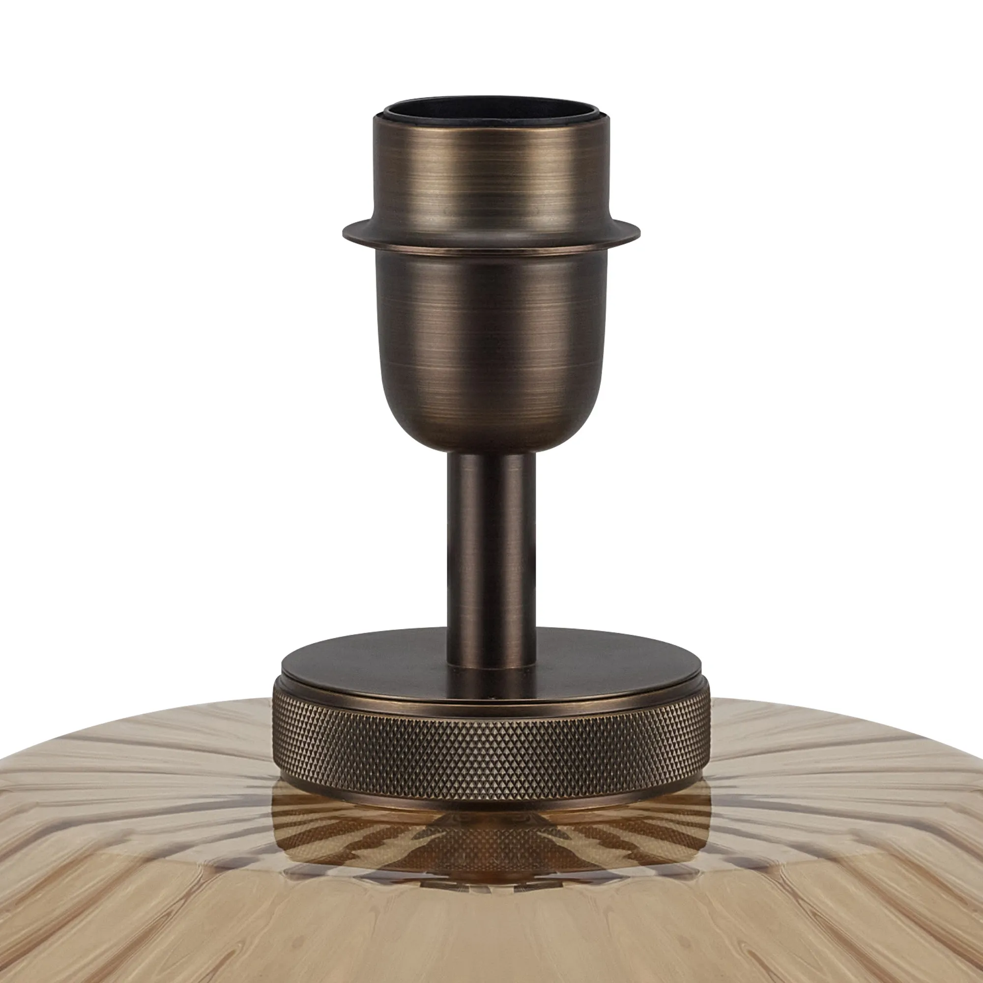 OTHER Pianiga Chamfered Round Rippled Glass Knurled Table Lamp Without Shade, 1 x E27, Matt Bronze/Amber Plated