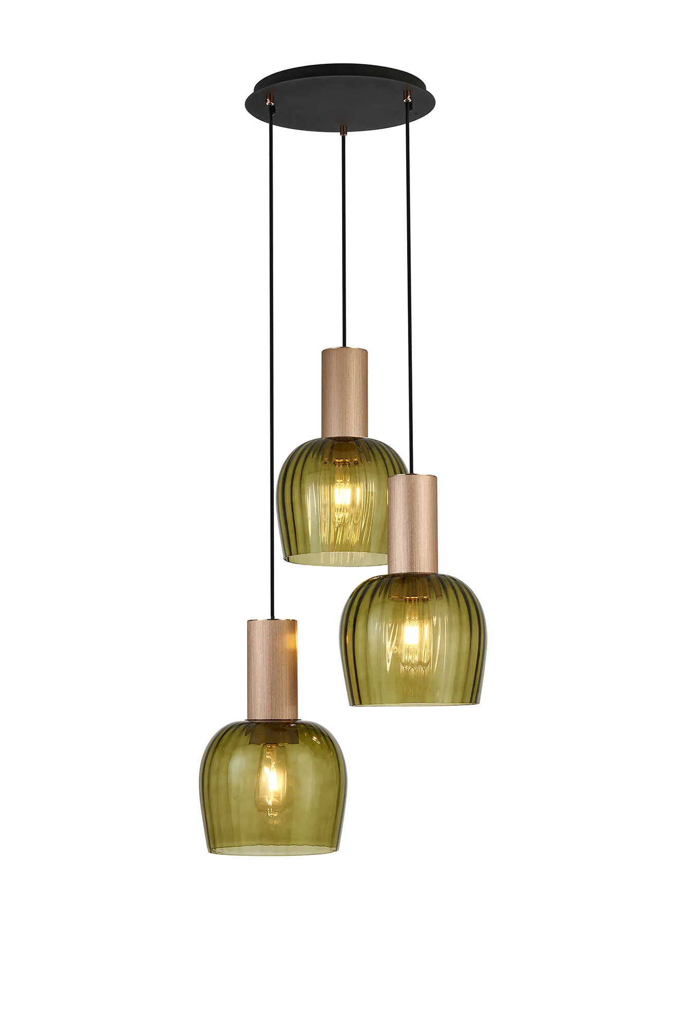Albanella 105.5 x 23.5cm Linear Ceiling Light, 4 x E27, Titanium Gold/Satin Black/Moss Green Ribbed Wine Glass