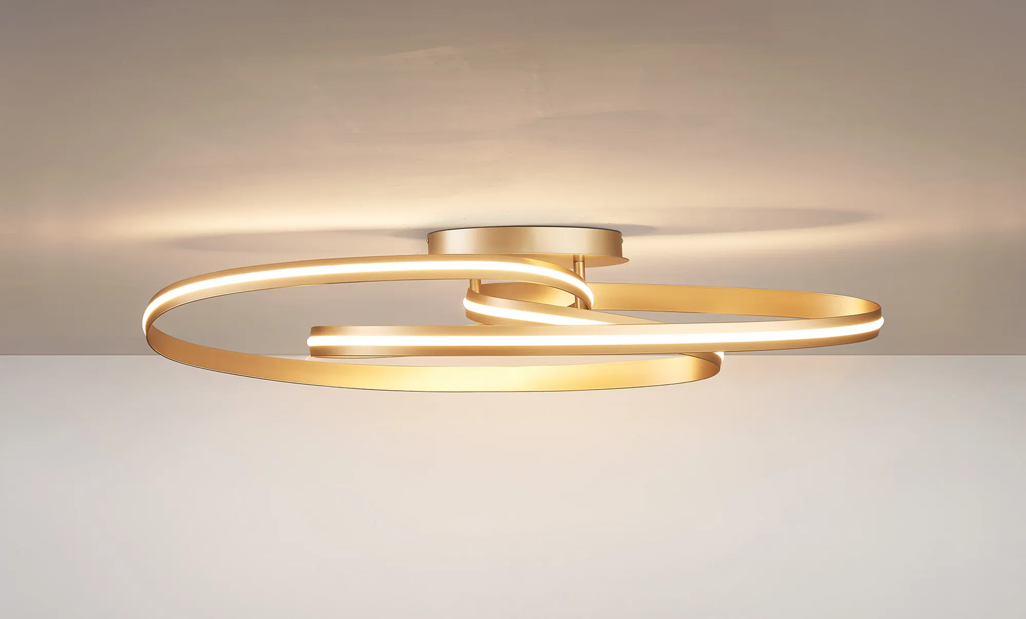 Arcade Loop Semi Flush Ceiling Light, 1 x 34W LED, Triac Dimmable, 3000K, 1900lm, Gold, 3yrs Warranty