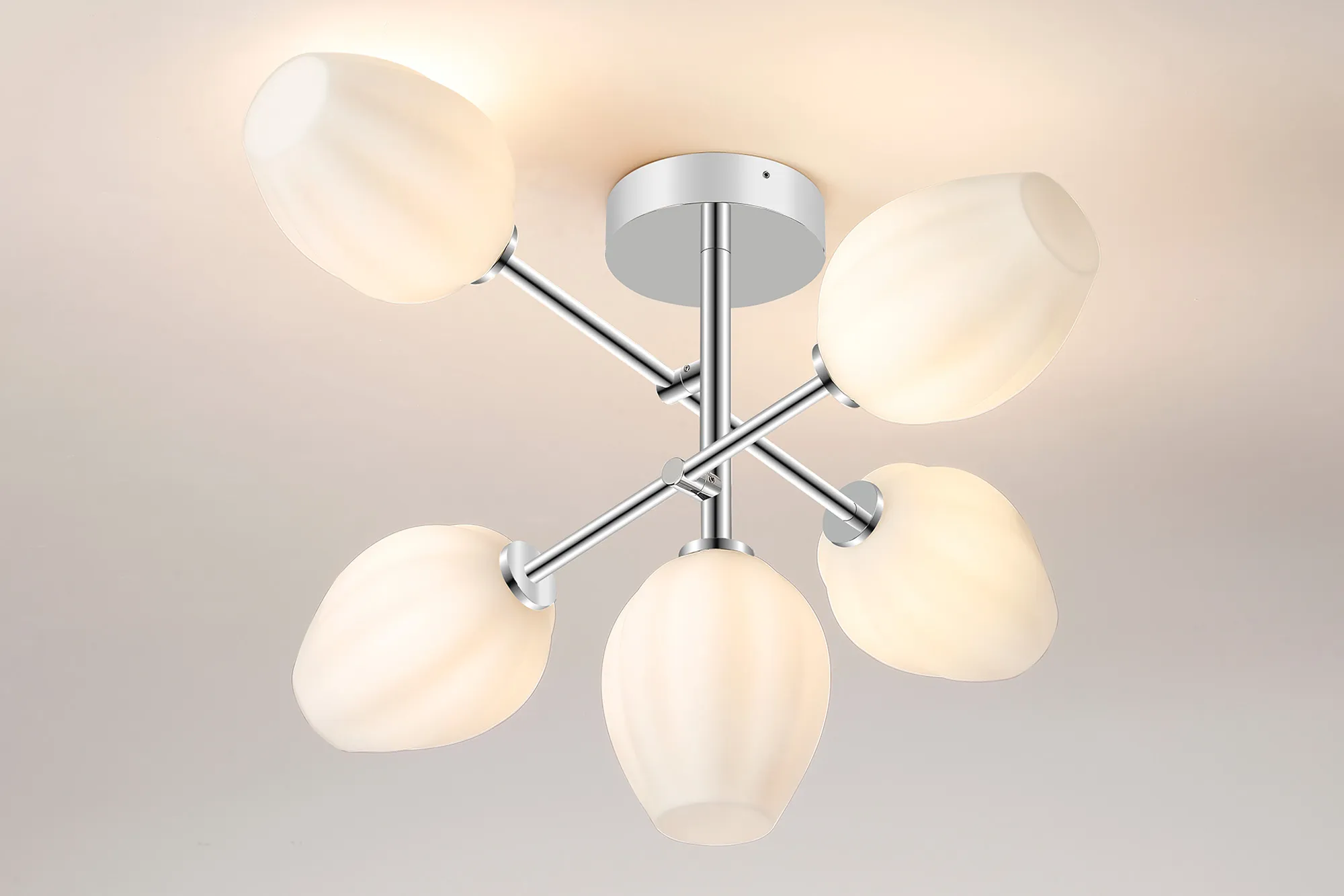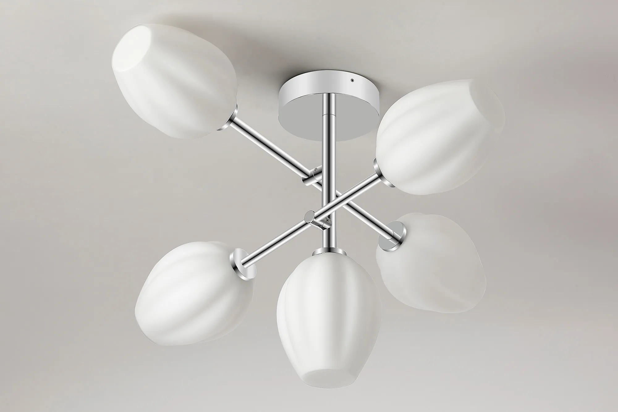 Casalserugo 44.5cm Semi Flush Ceiling Round, 3 Light G9, IP44, Polished Chrome/Opal Tulip Glass Shade