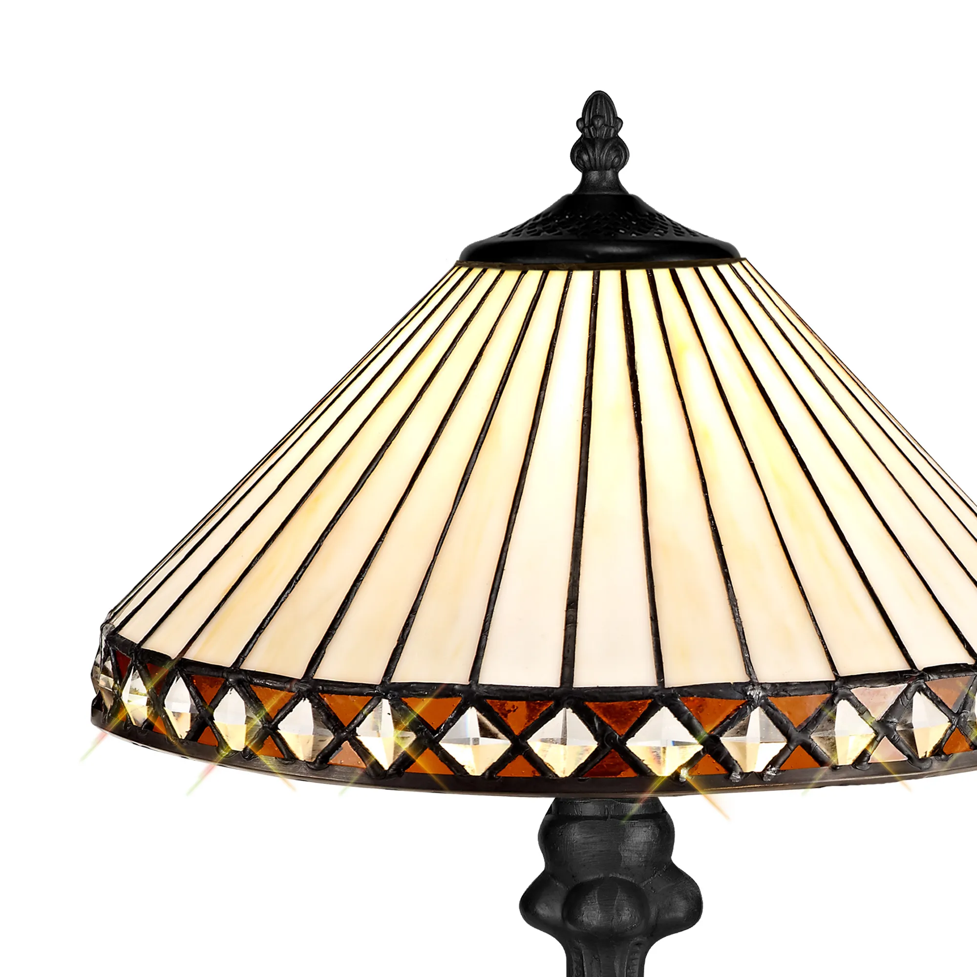 The stylish fanned effect of these attractive Tiffany shades offer a uniform symmetry. The traditional Tiffany design, which has outlasted countless modern trends has been maintained with the suitable cream and amber colour finish. Serchio's shades can be used with pedants, ceiling and table lamps enabling the ability to build a full family of lights within one room setting or home.