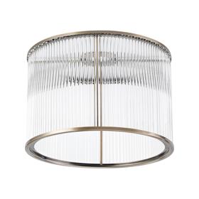 A collection of cylindrical shades featuring metallic edging and clear glass rods. The substantial sizes of these shades allow them to make a dramatic statement regardless of the lighting fixture they are used on. Each shade is available in five colour finishes; antique brass, french gold, polished nickel, satin black or satin nickel.