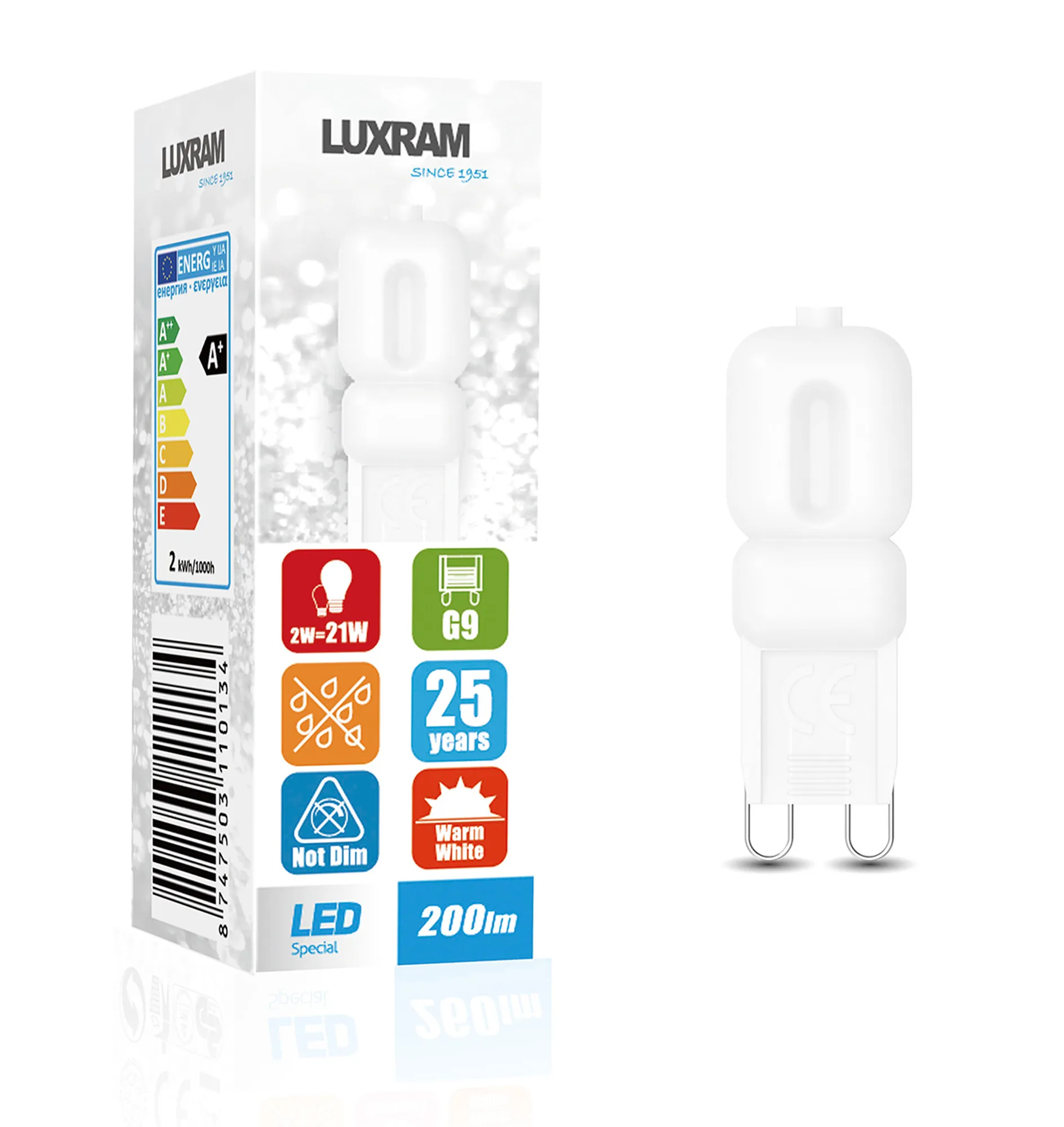 CapsuLED G9 2W 4000K Natural White, 200lm, Frosted Finish 3yrs Warranty