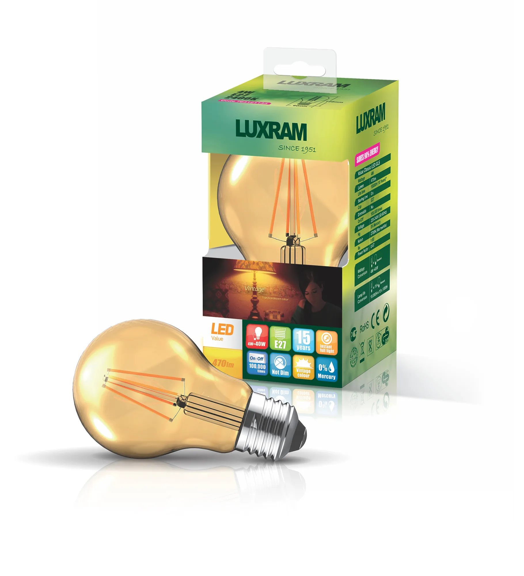 Colour Temperature (K) 2200K Extra Warm White (±5%)