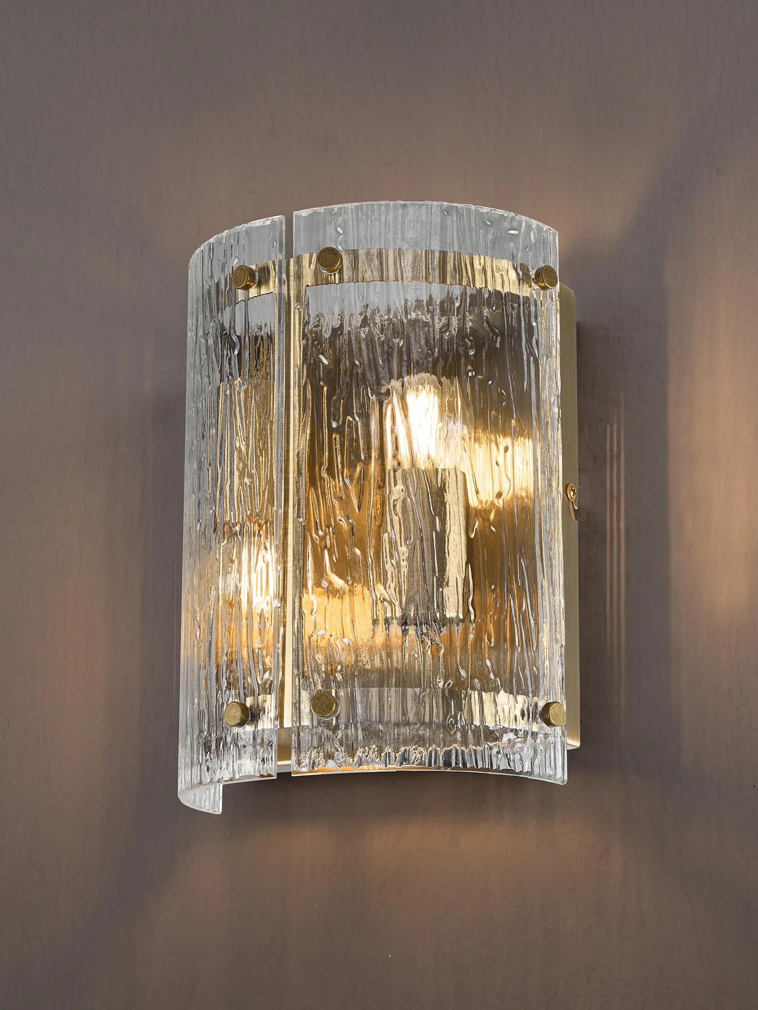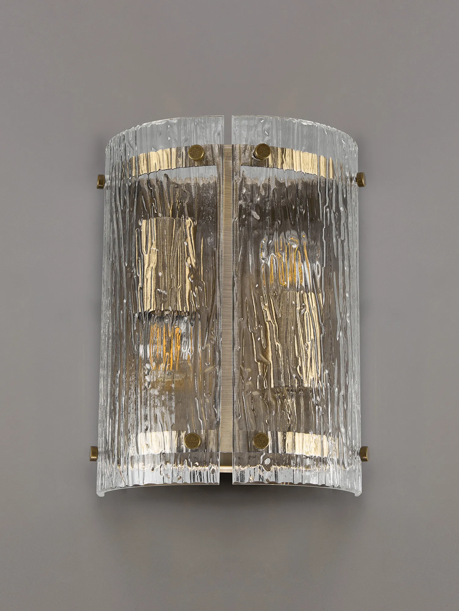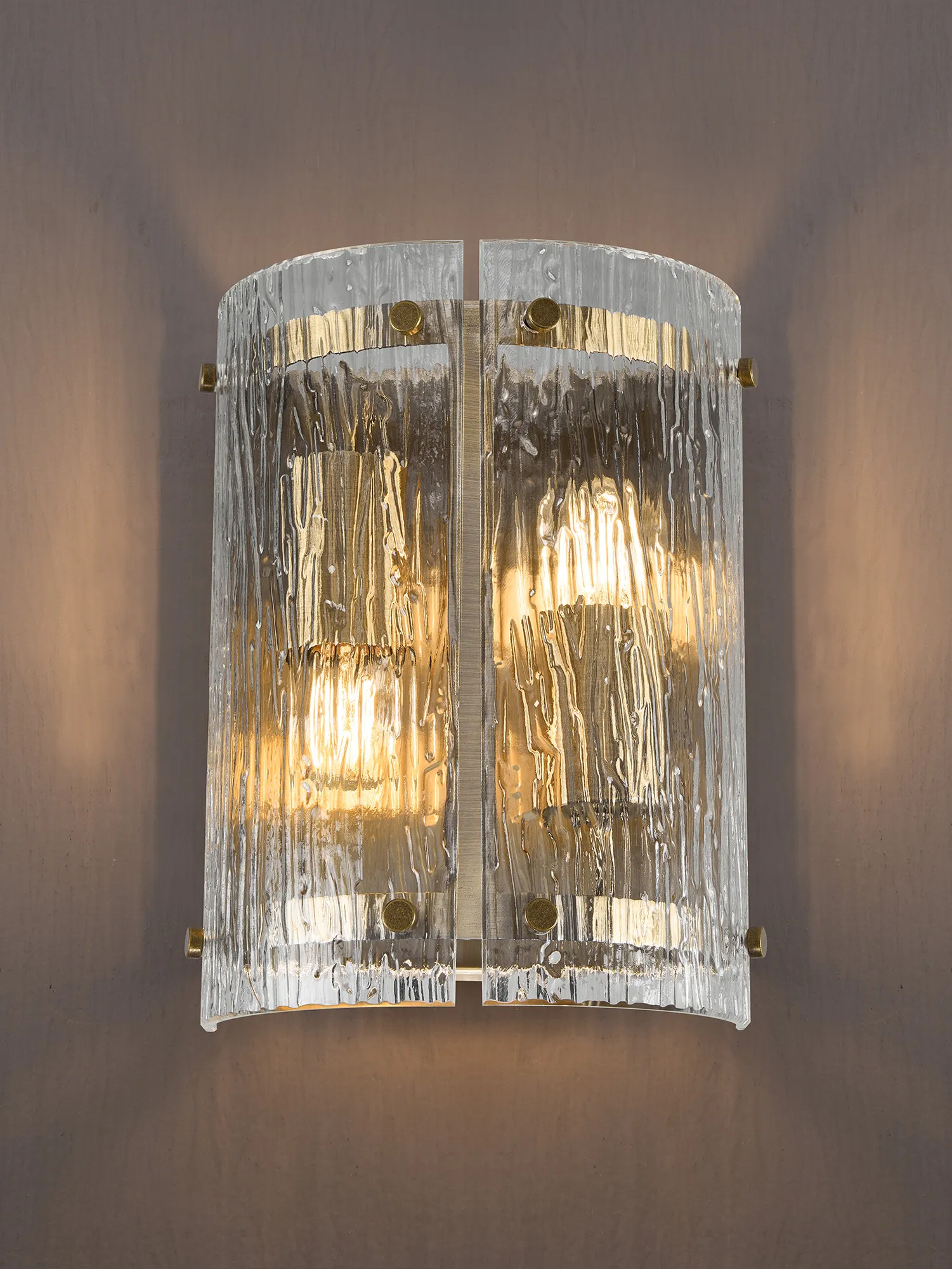 Prato 35cm Pendant, 2 x E27, Antique Brass / Rippled Clear (F) Glass