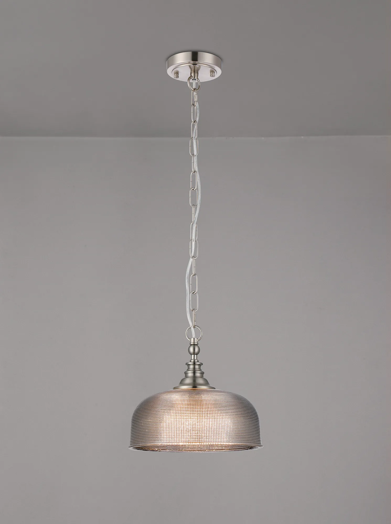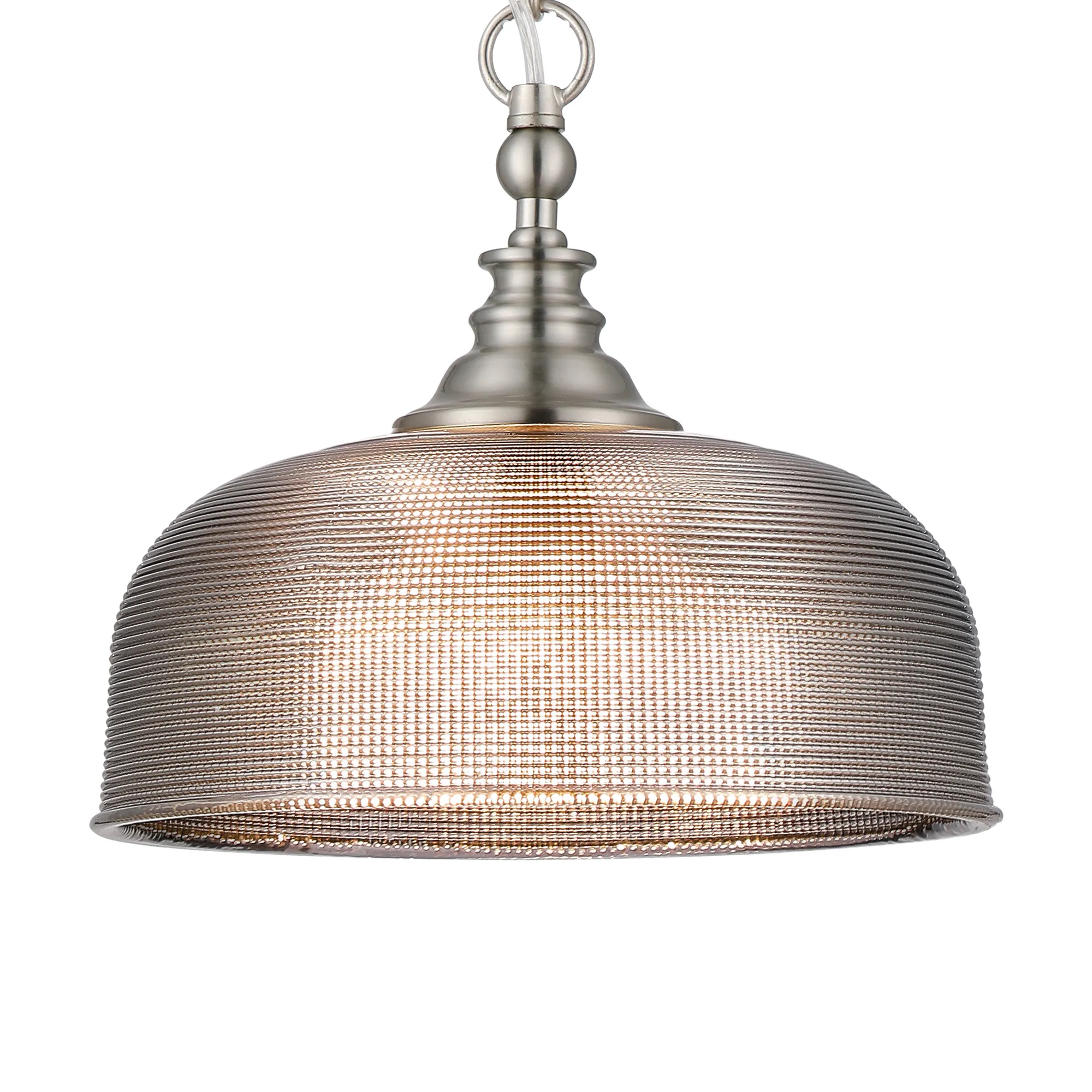 Landiona is a fully comprehensive range of E27 fixtures ranging from; flush ceiling, various pendants, wall, table and floor lamps. The textured prismatic glass, in a colourful variety, not only give an appealing visual when the lights are not in use but also a dazzling effect when illuminated. Each frame is available in one of four colour finishes; antique brass, polished nickel, satin black and satin nickel.