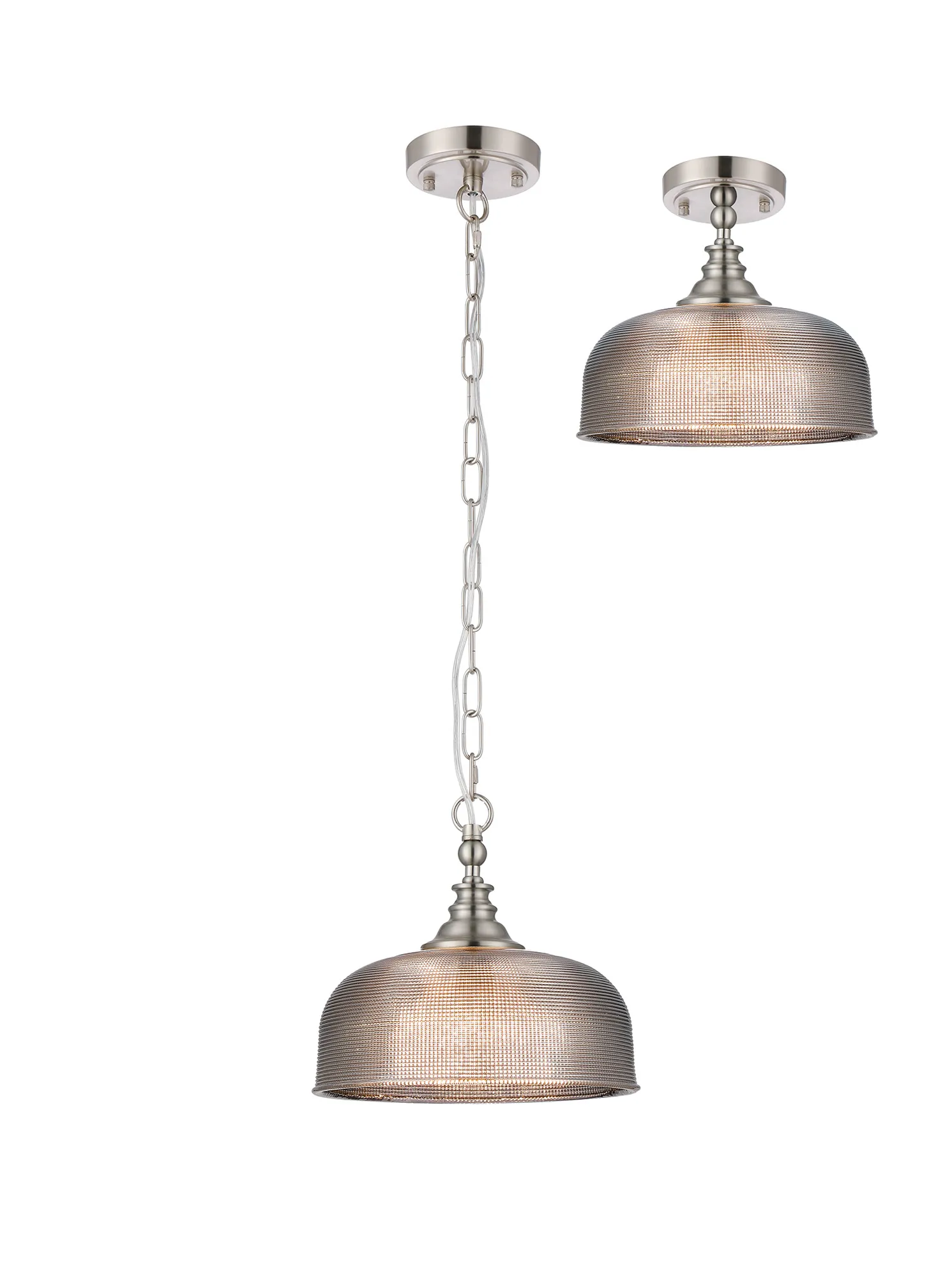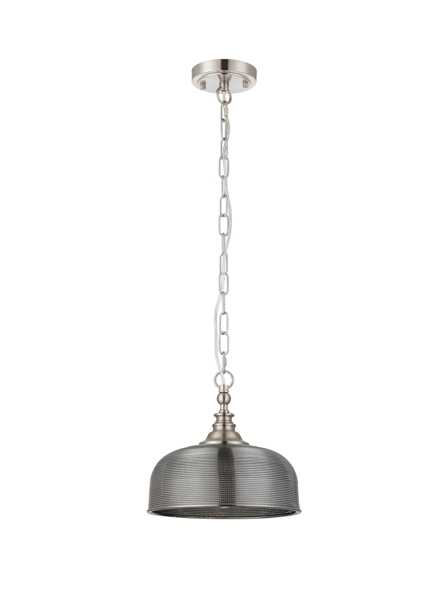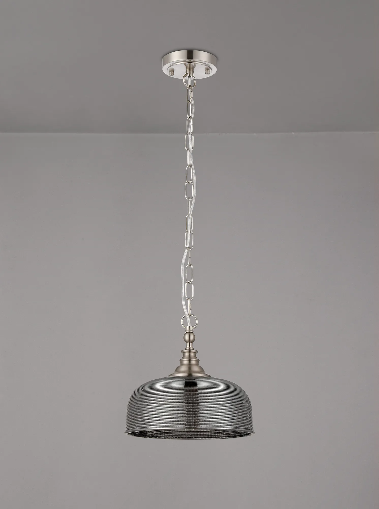 Landiona Semi Flush/Pendant, 3 Light E27, Satin Nickel/Smoke Glass