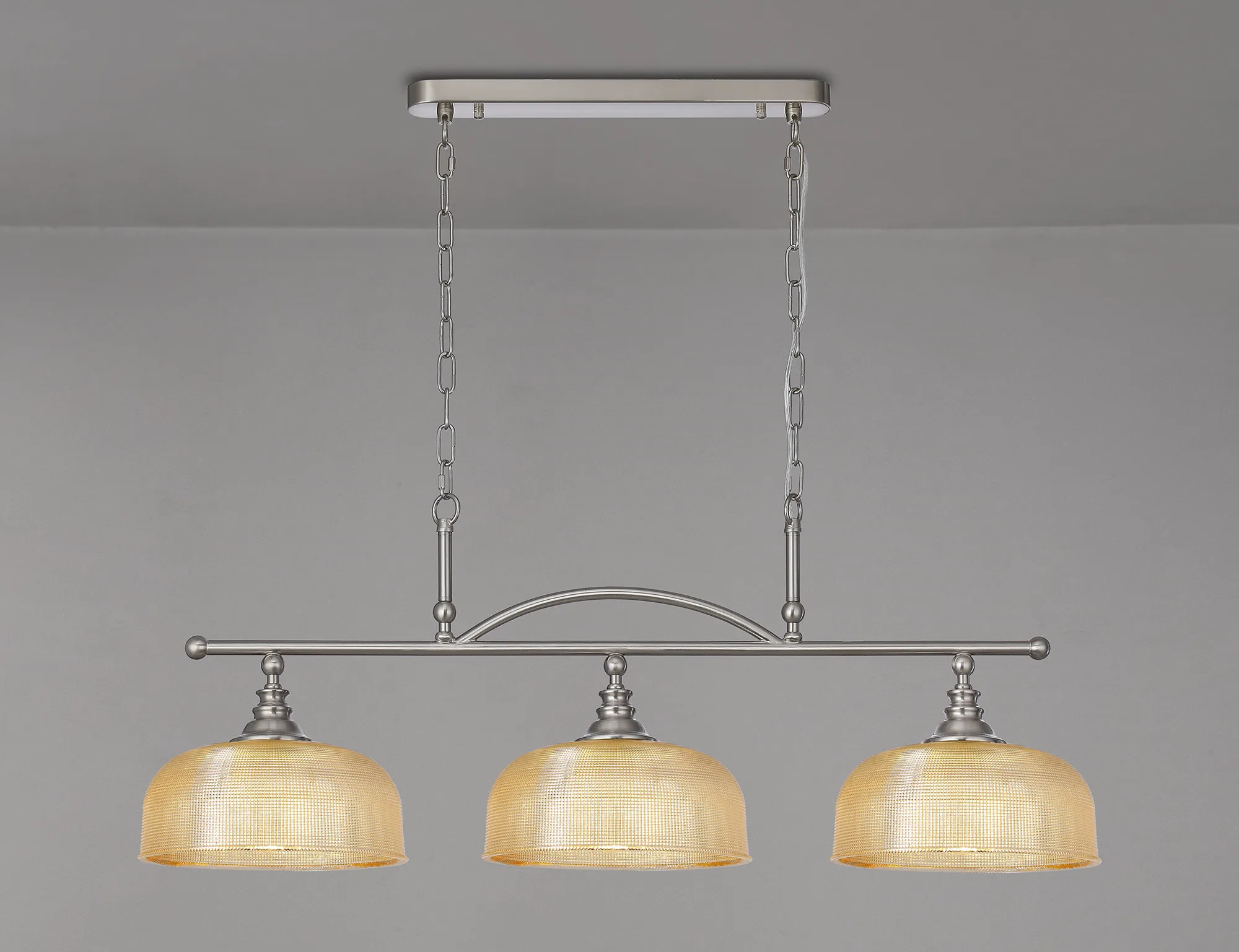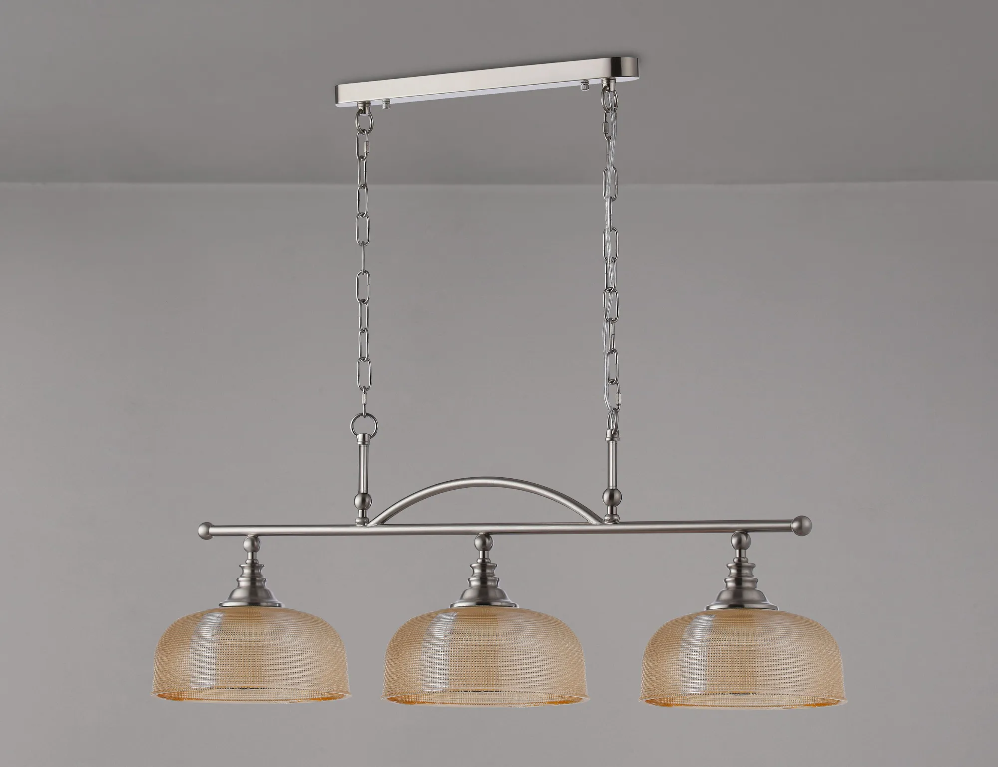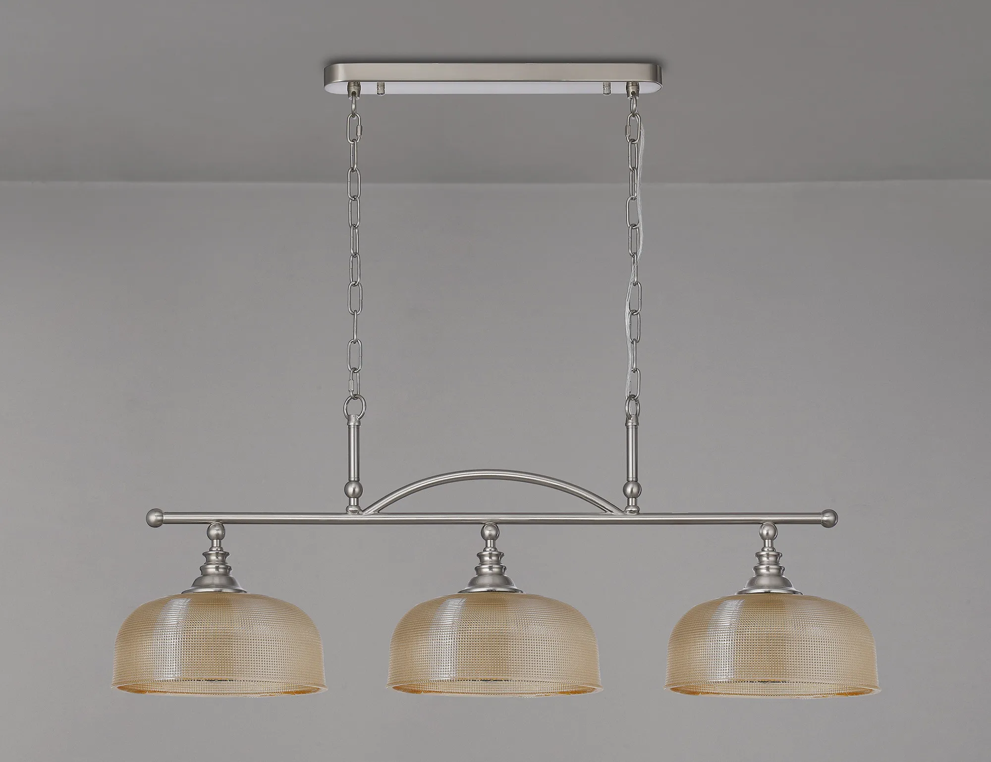 OTHER Landiona Semi Flush/Pendant Bar, 3 Light Adjustable E27, Satin Nickel/Amber Glass