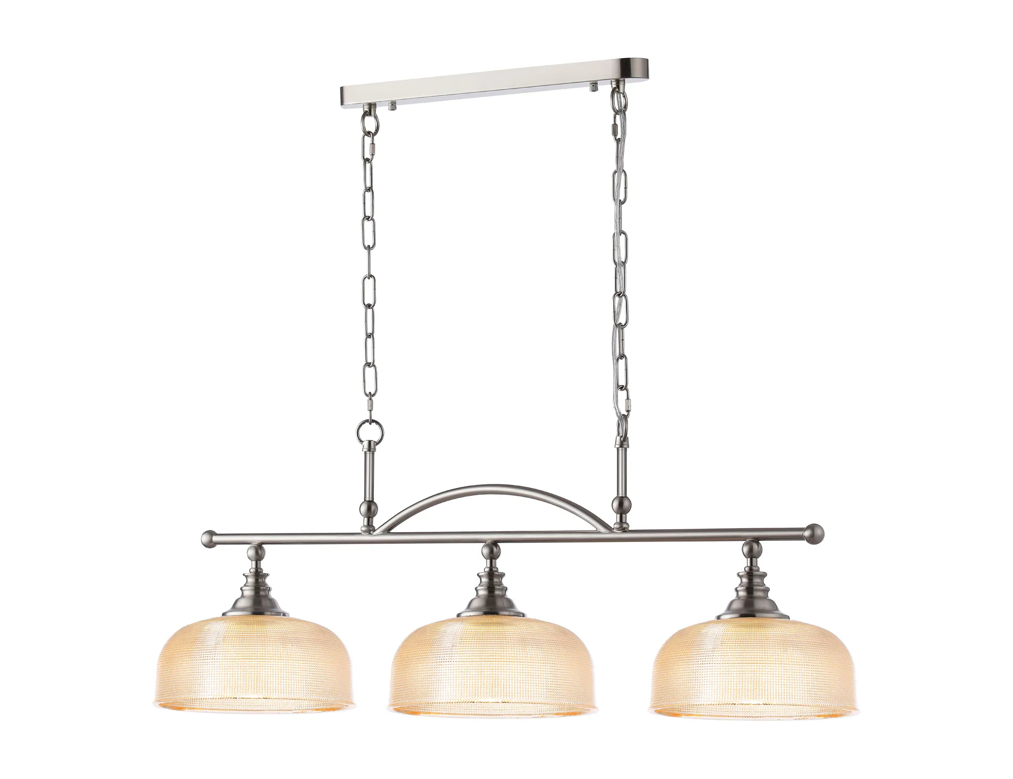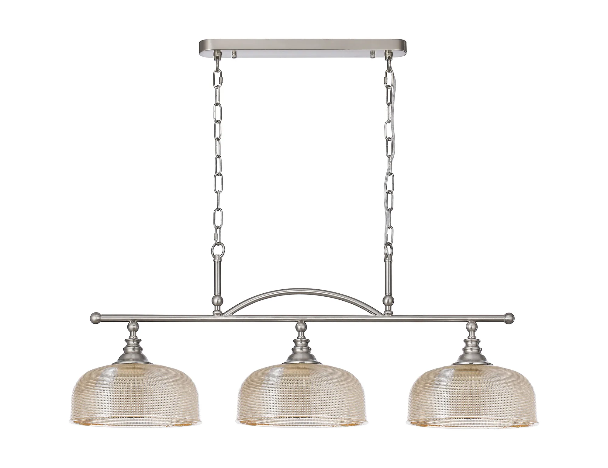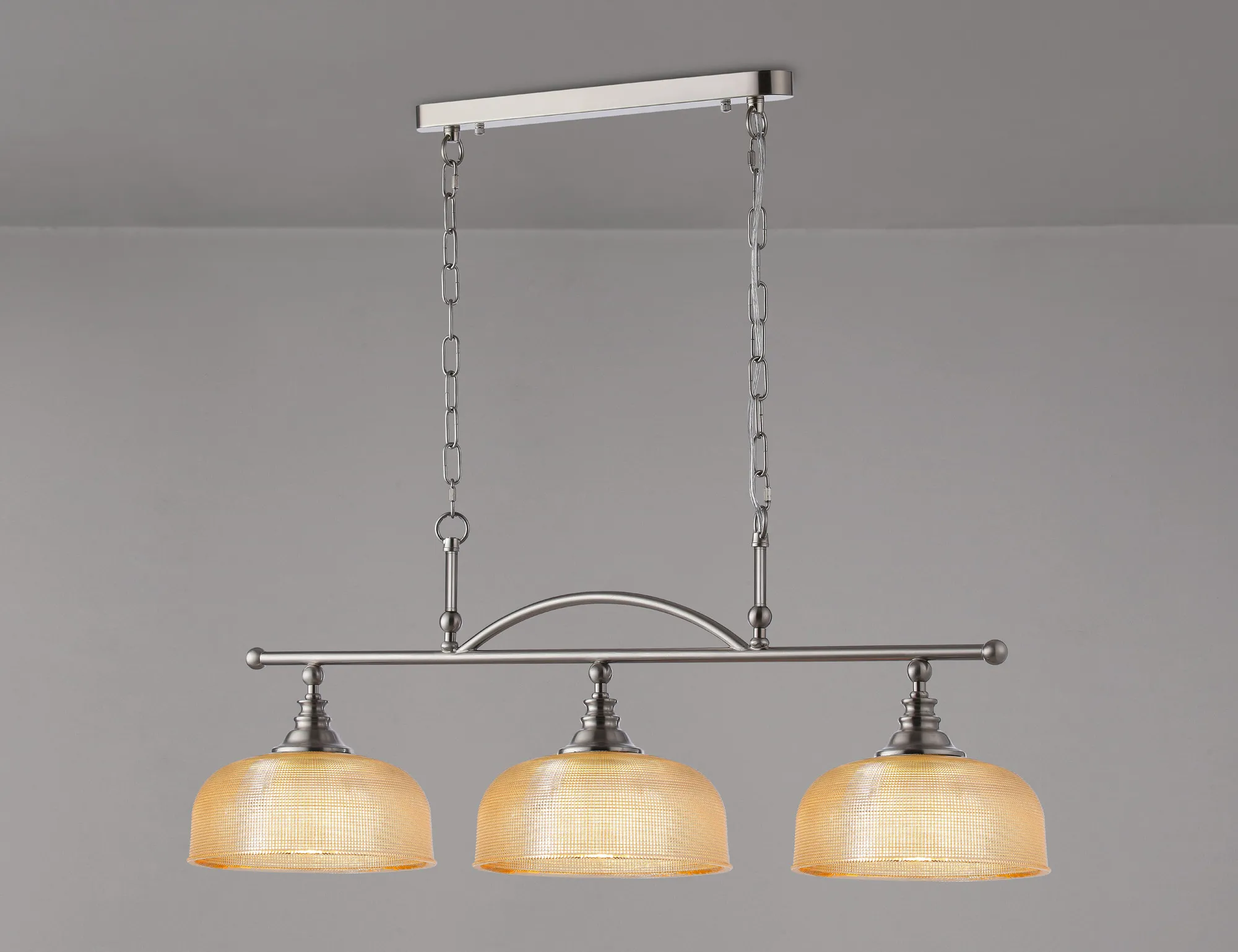 OTHER Landiona Semi Flush/Pendant Bar, 3 Light Adjustable E27, Satin Nickel/Amber Glass
