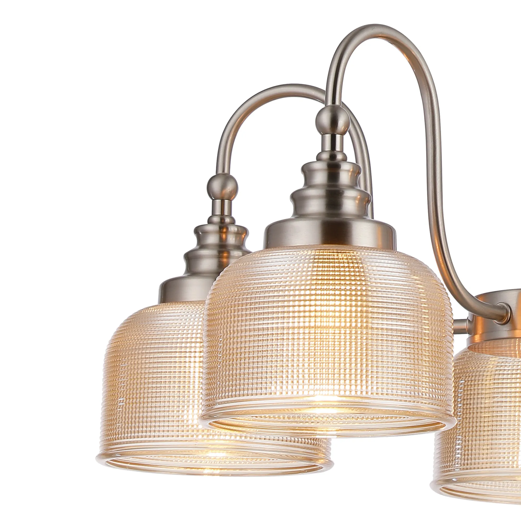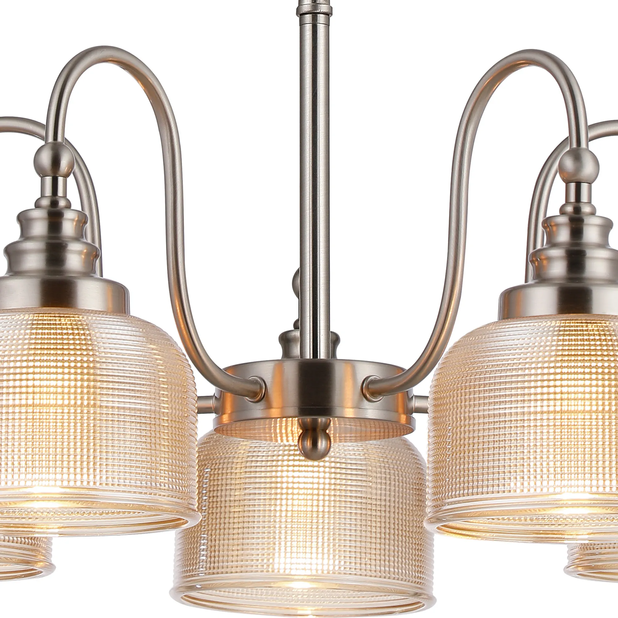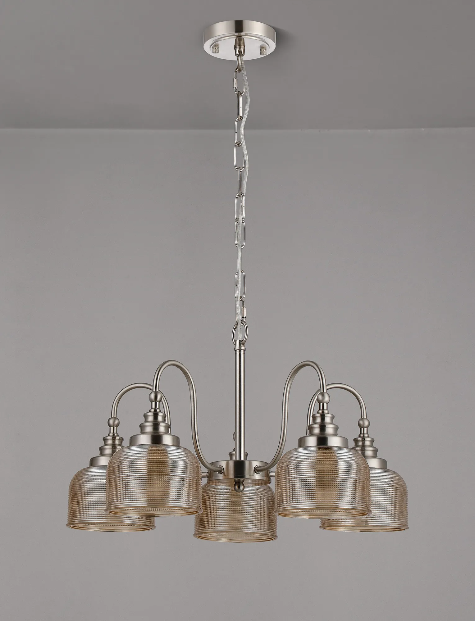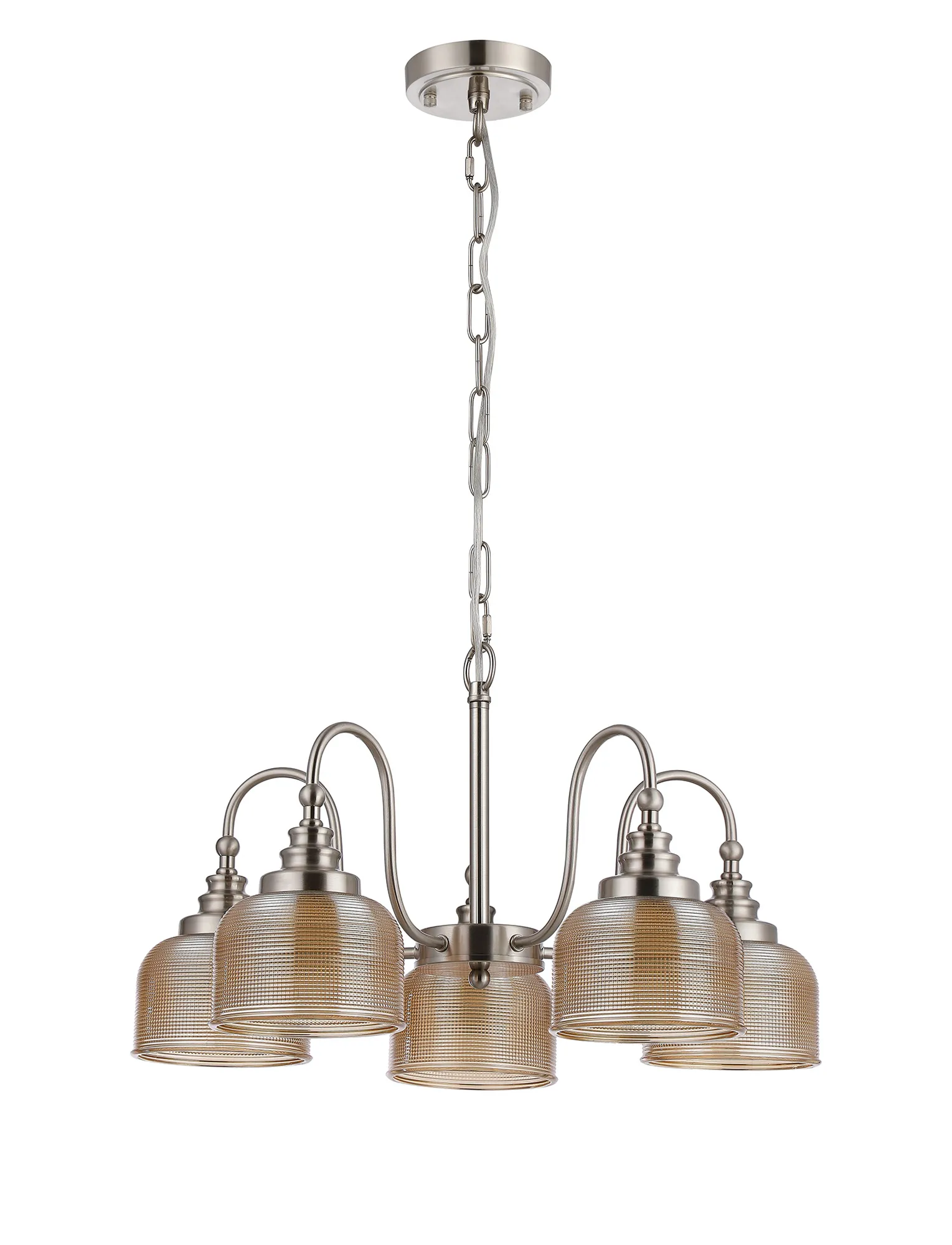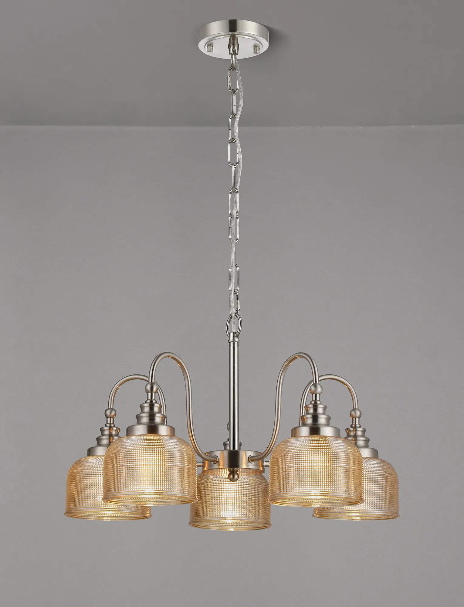 OTHER Landiona Semi Flush/Pendant, 5 Light E27, Satin Nickel/Amber Glass