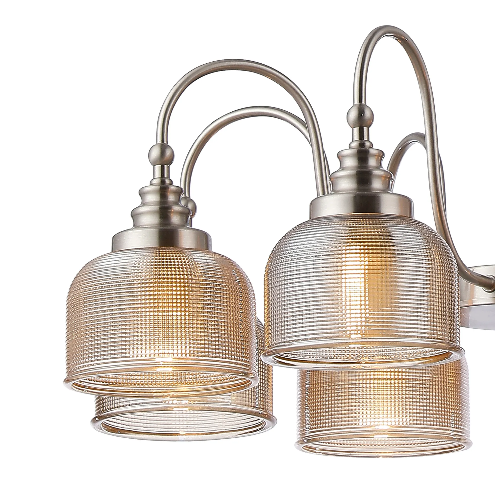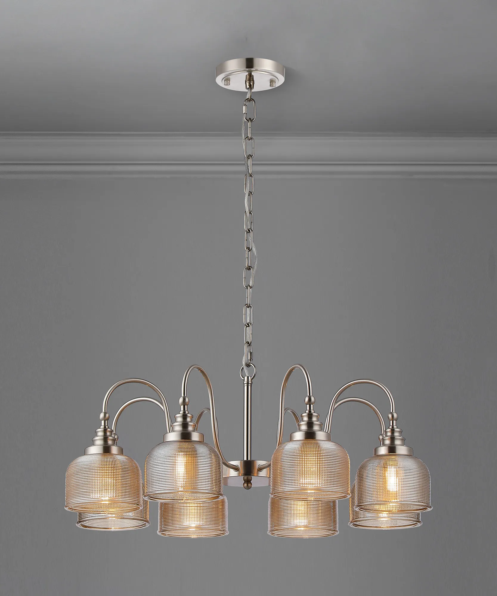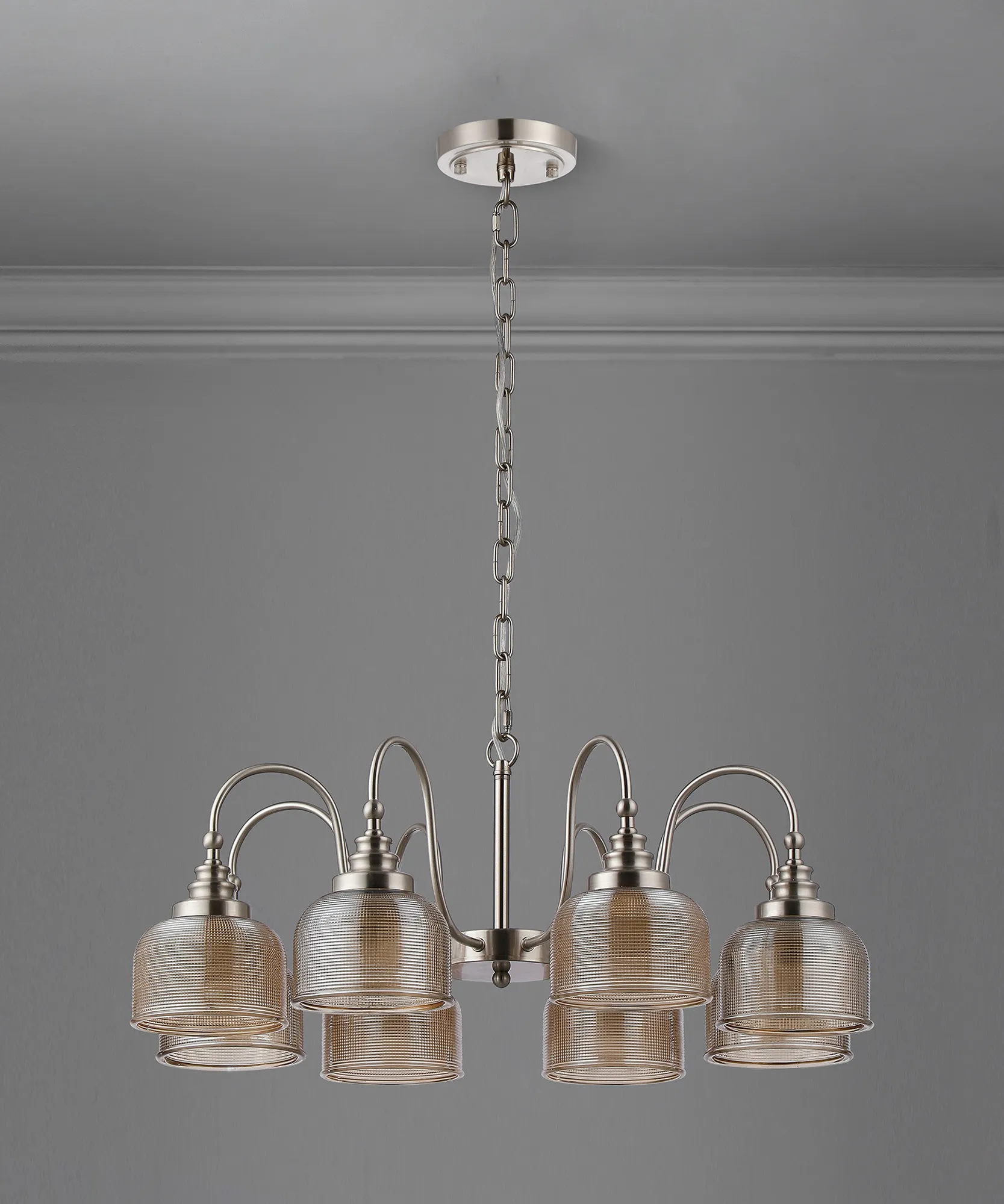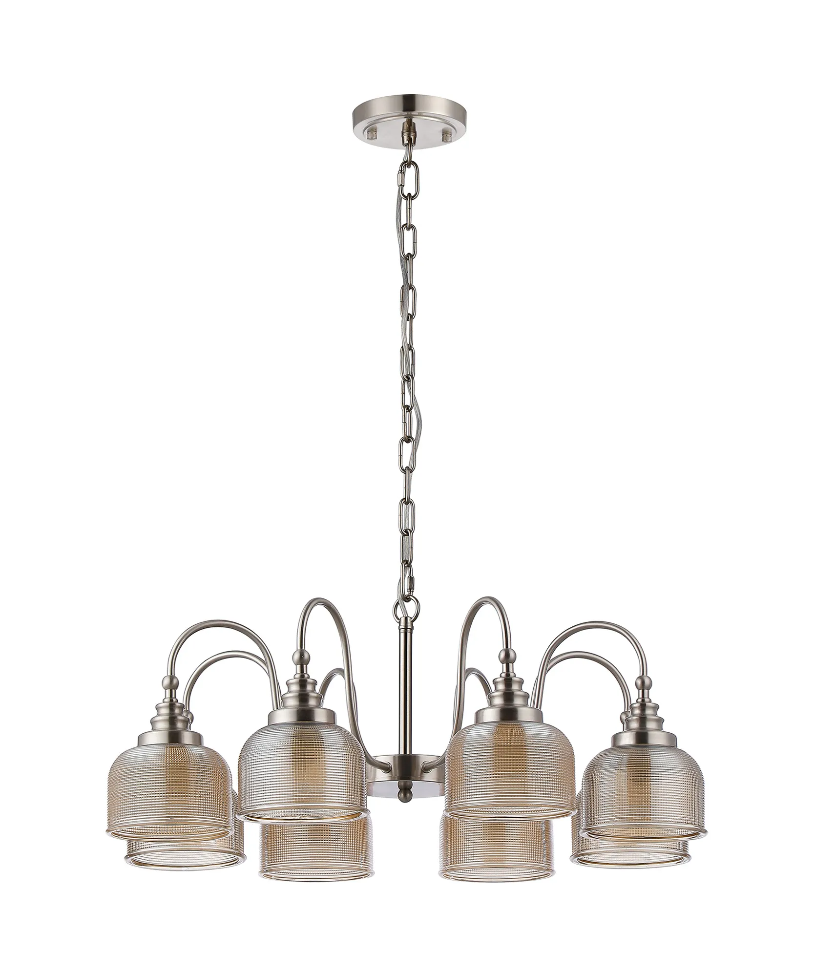 OTHER Landiona Semi Flush/Pendant, 8 Light E27, Satin Nickel/Amber Glass