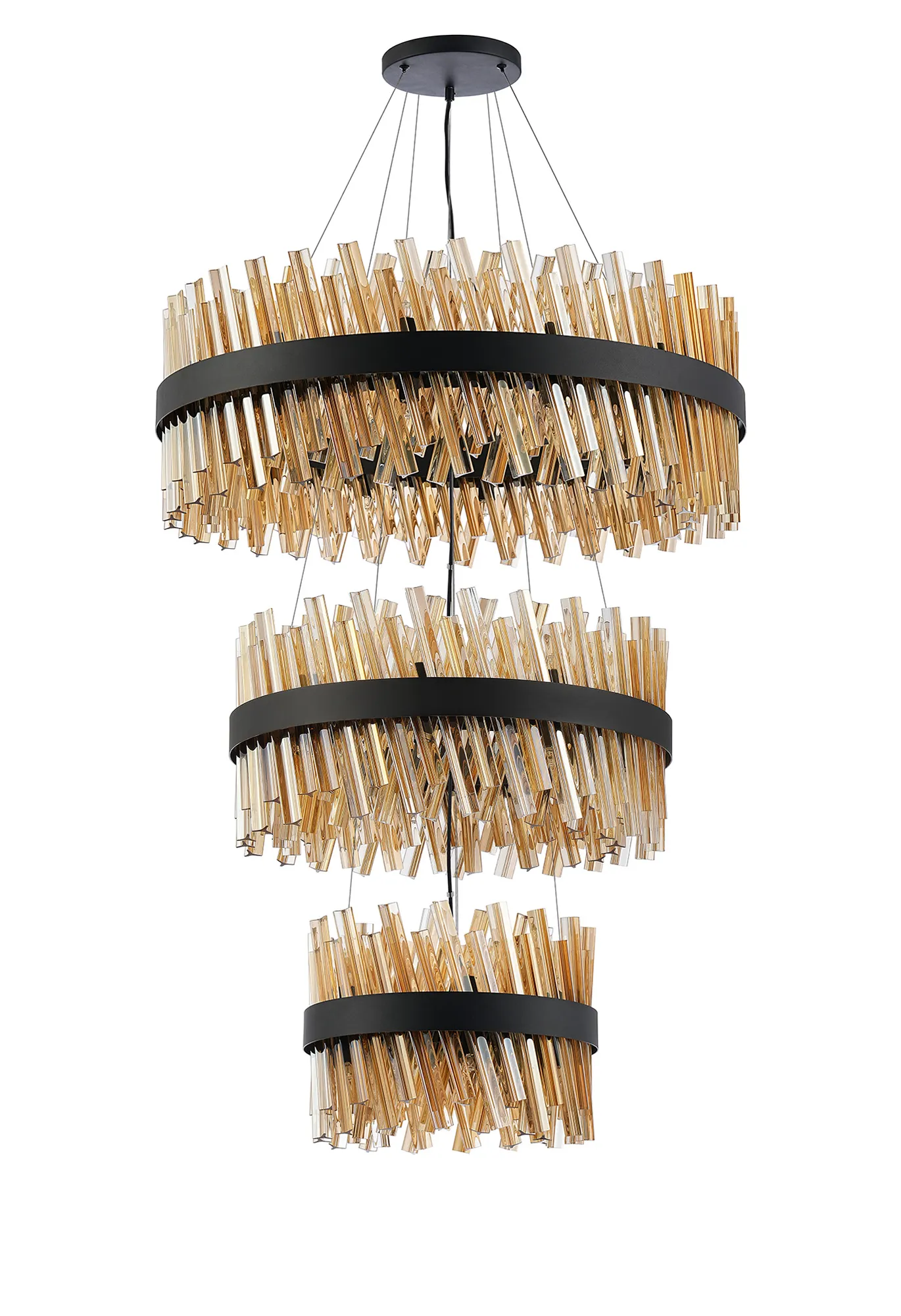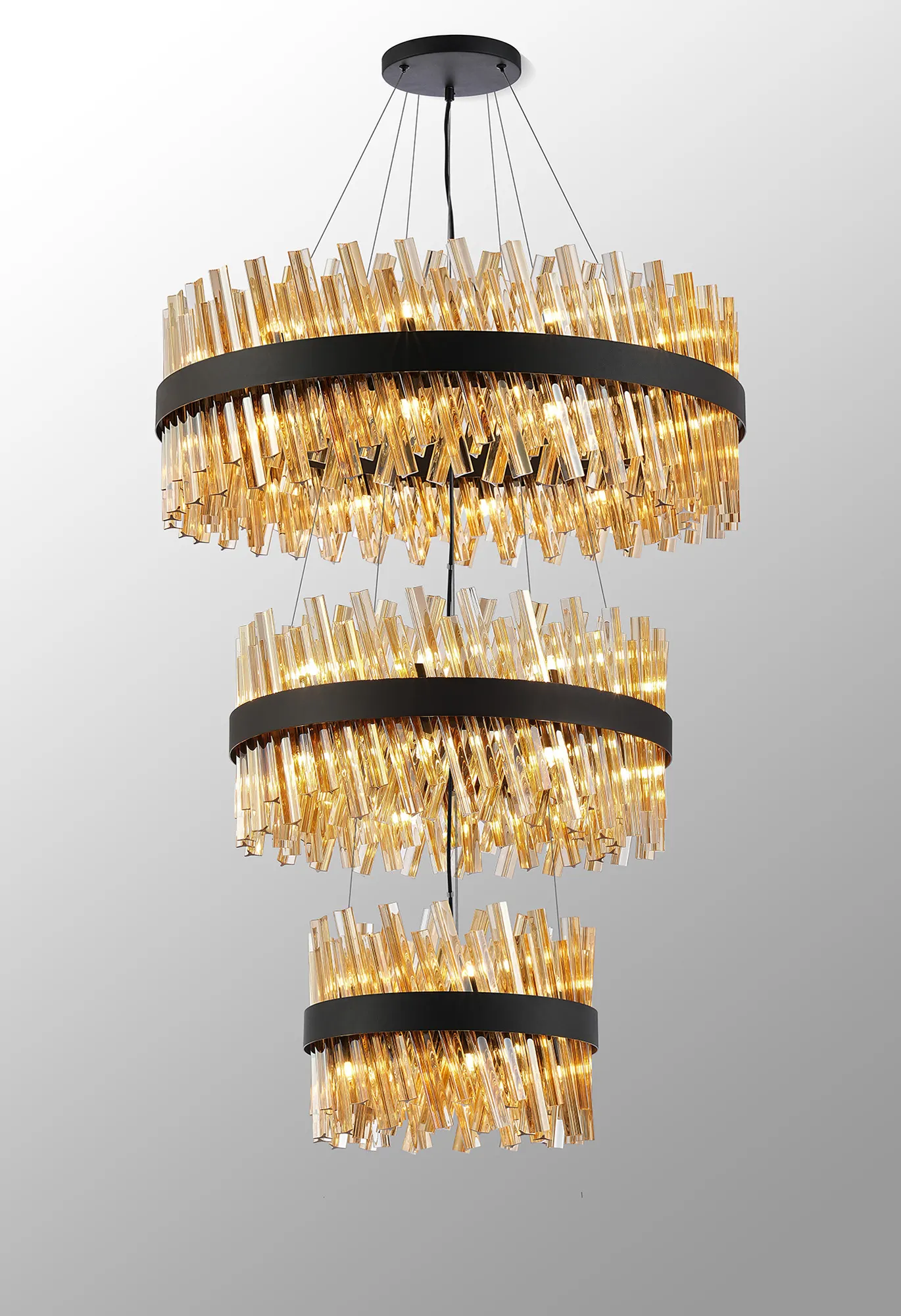 OTHER Fondo 3 Tier 40cm + 60cm + 80cm Pendant, 10 + 18 + 24 Light G9, Satin Black/Amber