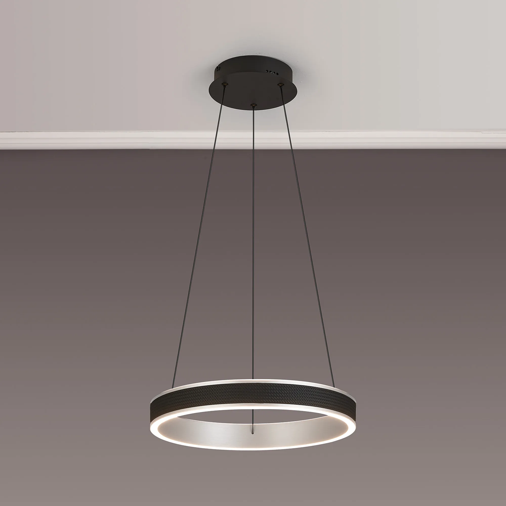 The Vidor pendant light is a strikingly modern lighting solution that masterfully balances style and functionality. Featuring a sleek round design, it is available in a range of sizes-from 40cm to 1 metre, as well as a dramatic 3-tier option-making it suitable for both intimate home settings and sophisticated commercial spaces. A standout feature of Vidor is its tuneable colour temperature, allowing you to adjust the light from a warm 3000K to a crisp 6000K. This flexibility lets you tailor the ambiance to suit any mood or occasion, from relaxed evenings to focused work environments. The design is further elevated by a faux leather exterior, adding a unique tactile element while the choice of brushed gold or Antique Silver finishes lifts the design with a touch of luxury. A matching wall light is also available, enabling a cohesive and contemporary lighting scheme throughout your space. With its refined aesthetic and modern versatility, the Vidor range is as much a design statement
