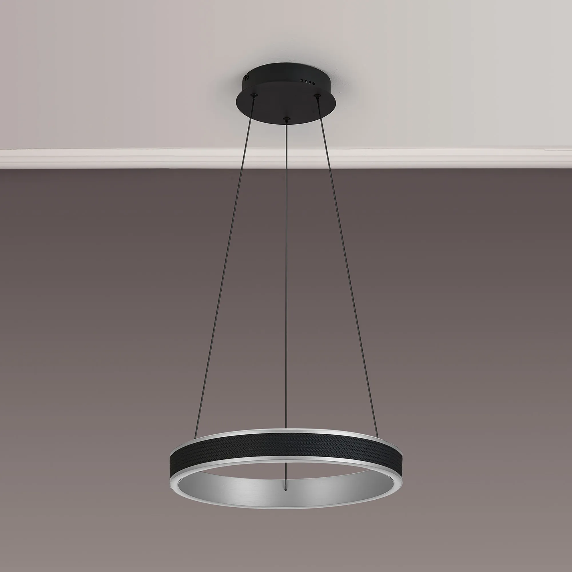 Vidor 59cm Round Pendant, 45W LED, Remote Control Tuneable White 3000-6000K, 3000lm, Black Faux Leather/Antique Silver, 3yrs Warranty