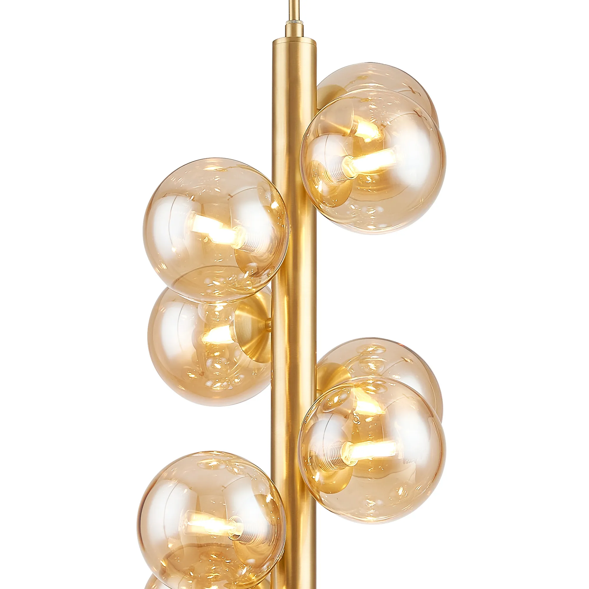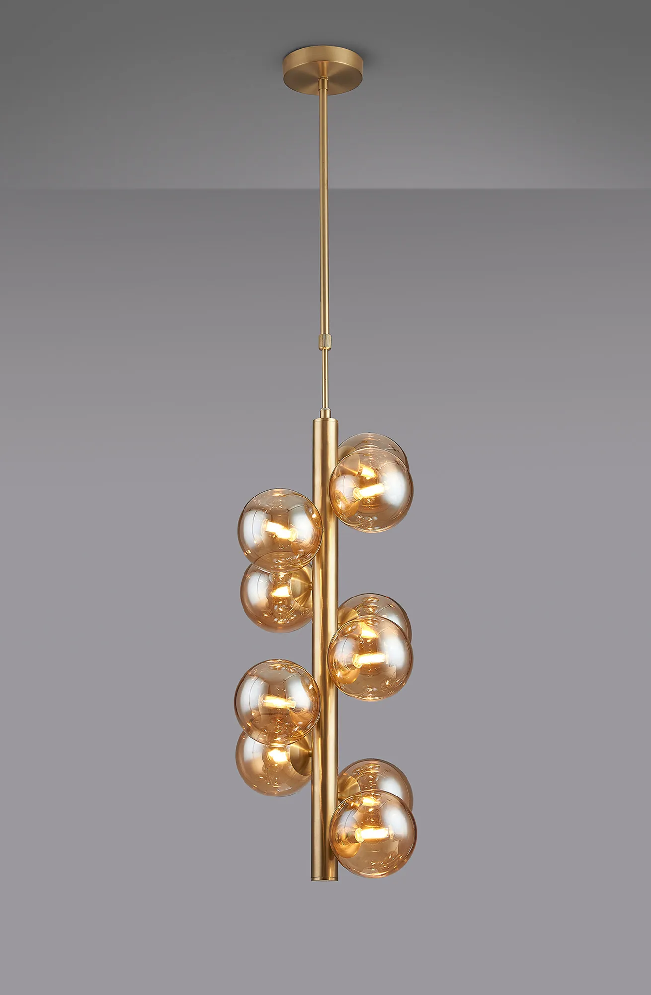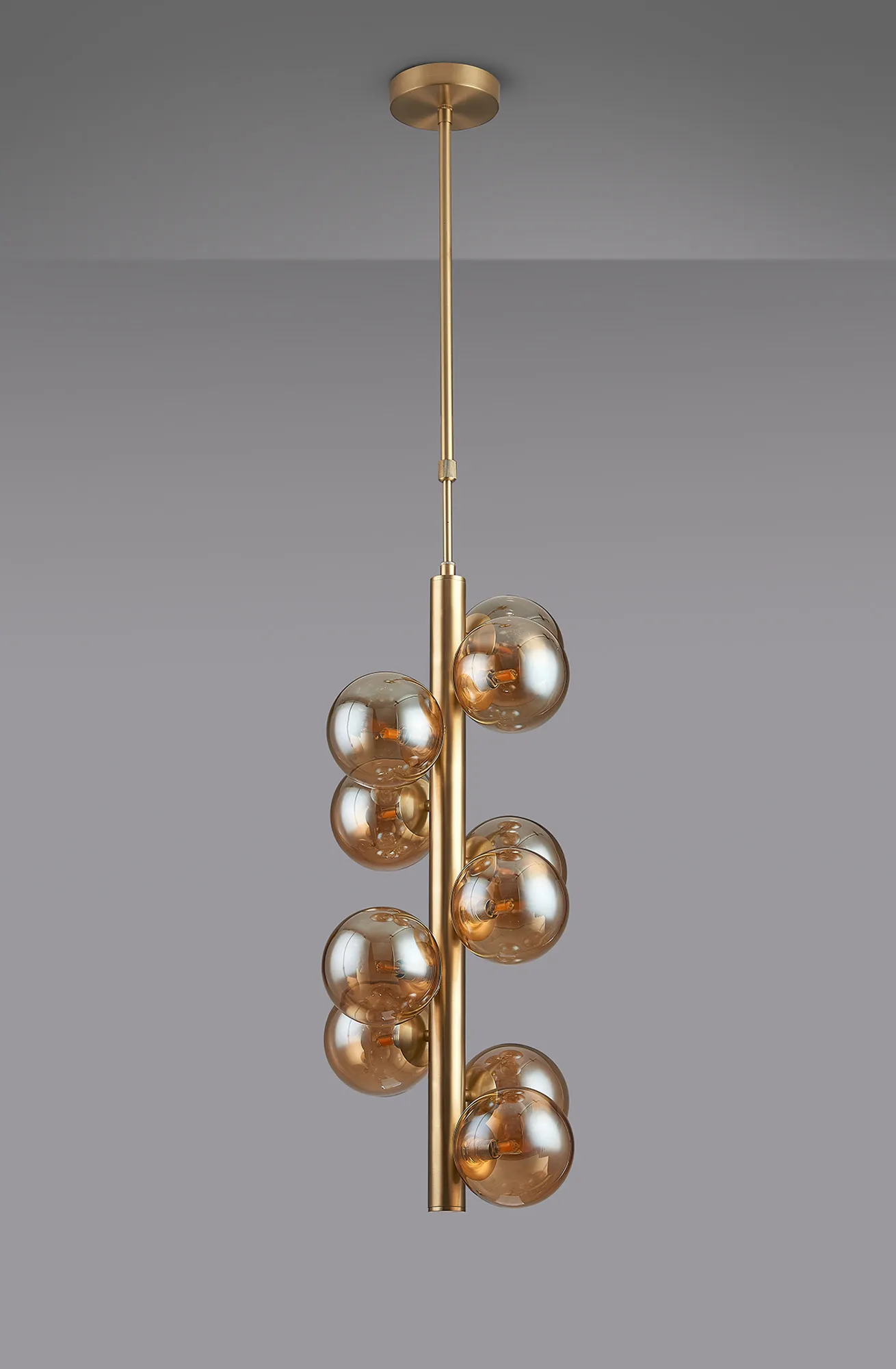 OTHER Lanciano 28cm Vertical Linear Telescopic Pendant, 10 x G9, Satin Gold, Amber Plated 12cm Glass
