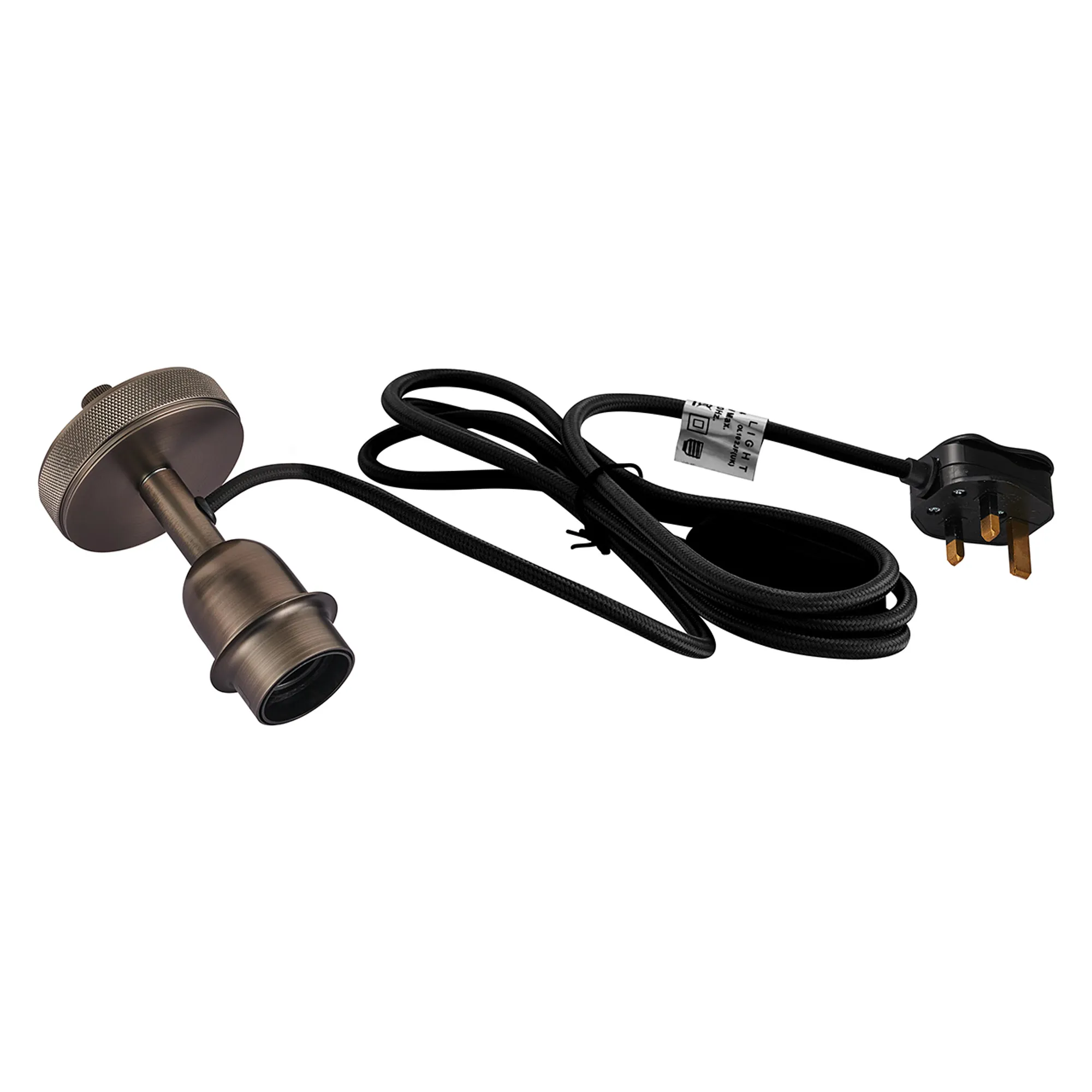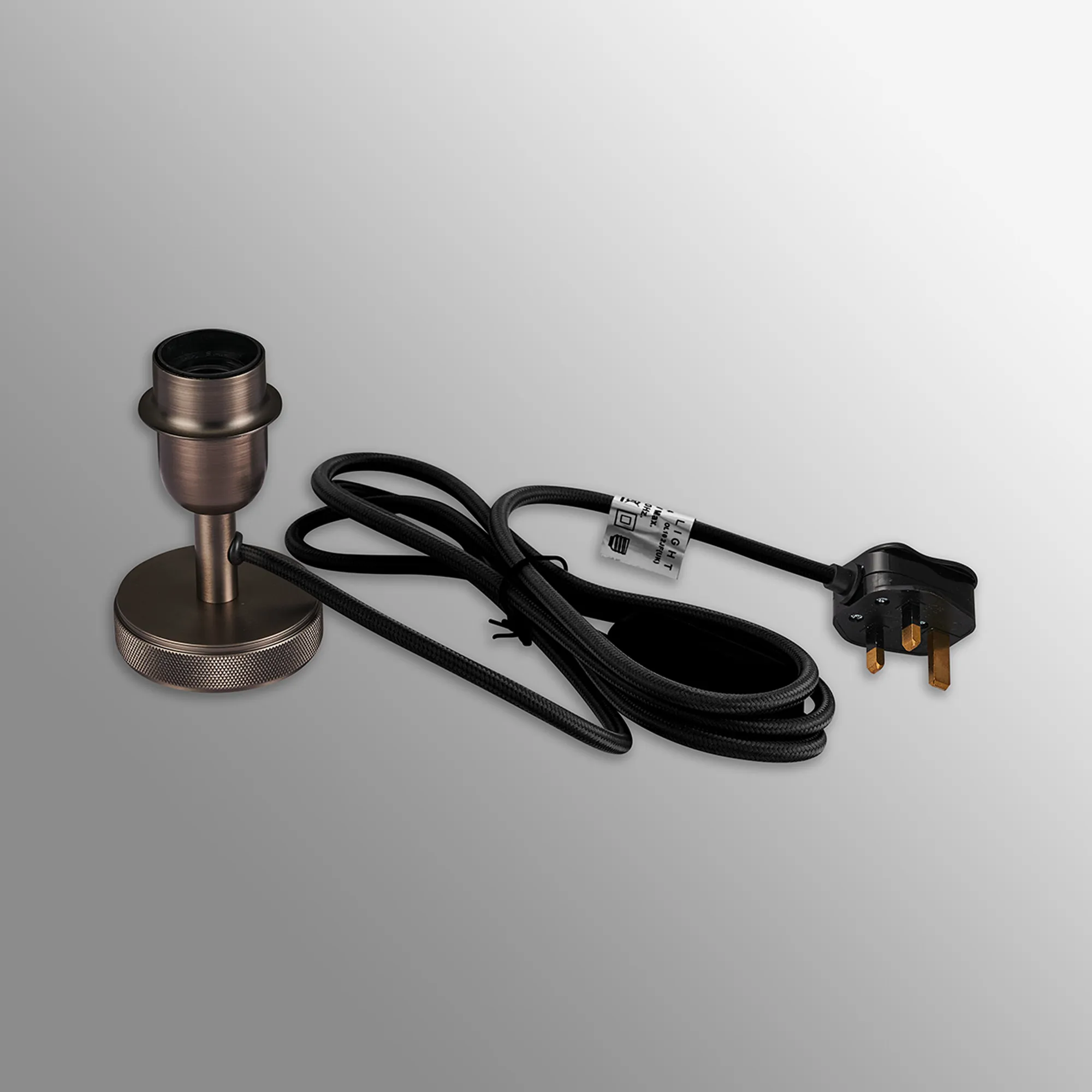Pianiga Deep Flat Base Knurled Table Lamp Without Shade, For Various Glass, 1 Light E27, Antique Brass