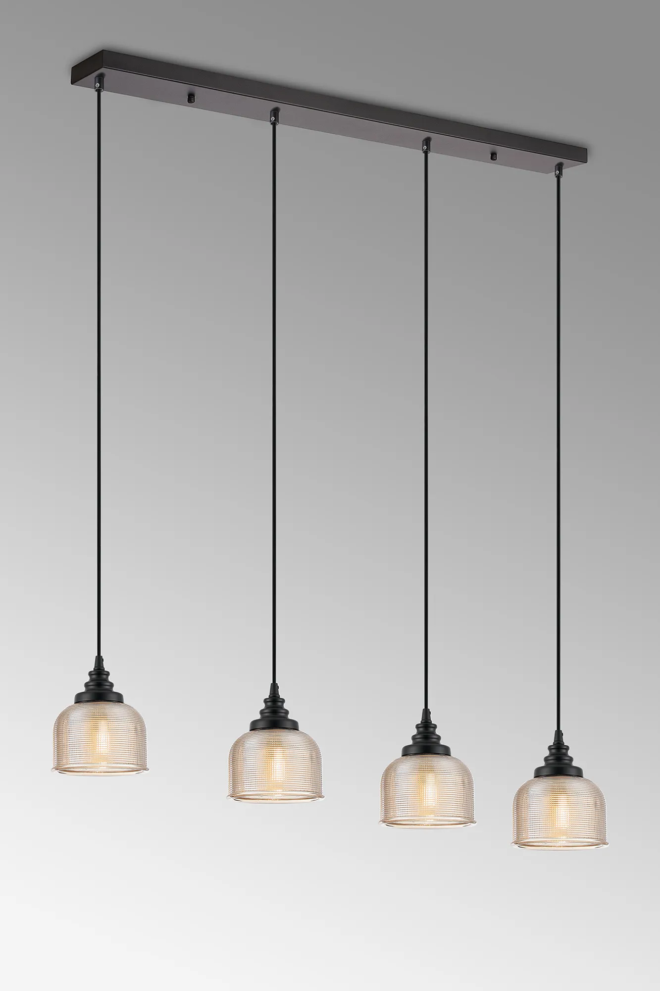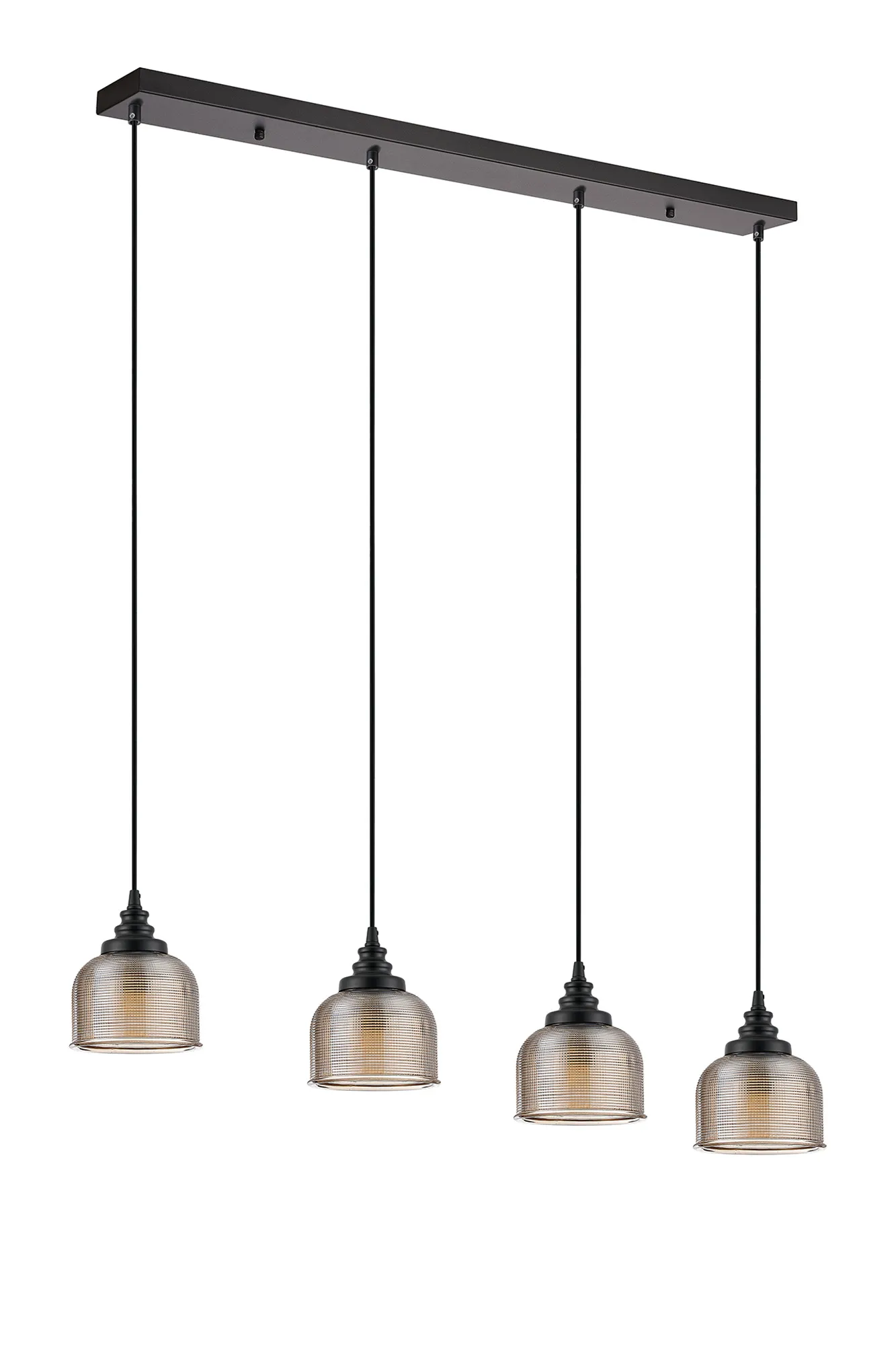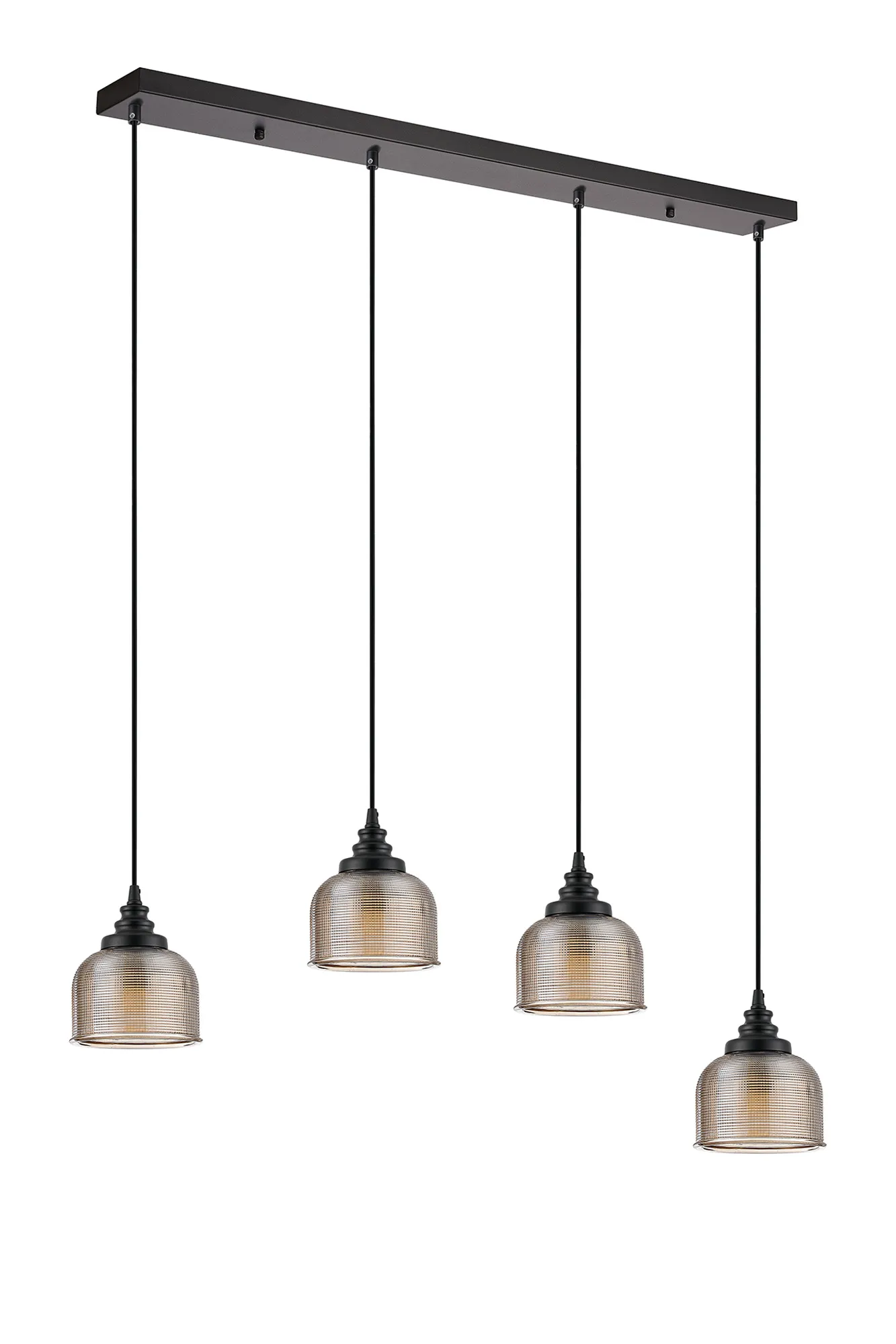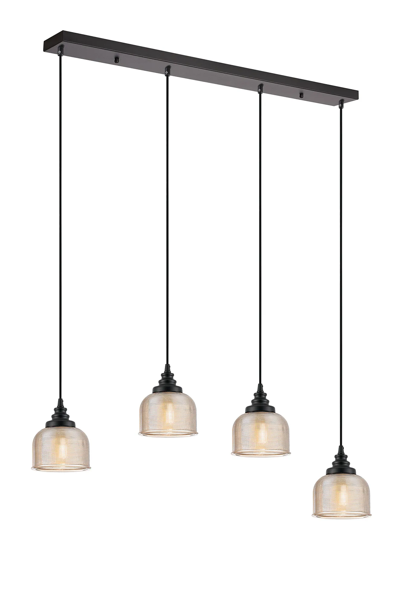 OTHER Landiona 4 Light Linear Pendant, E27, Satin Black/Prismatic Dome Glass, Amber