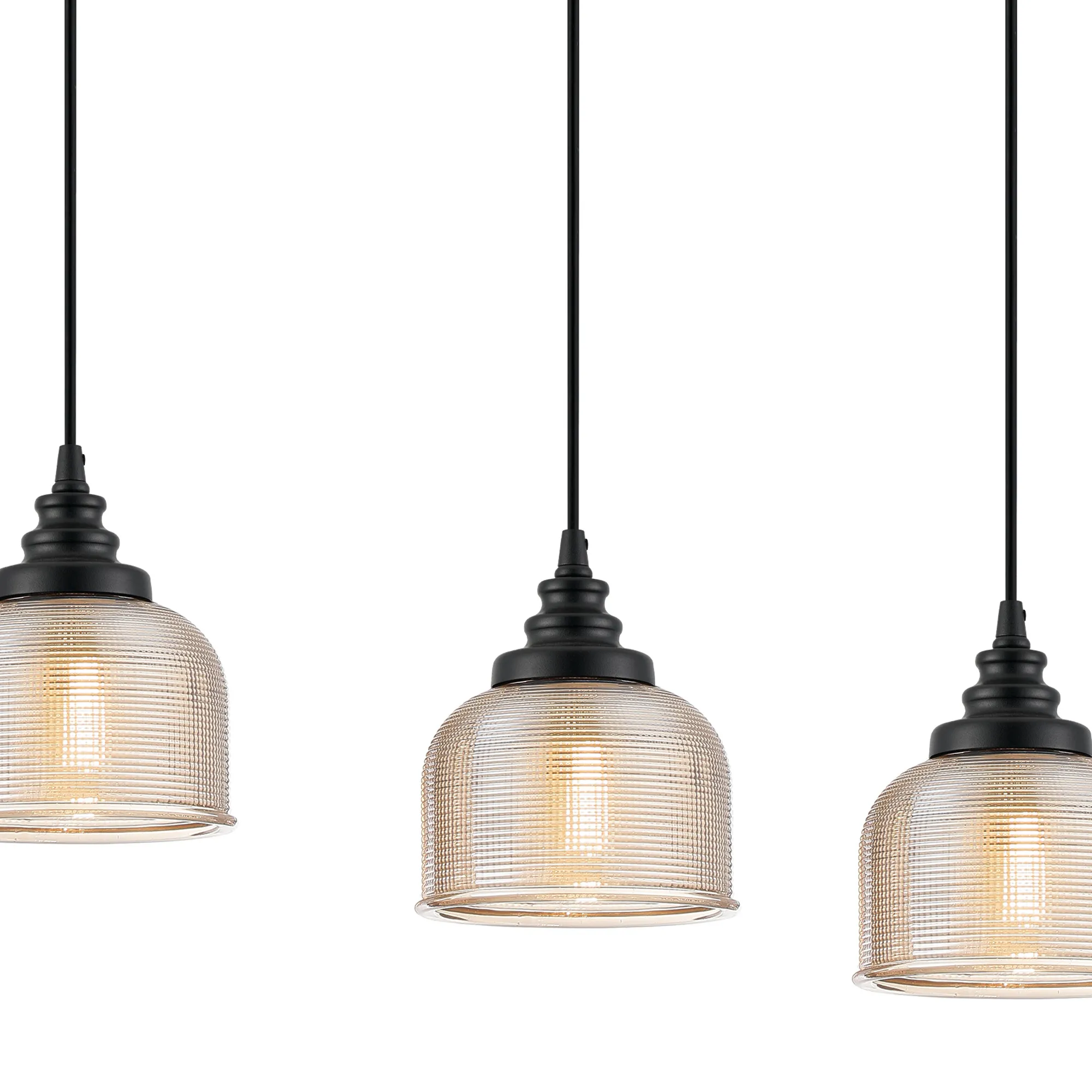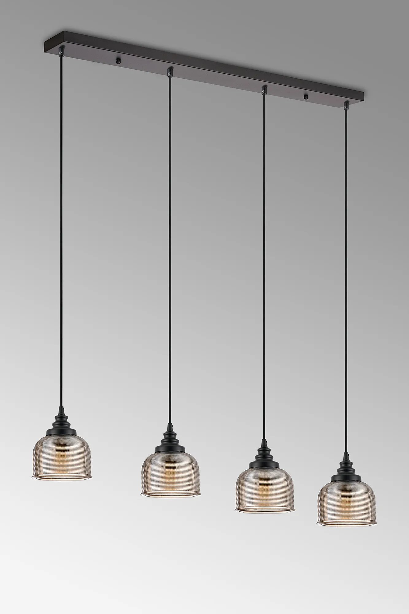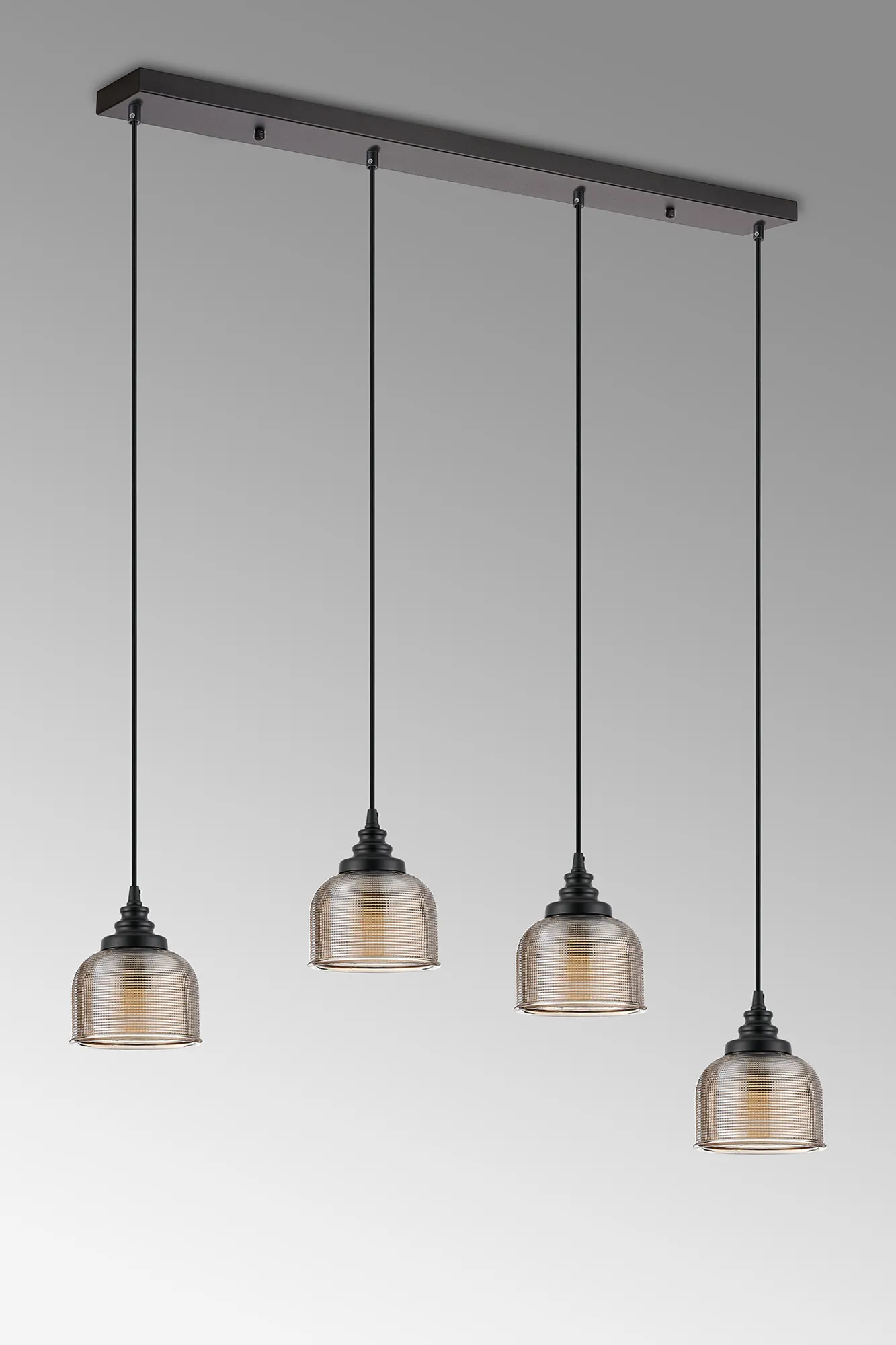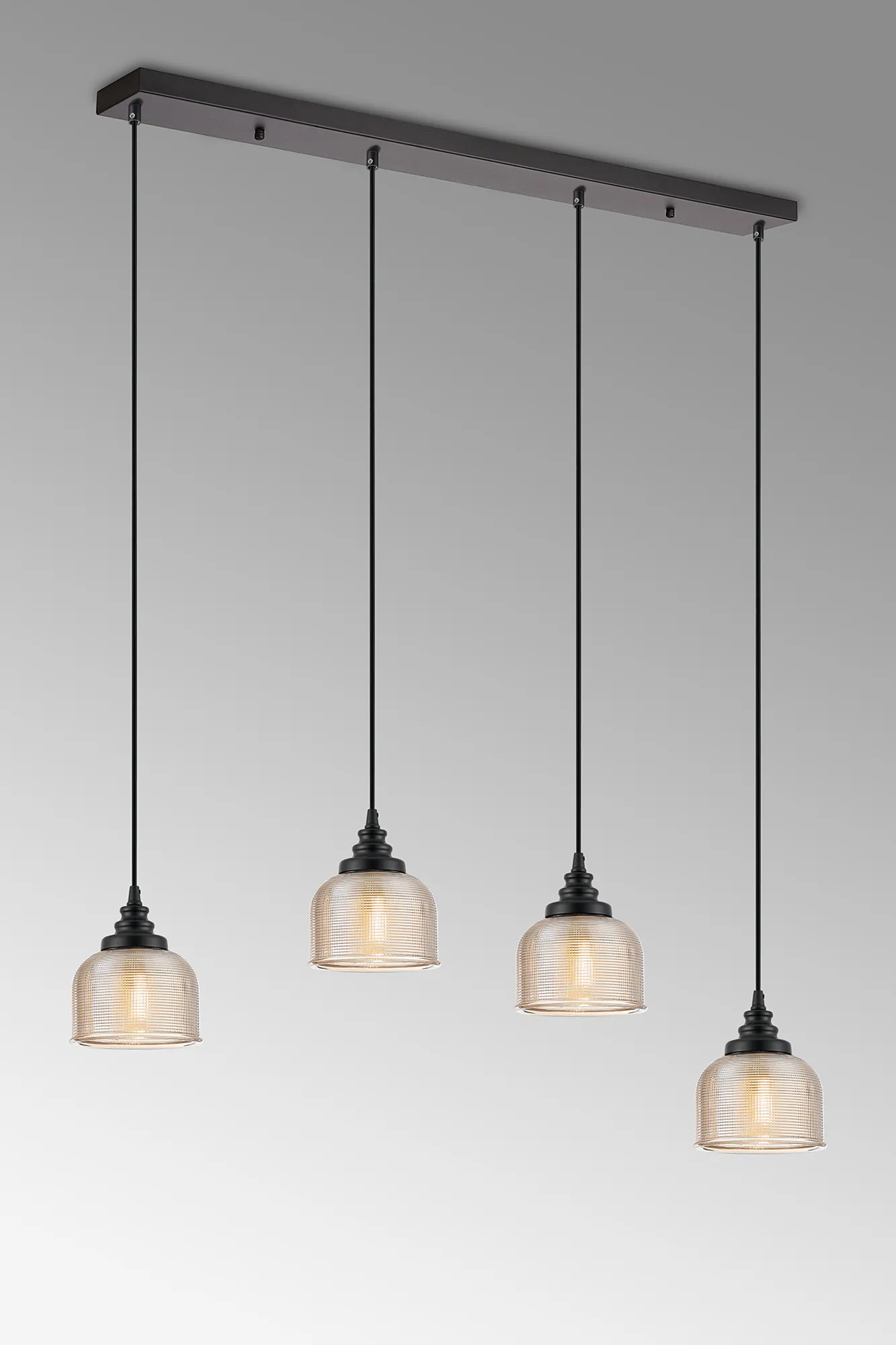OTHER Landiona 4 Light Linear Pendant, E27, Satin Black/Prismatic Dome Glass, Amber
