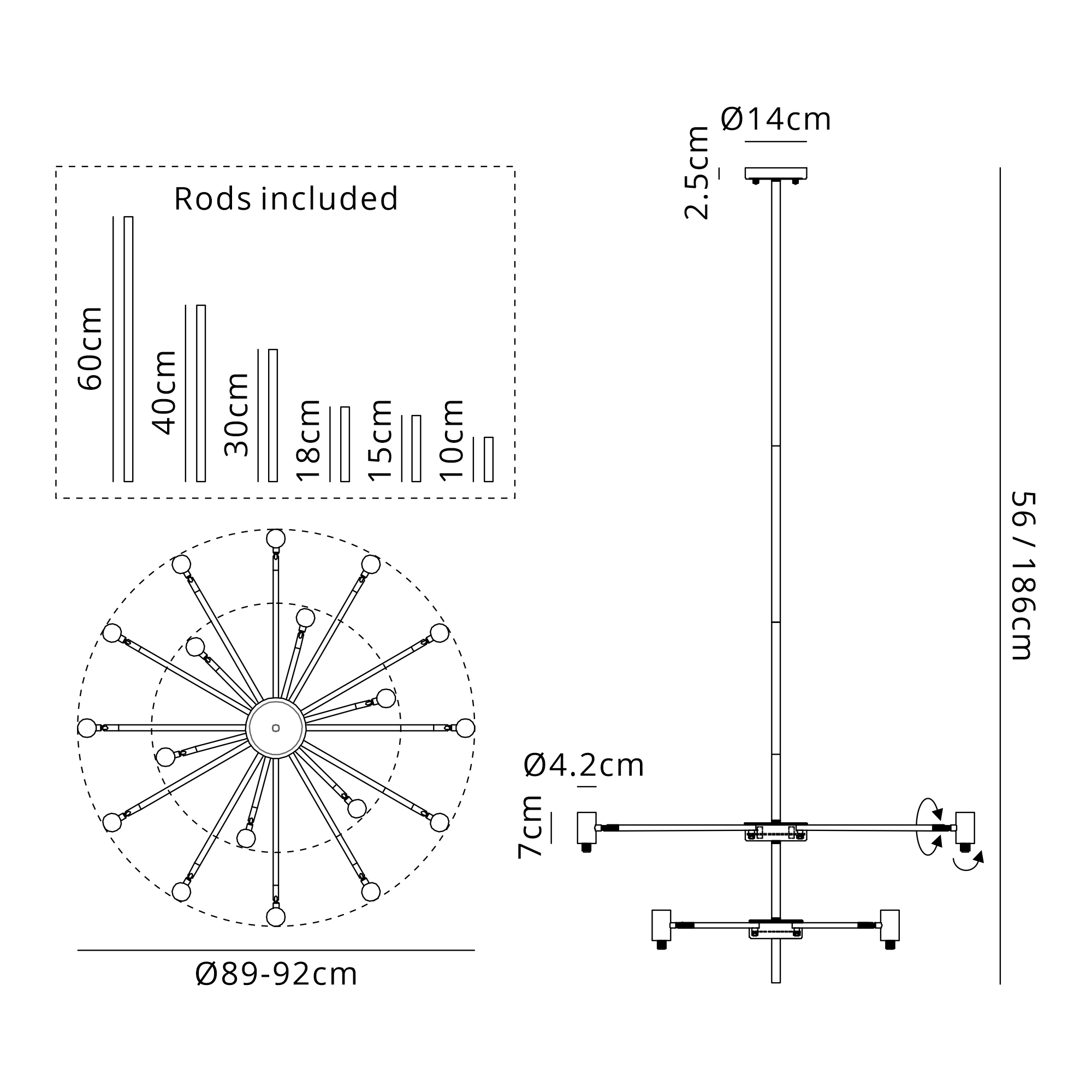 Fonzaso Fixed Pendant/Semi Flush Adjustable Arms (FRAME ONLY), 12 Light G9, Satin Nickel/Black