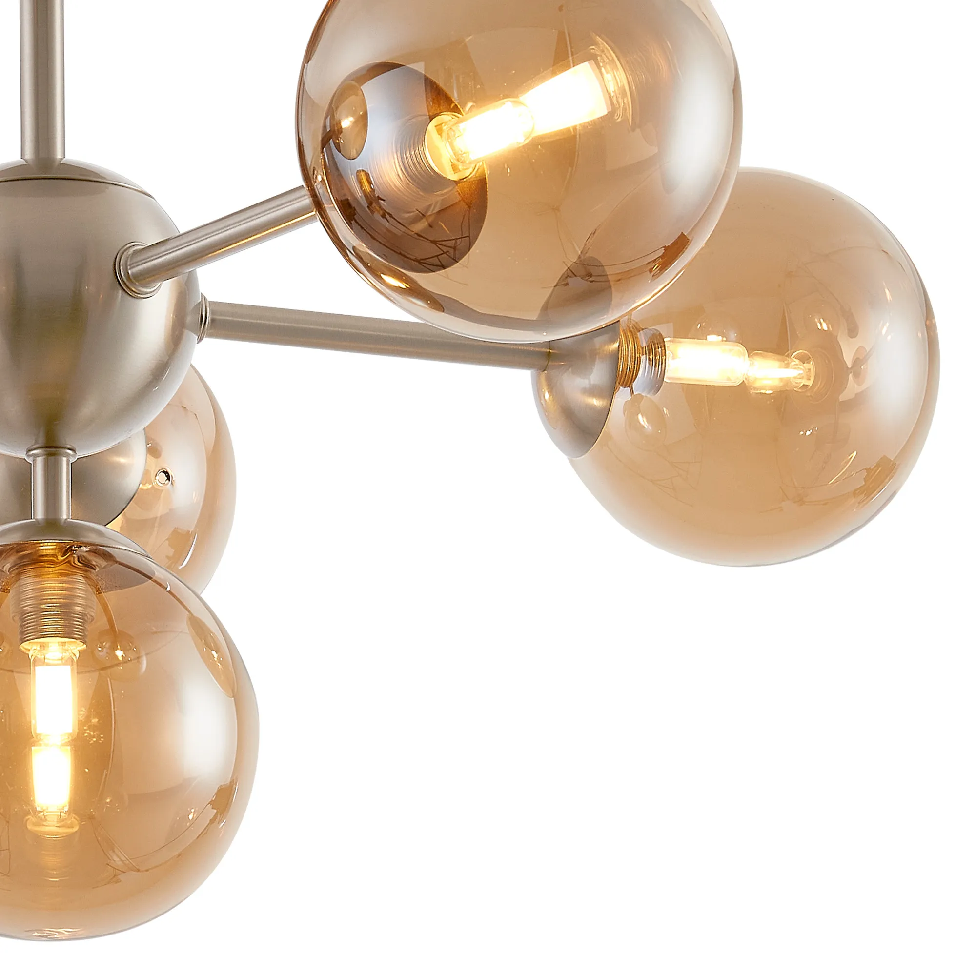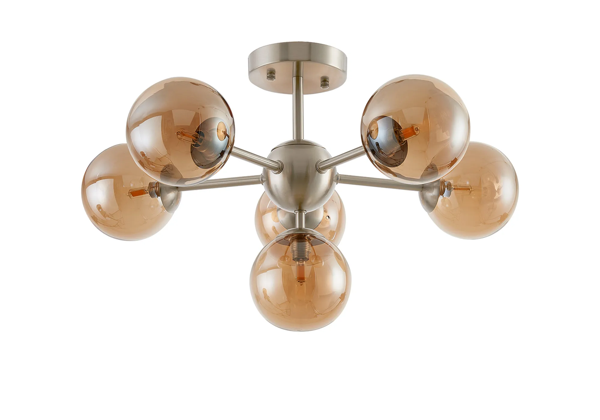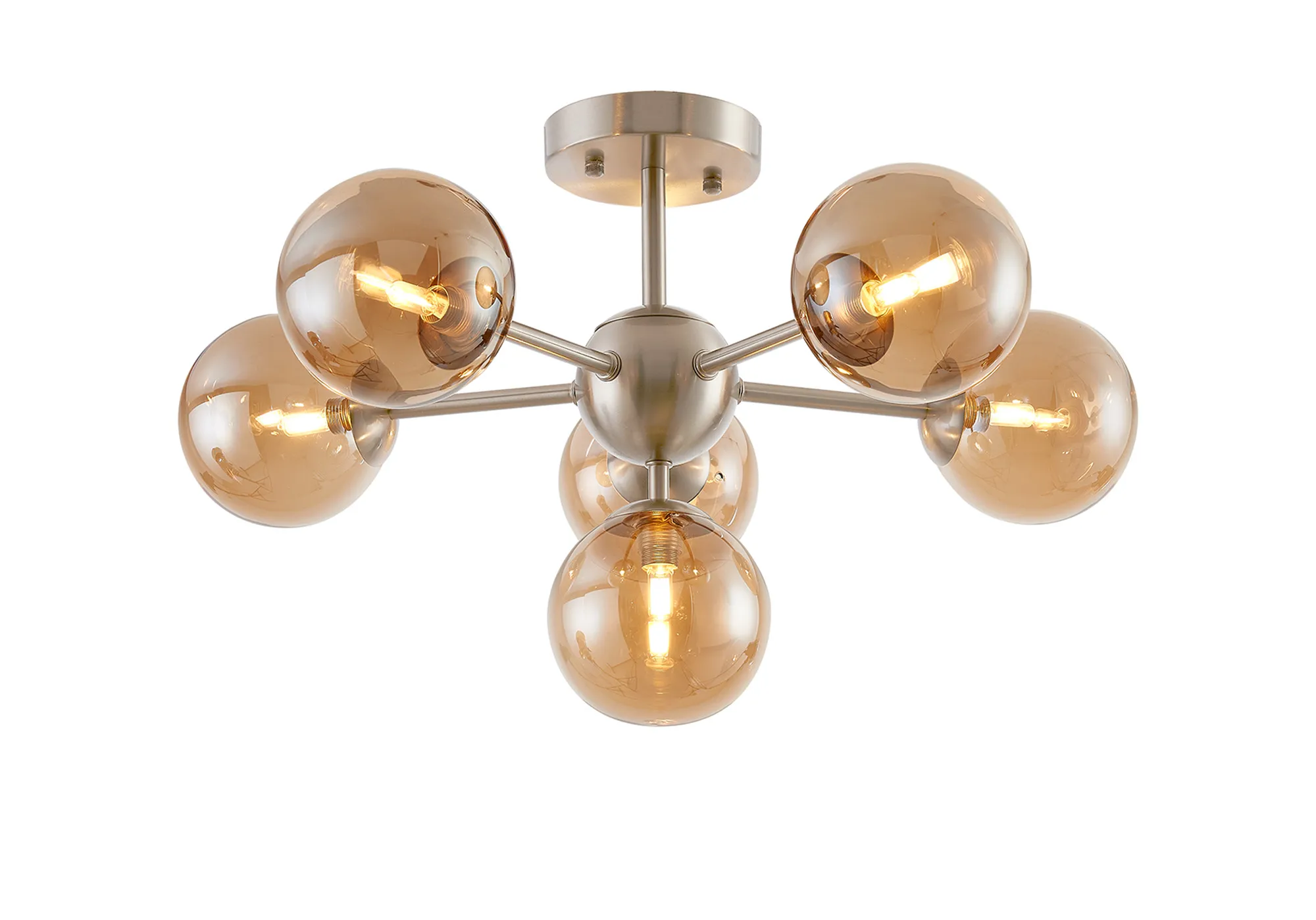 OTHER Lanciano Semi-Flush Multi Arm Ceiling Light, 6 x G9, Satin Nickel, Amber Plated