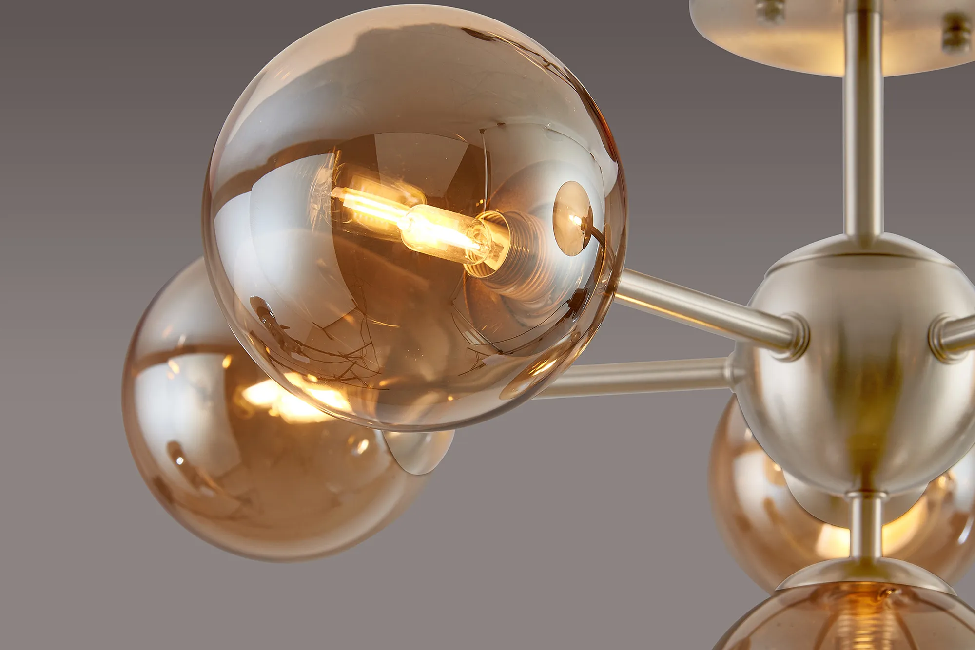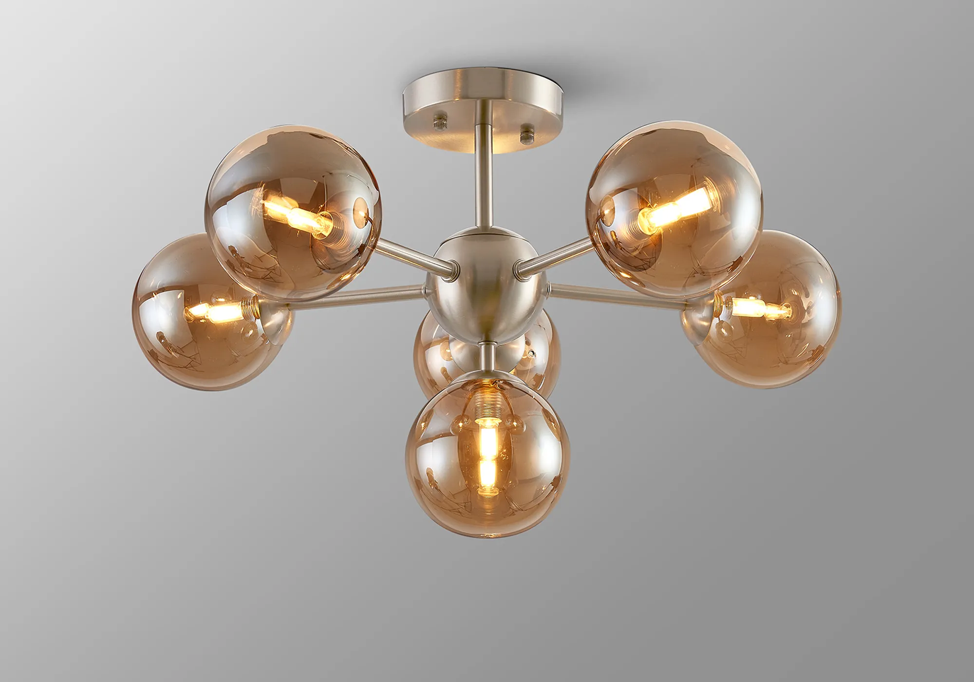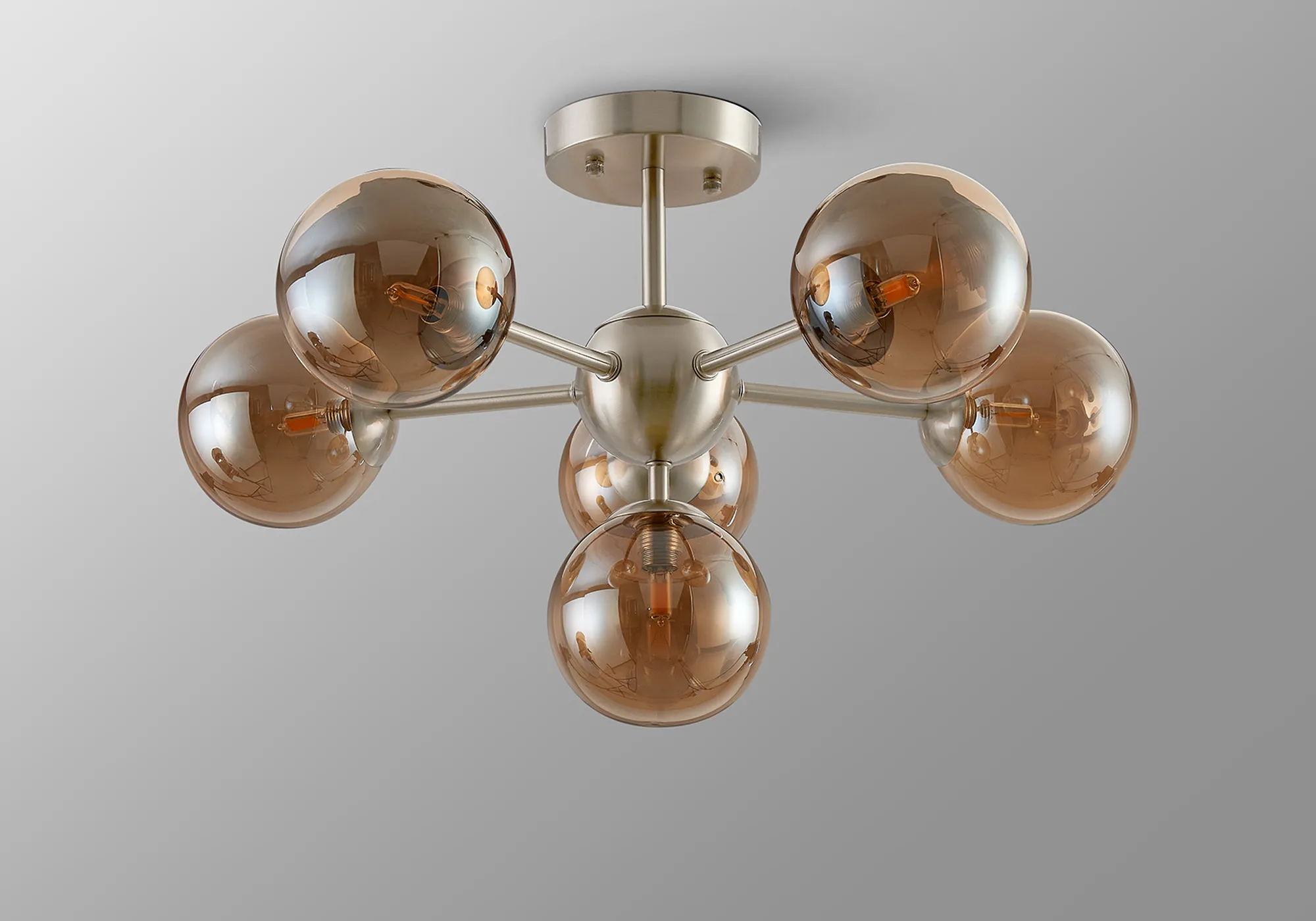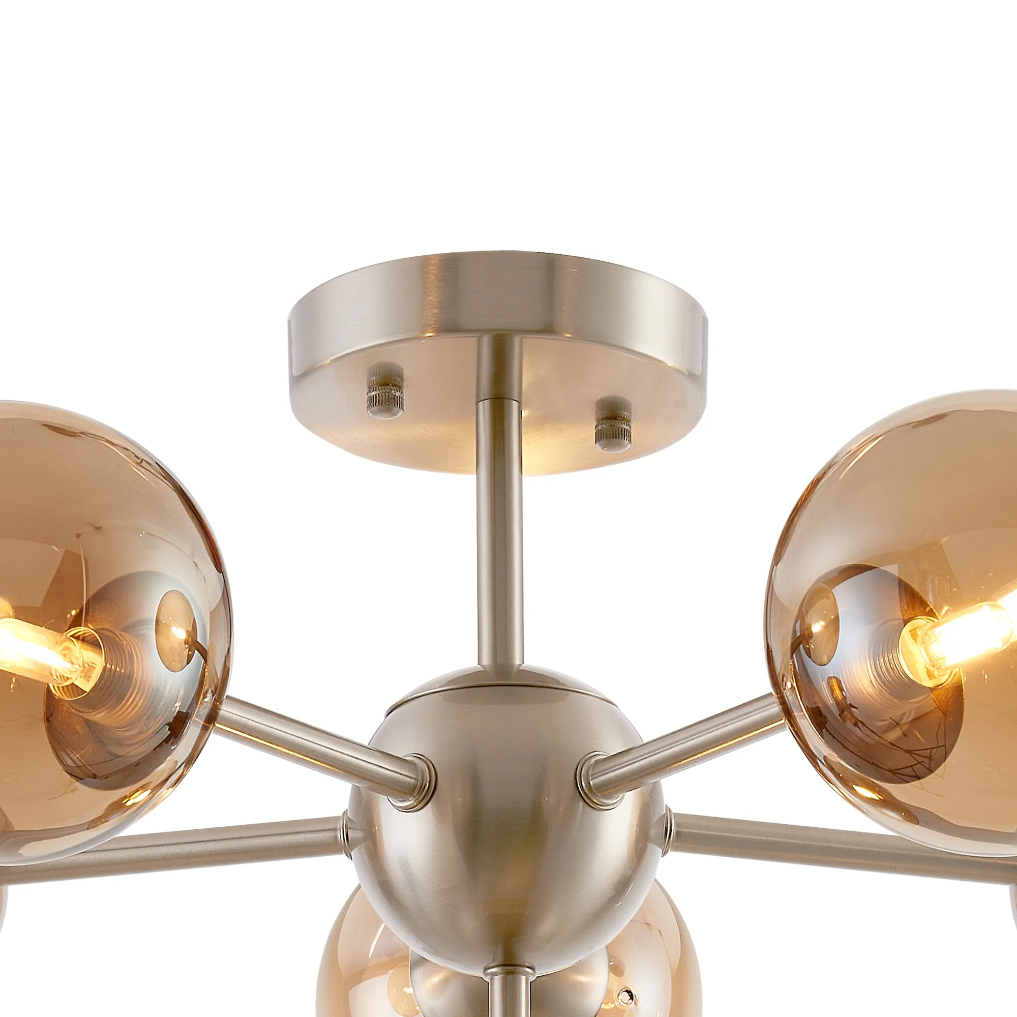 OTHER Lanciano Semi-Flush Multi Arm Ceiling Light, 6 x G9, Satin Nickel, Amber Plated