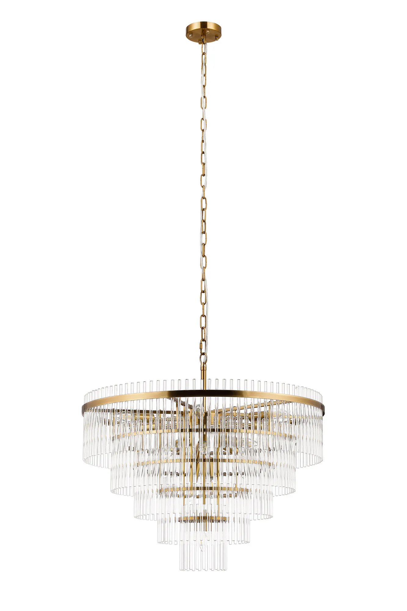 Valstagna 60cm Pendant/Semi Ceiling 10 Light E14, Brass/Clear Glass Rods