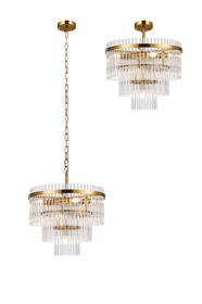 Valstagna 77cm Pendant/Semi Ceiling 15 Light E14, Brass/Clear Glass Rods