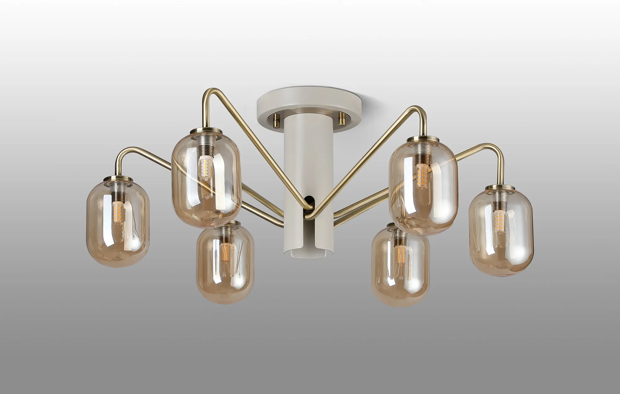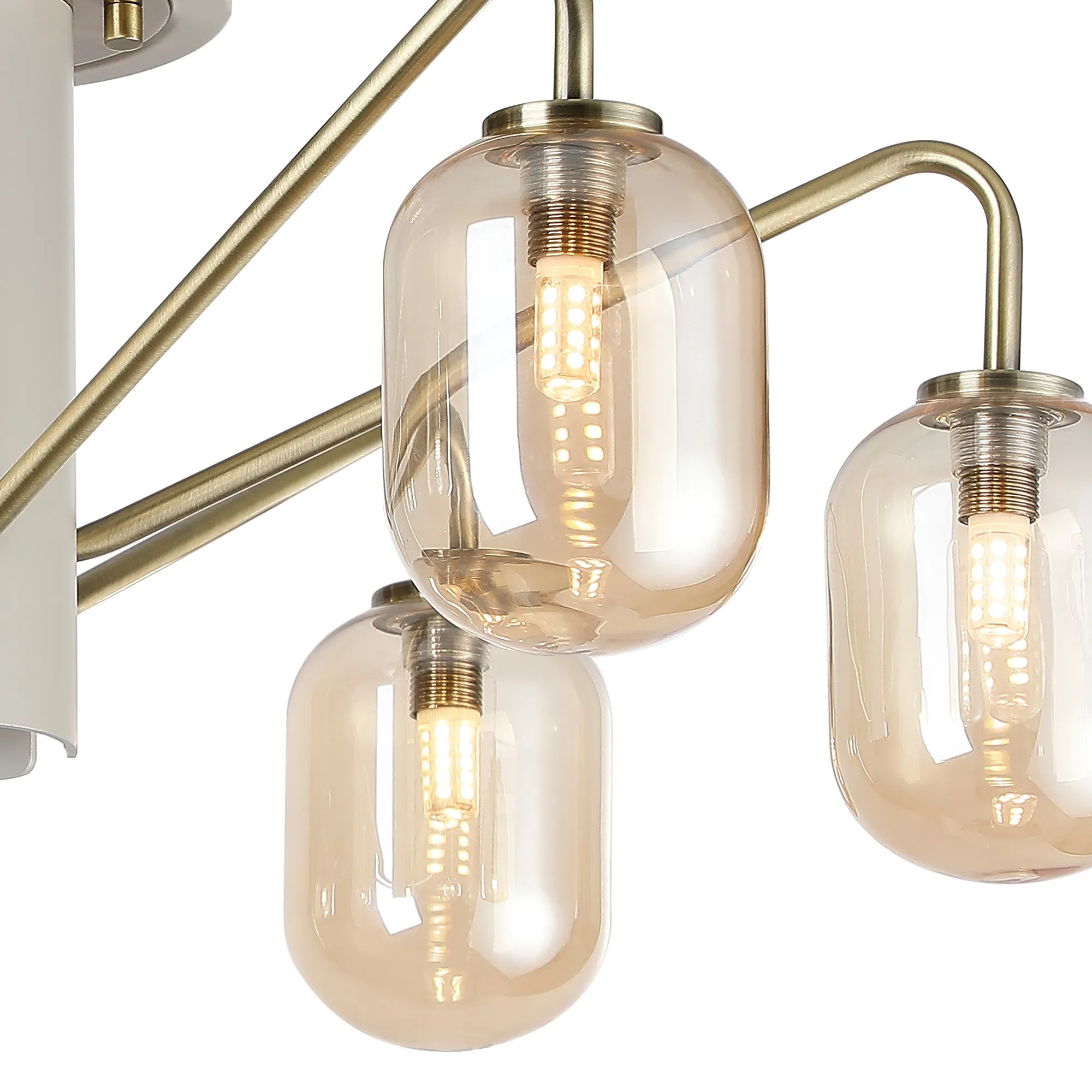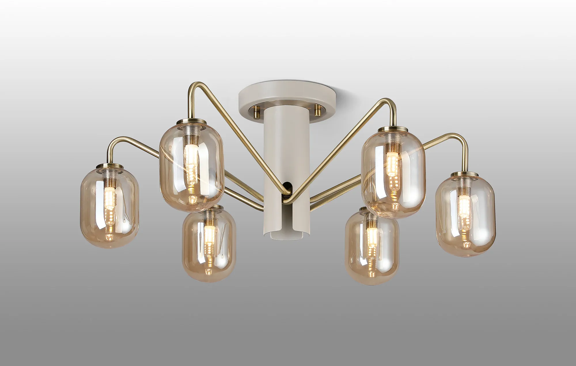 OTHER Vas 57cm Semi-Flush Ceiling Light, 6 x G9, Painted Beige/Antique Brass/Amber Smooth Tubular Glass