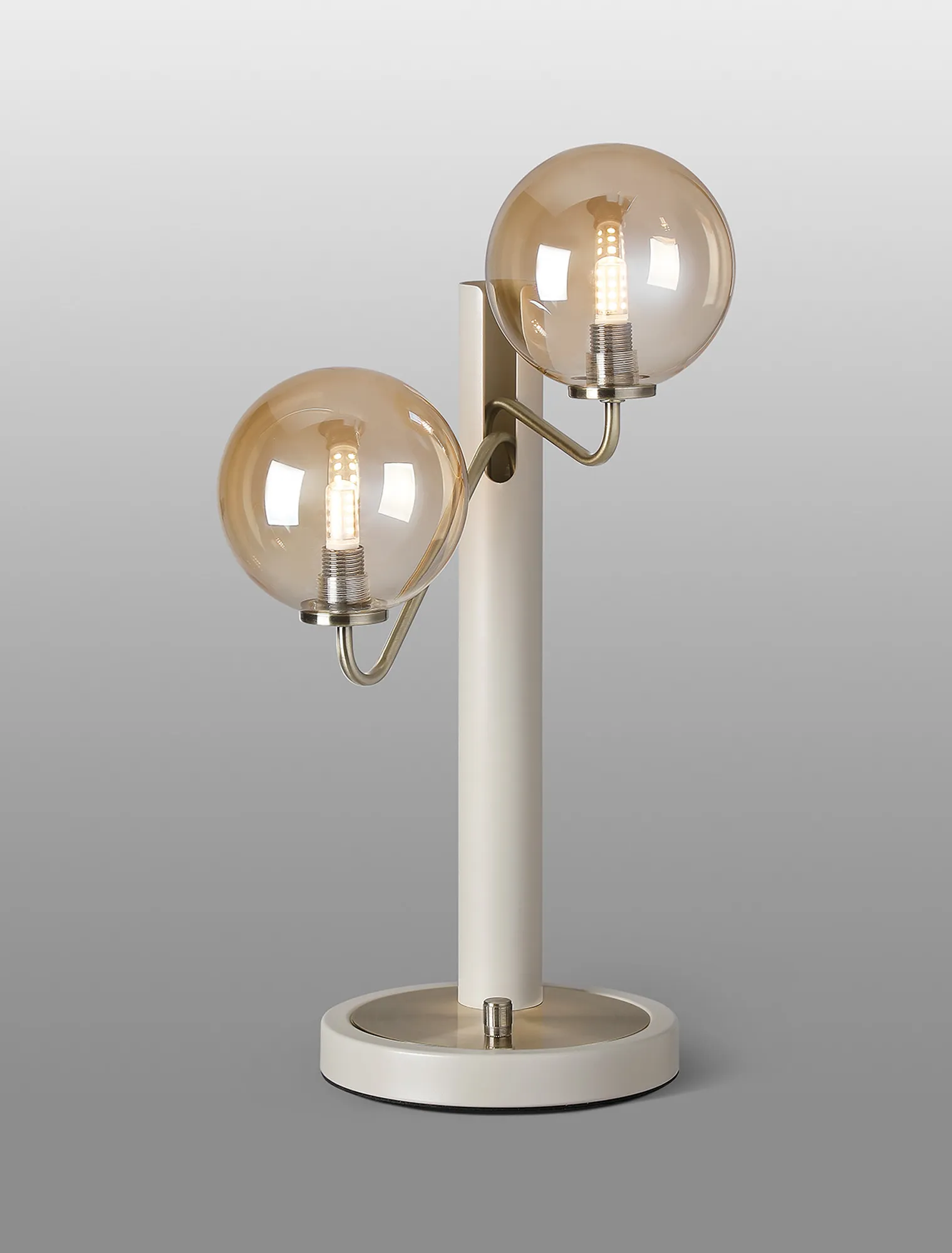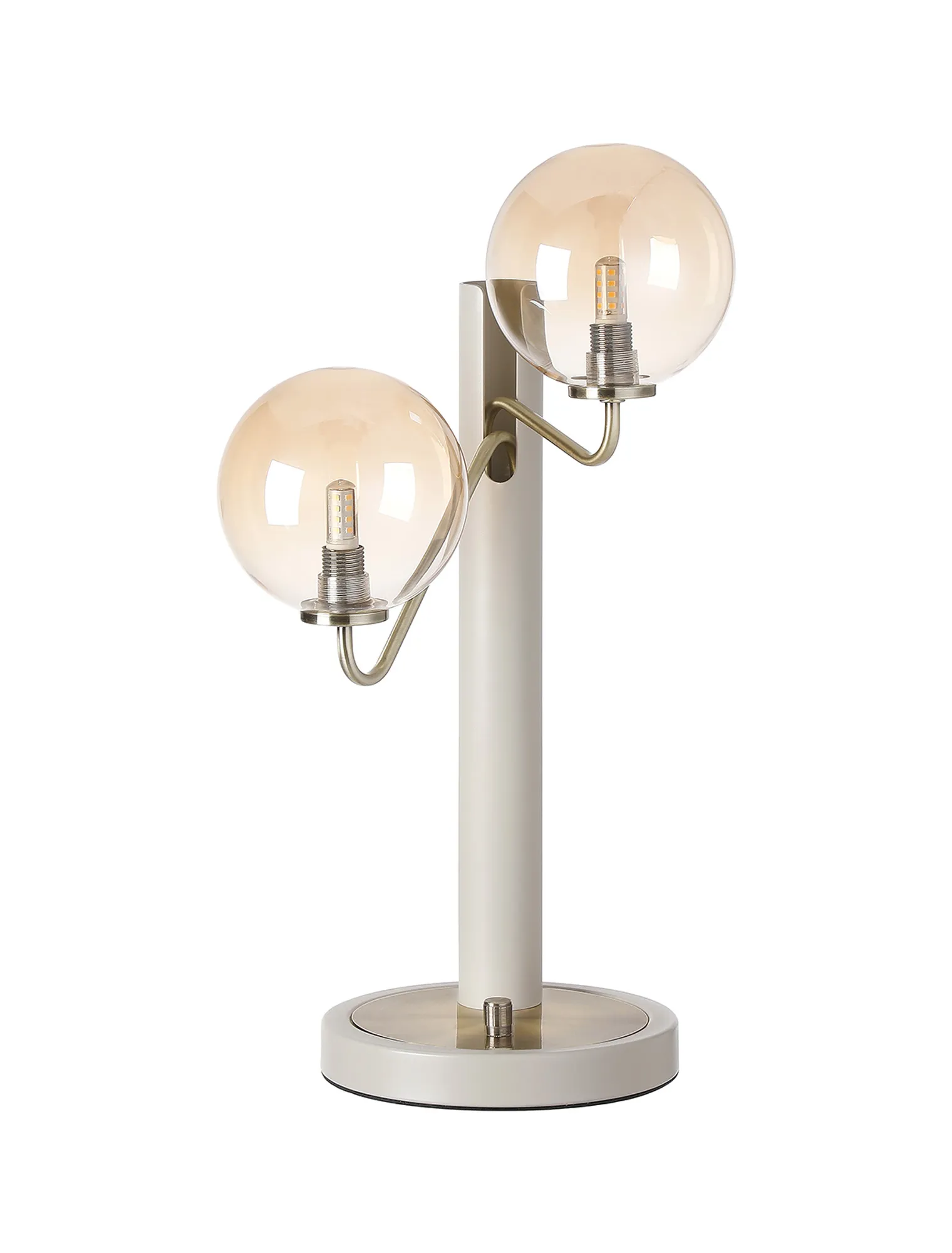 OTHER Vas Table Lamp Switched, 2 x G9, Painted Beige/Antique Brass/Amber Smooth Round Glass