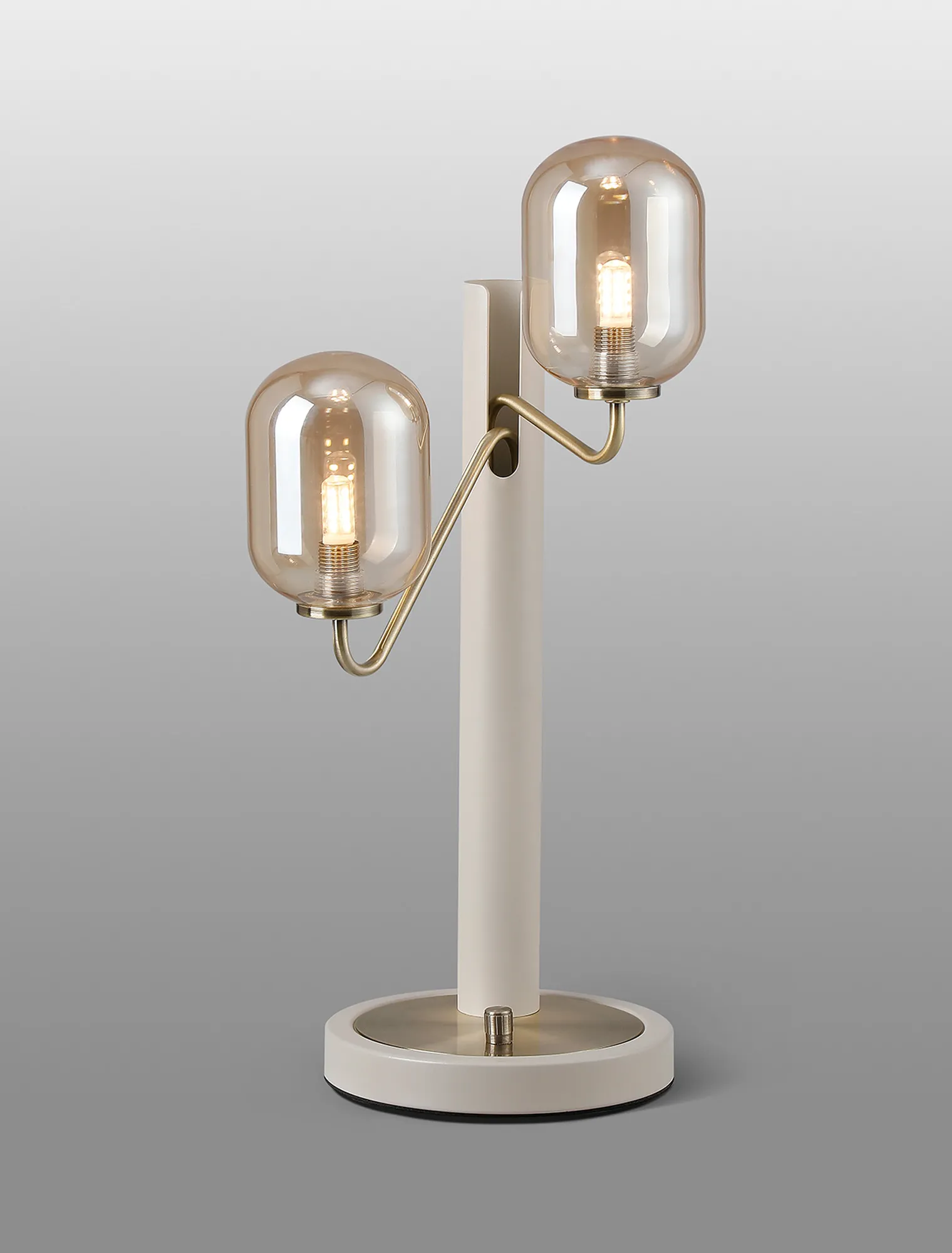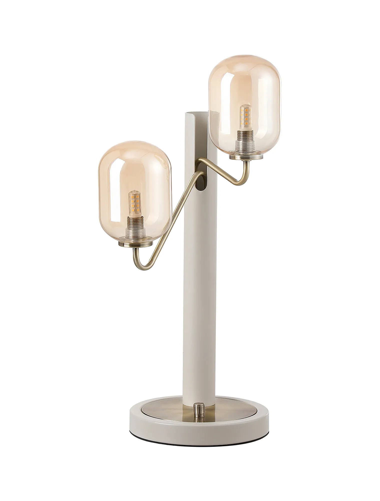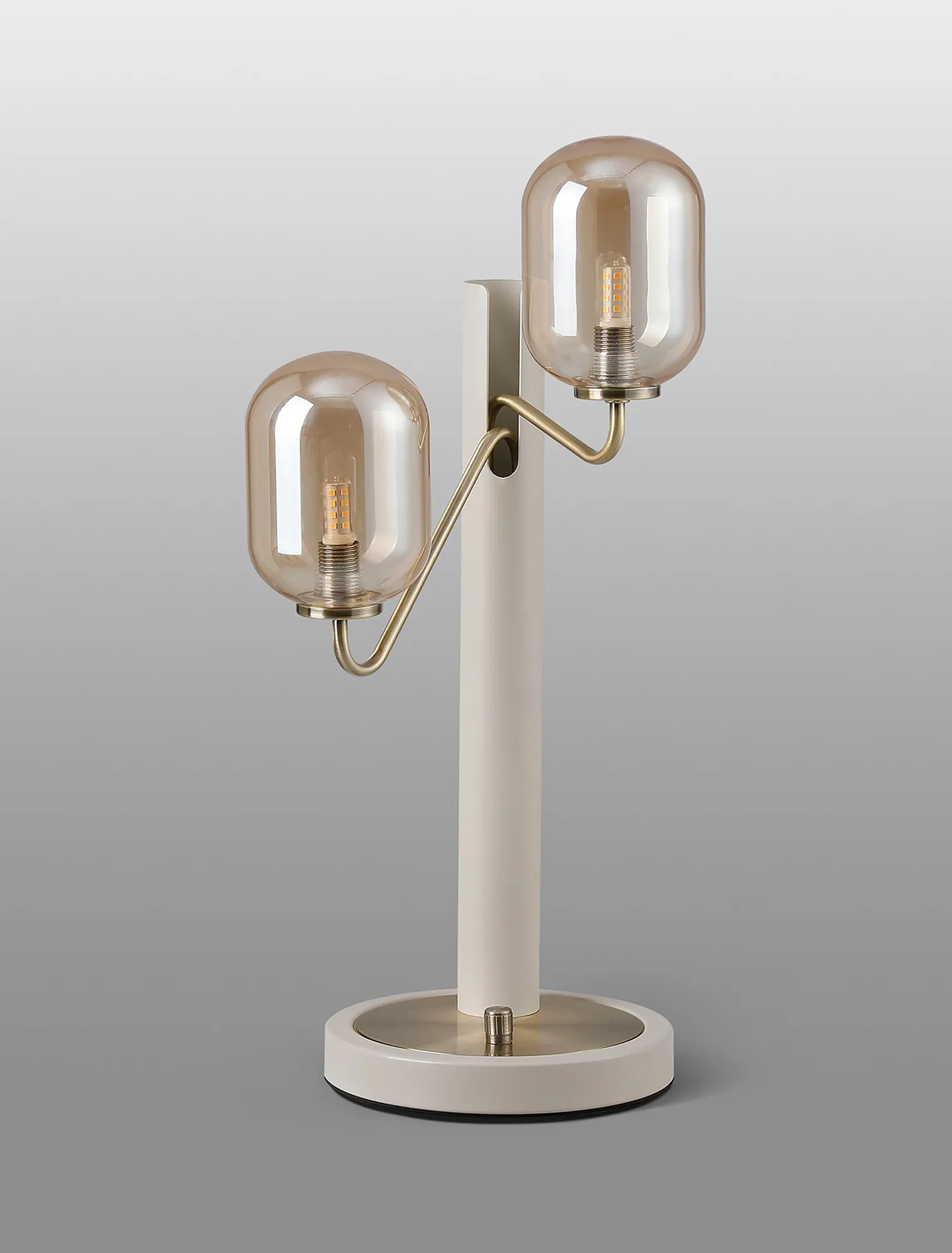 OTHER Vas Table Lamp Switched, 2 x G9, Painted Beige/Antique Brass/Amber Smooth Tubular Glass