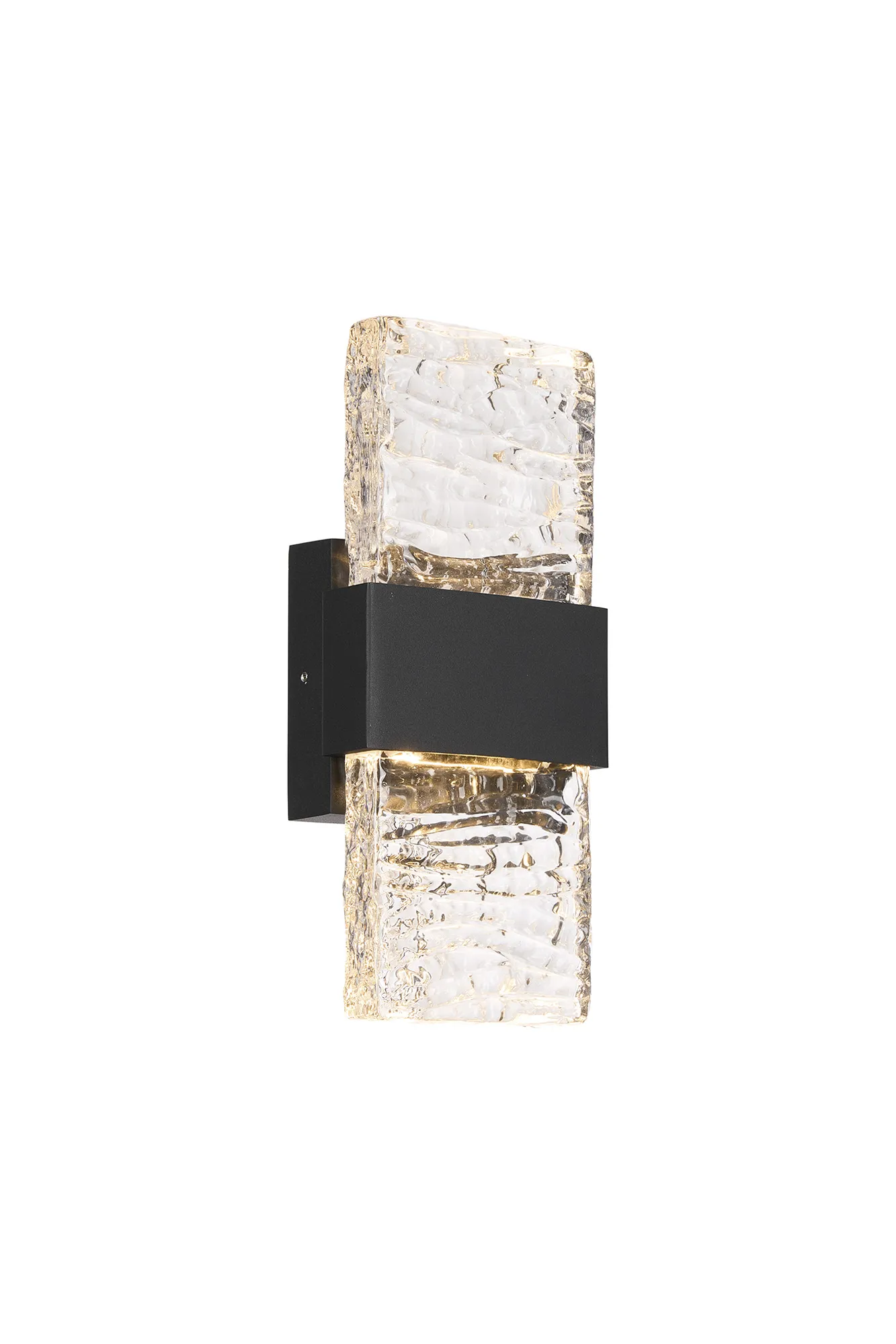 Chiarano Up/Down Wall Lamp, 2 x 5W LED, 3000K, 750lm, IP65, Black/Clear Seiche Waves Glass (A), 3yrs Warranty