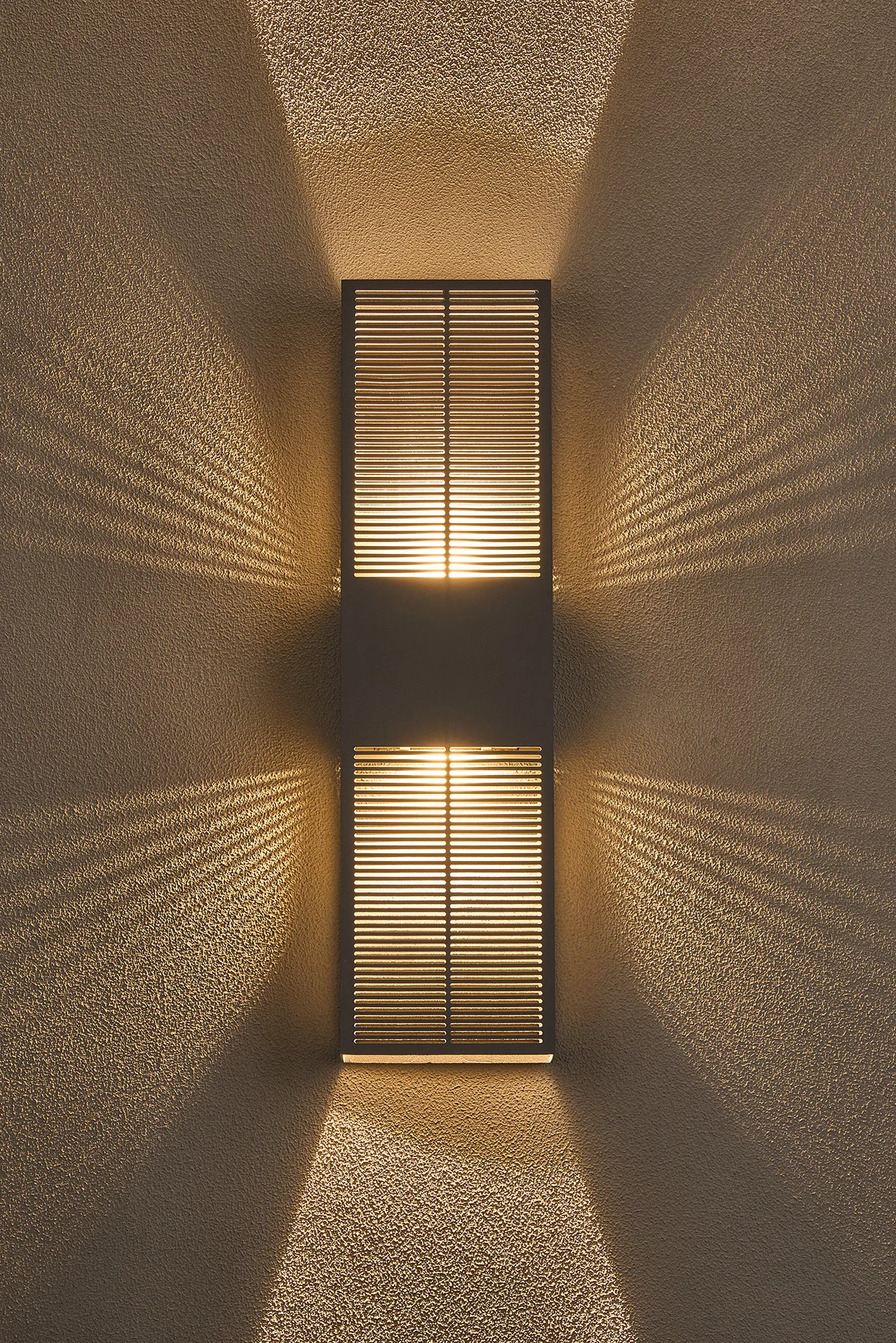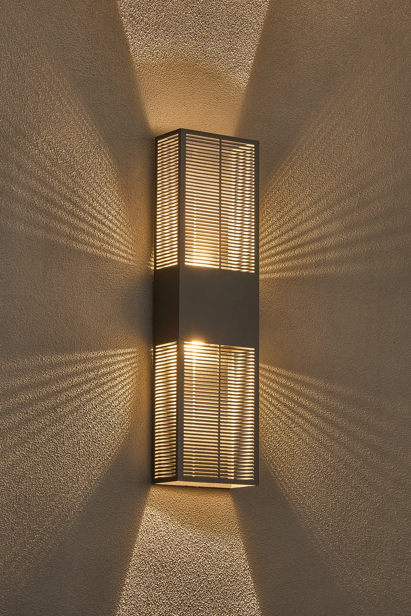 Lusia Up/Down Wall Lamp, 2 x 10W LED, 3000K, 1500lm, IP54, Anthracite With 900mm Lined Grate Pattern Shade (A), 3yrs Warranty