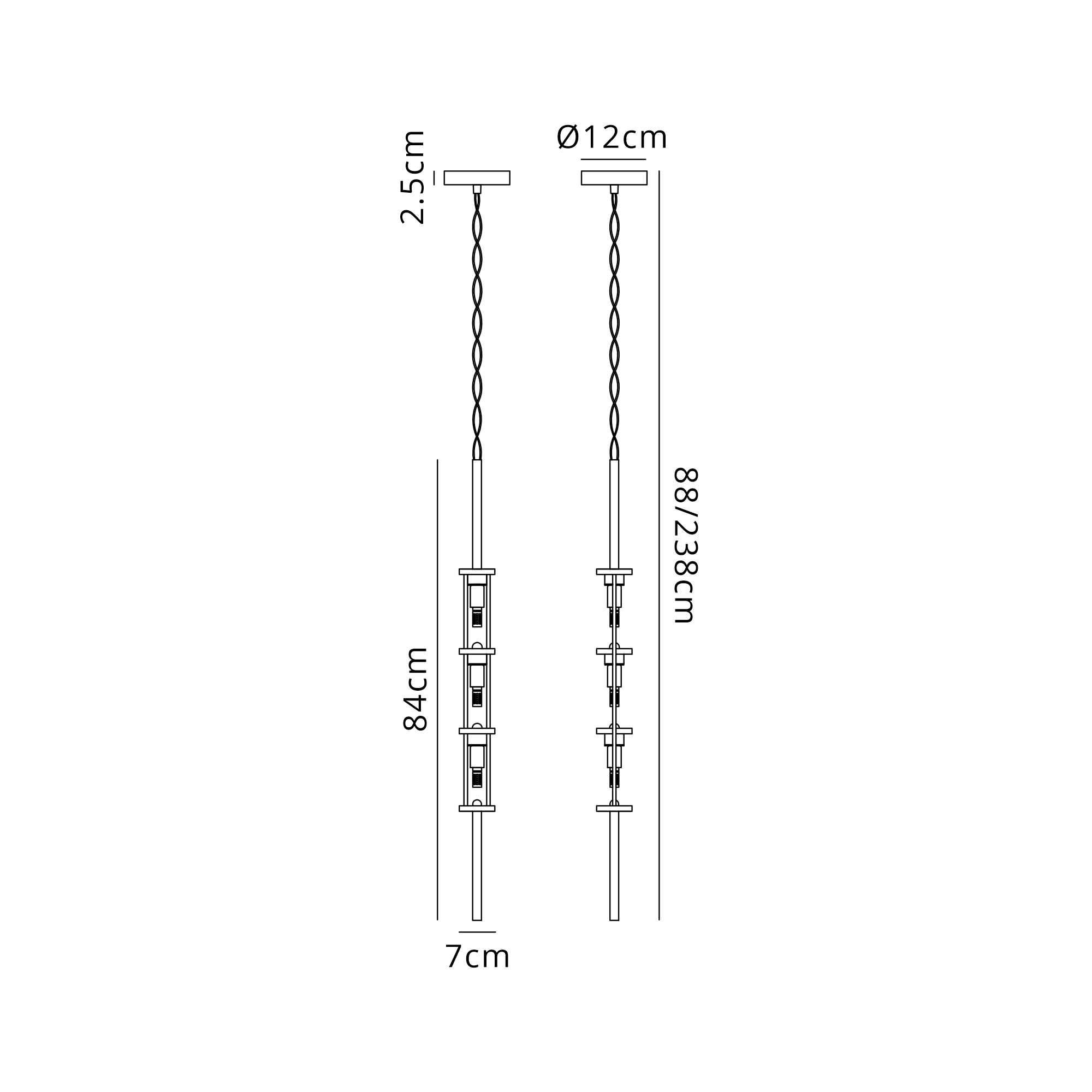 Fauglia Multi Height Pendant (FRAME ONLY), 3 x G9, Antique Brass