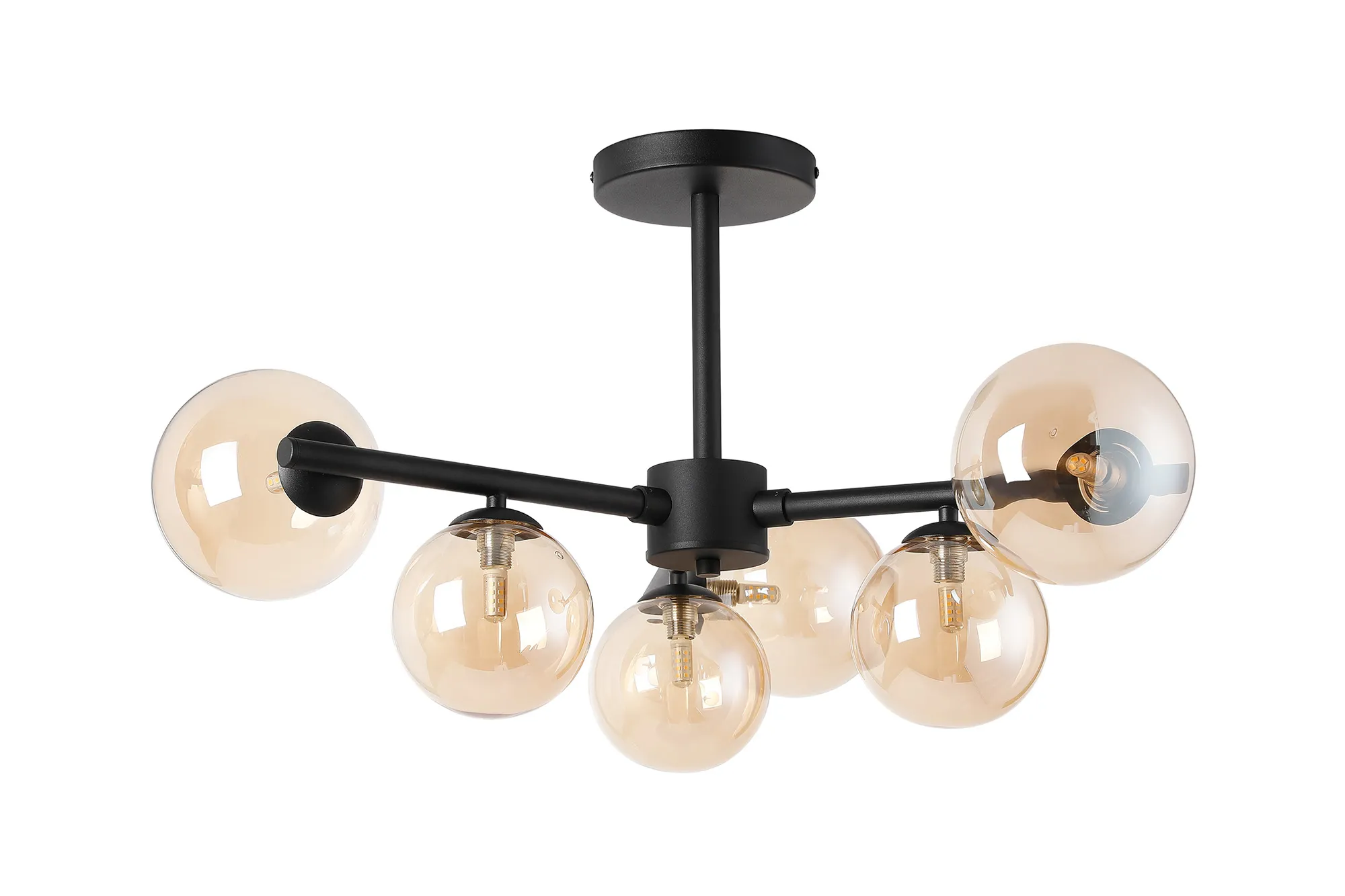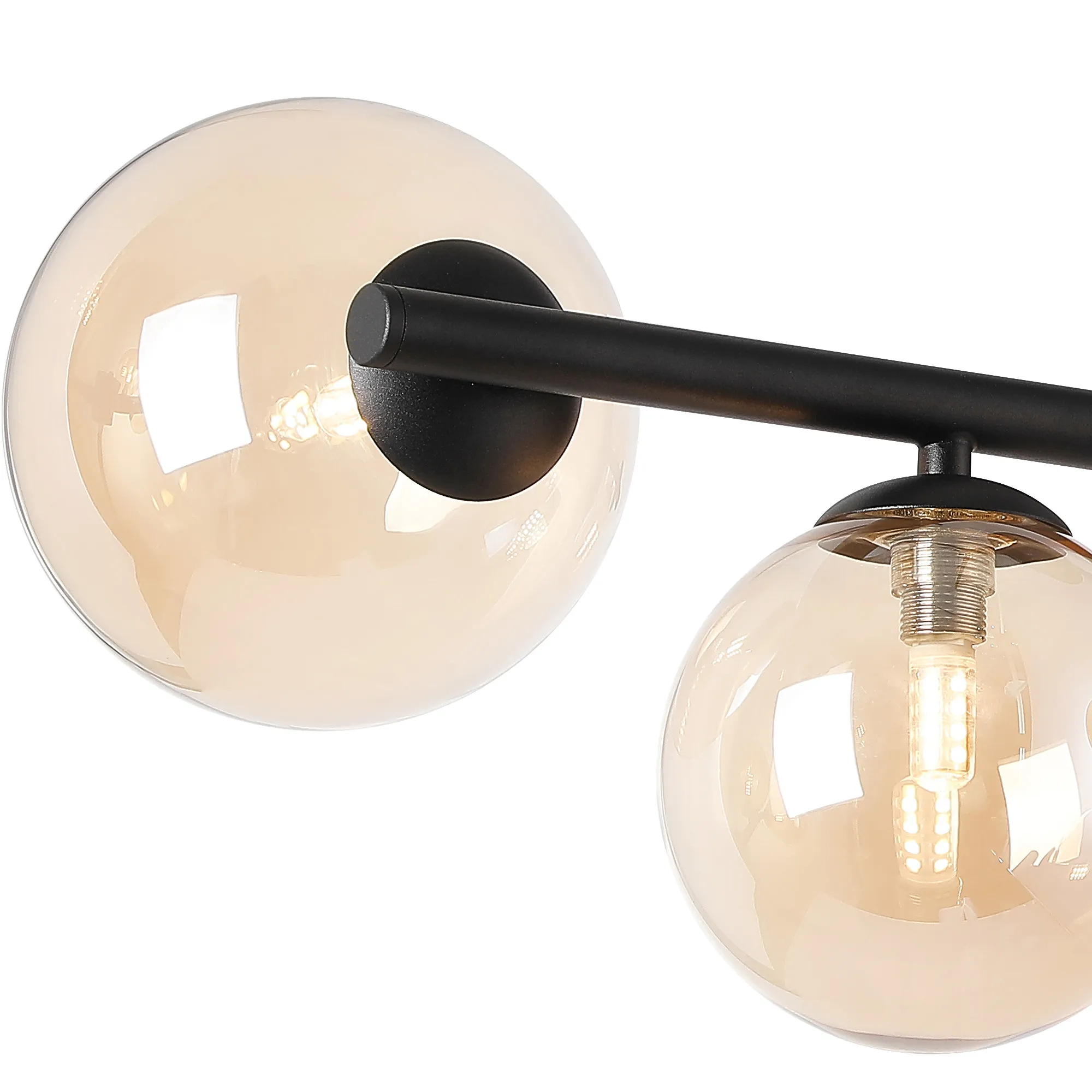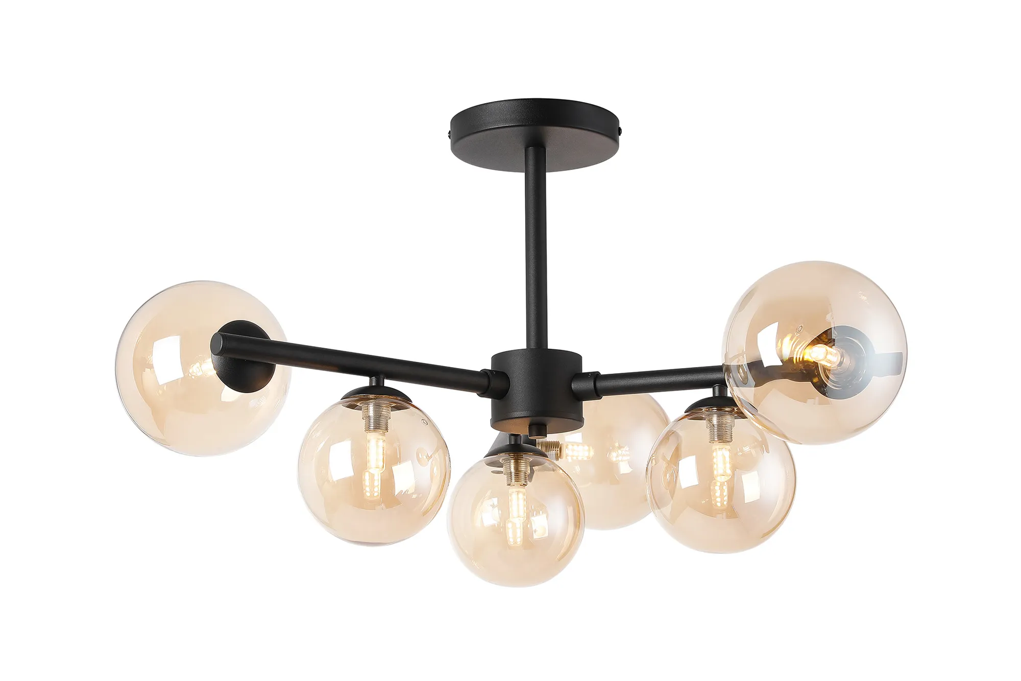 OTHER Lanciano 71.5cm Semi-Flush 3 Arm Ceiling Light, 6 x G9, Satin Black, Amber Plated Glass