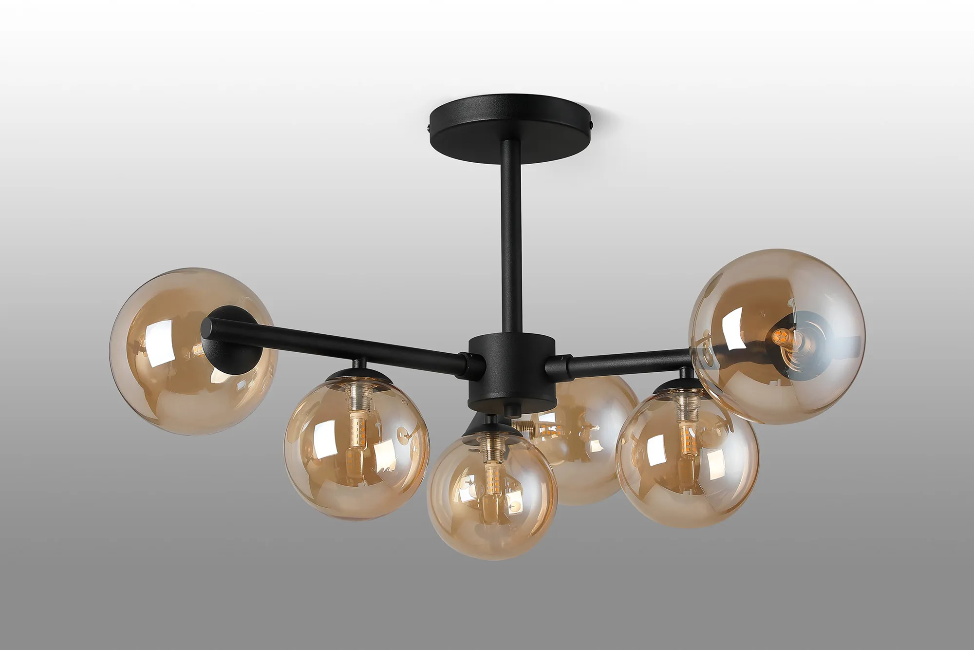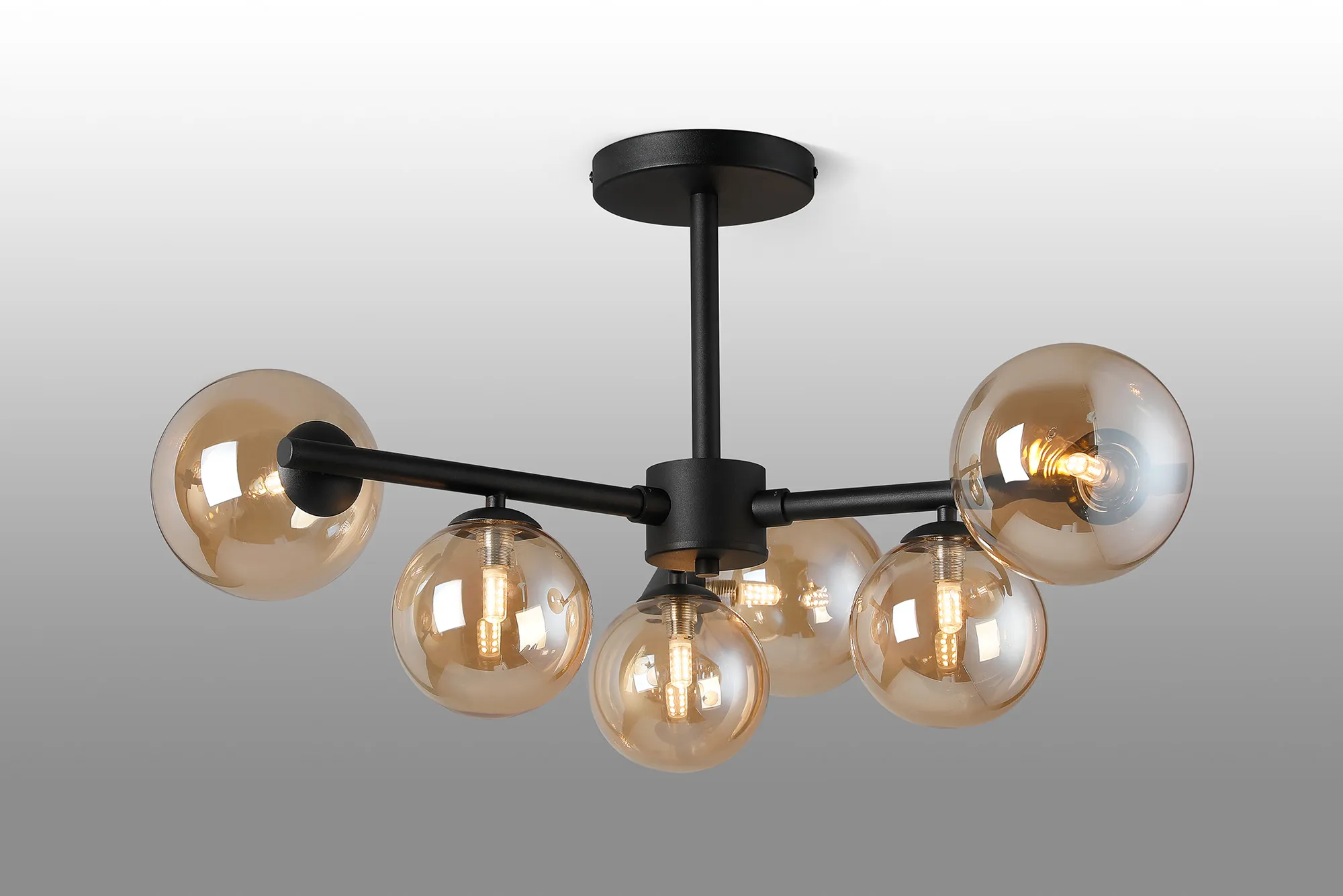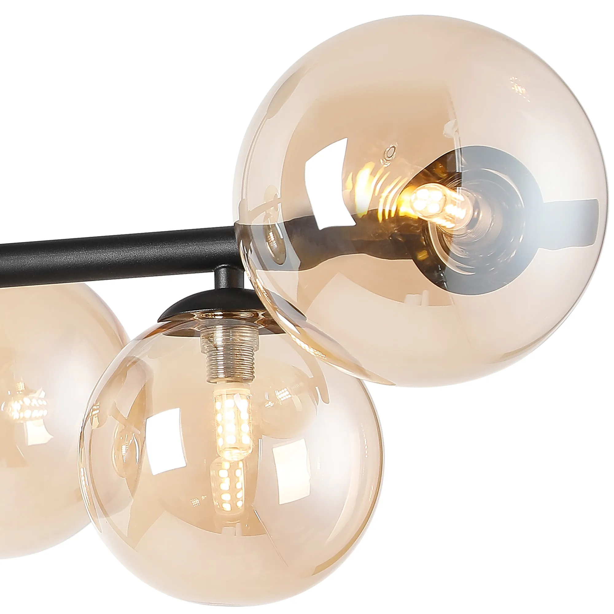 OTHER Lanciano 71.5cm Semi-Flush 3 Arm Ceiling Light, 6 x G9, Satin Black, Amber Plated Glass