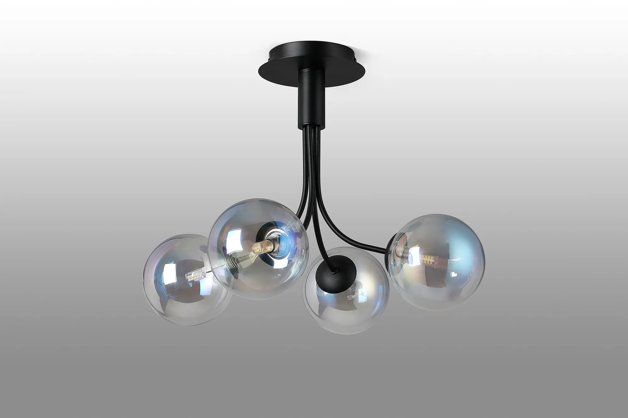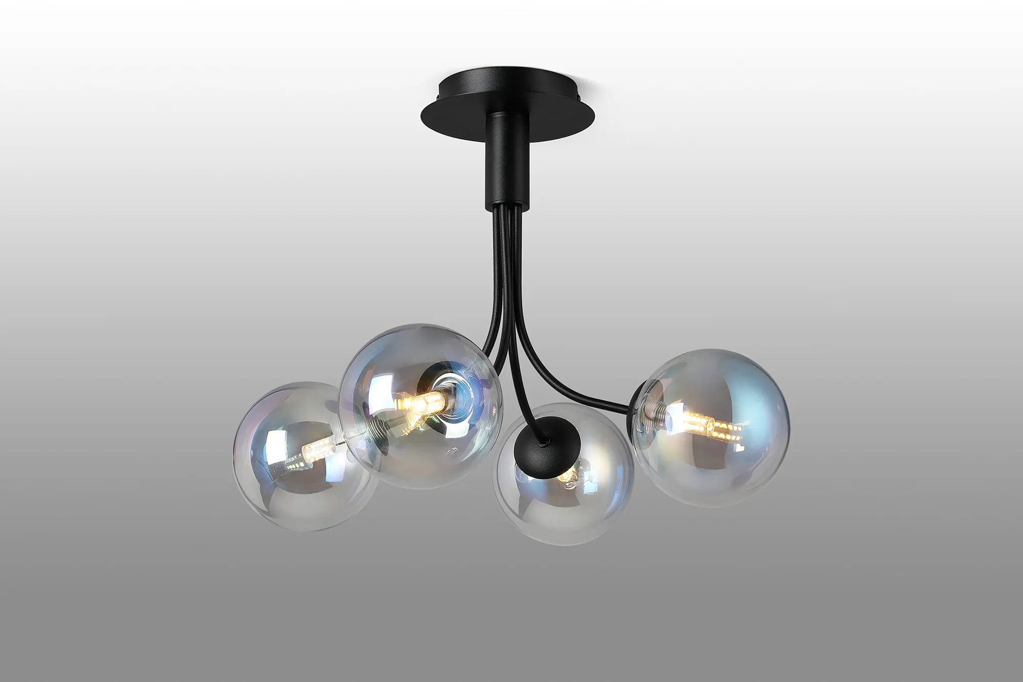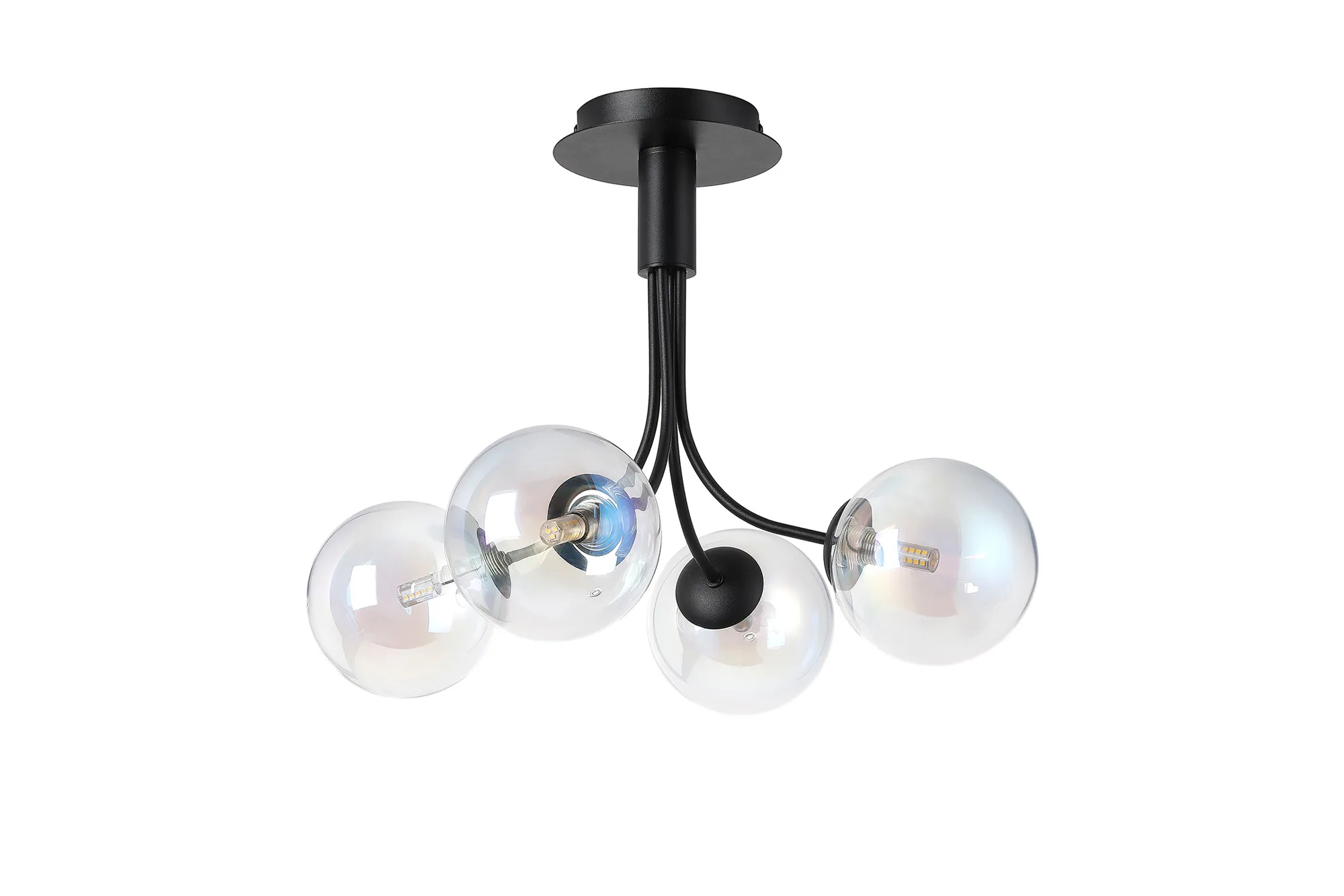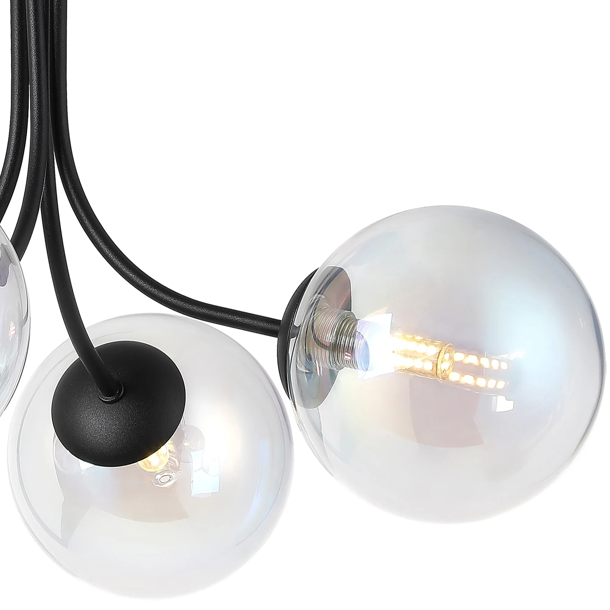 Lanciano Semi Flush Ceiling Light, 6 x G9, Satin Black, Iridescent Plated Glass