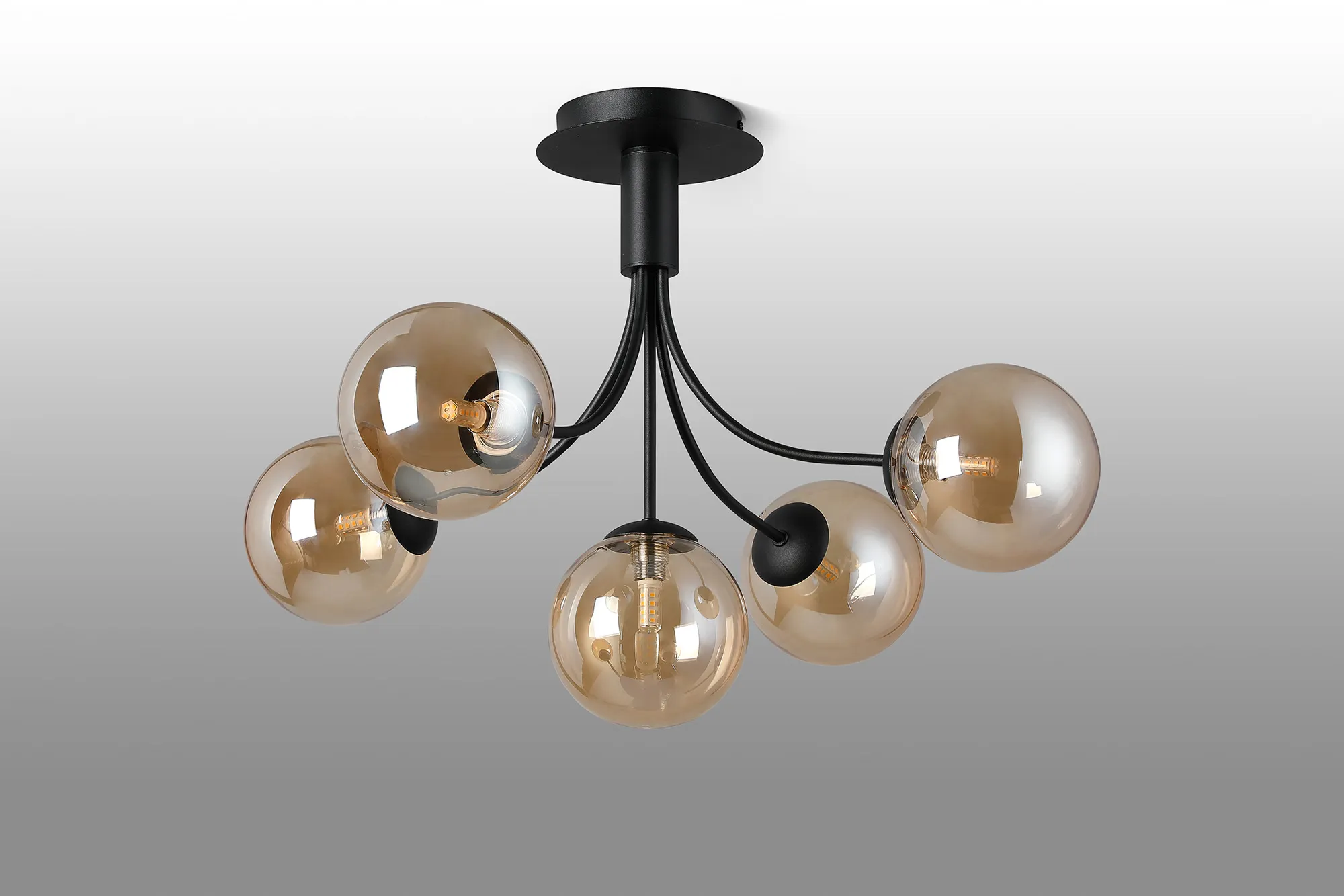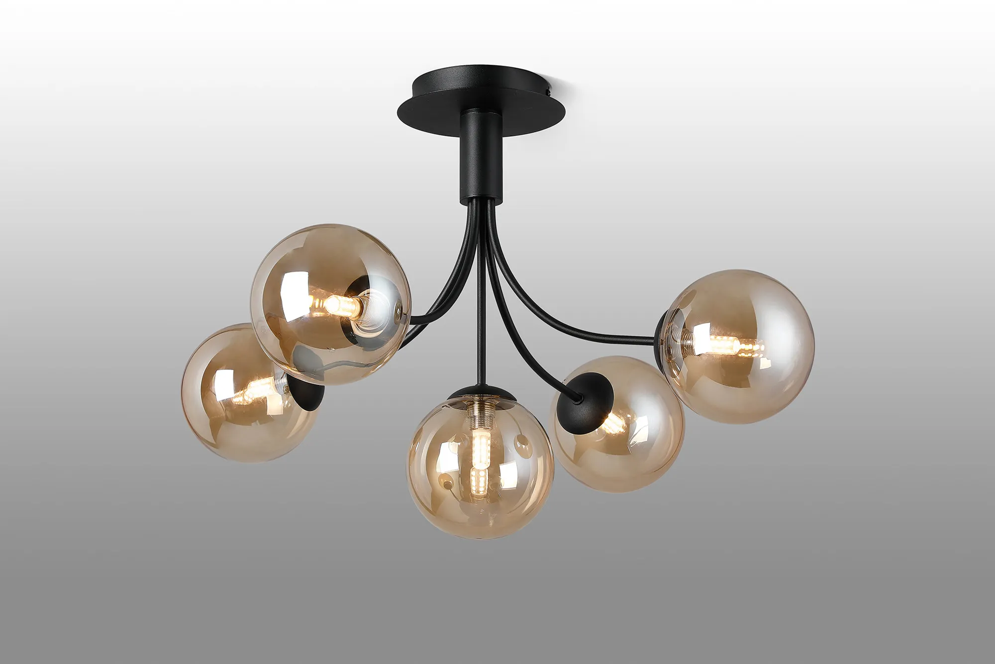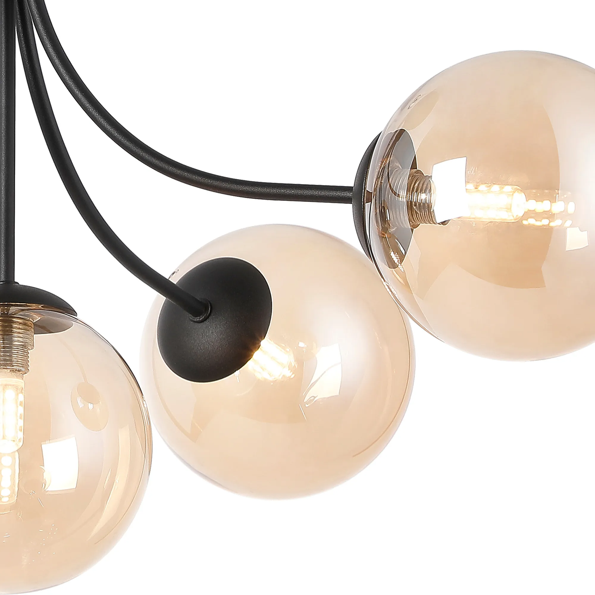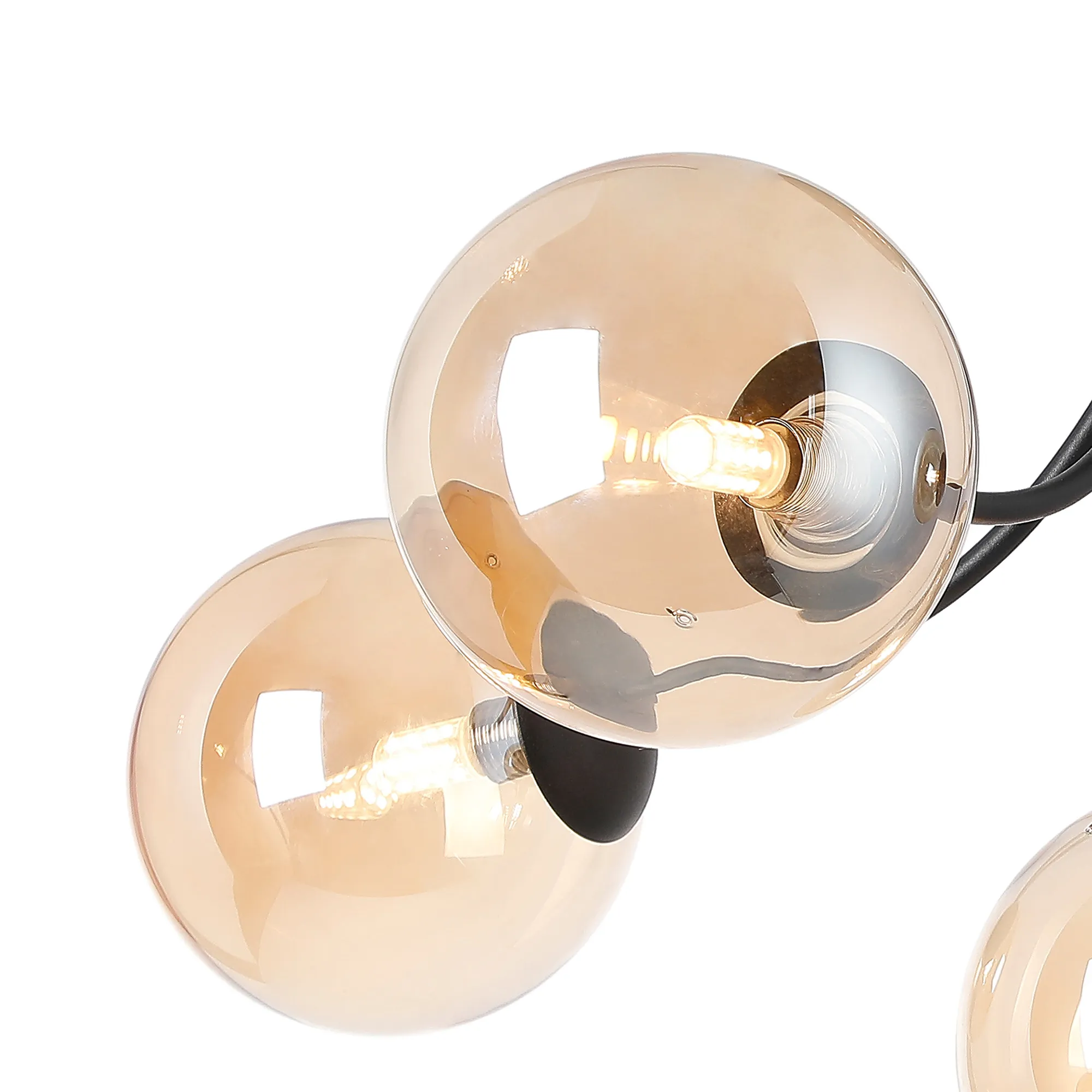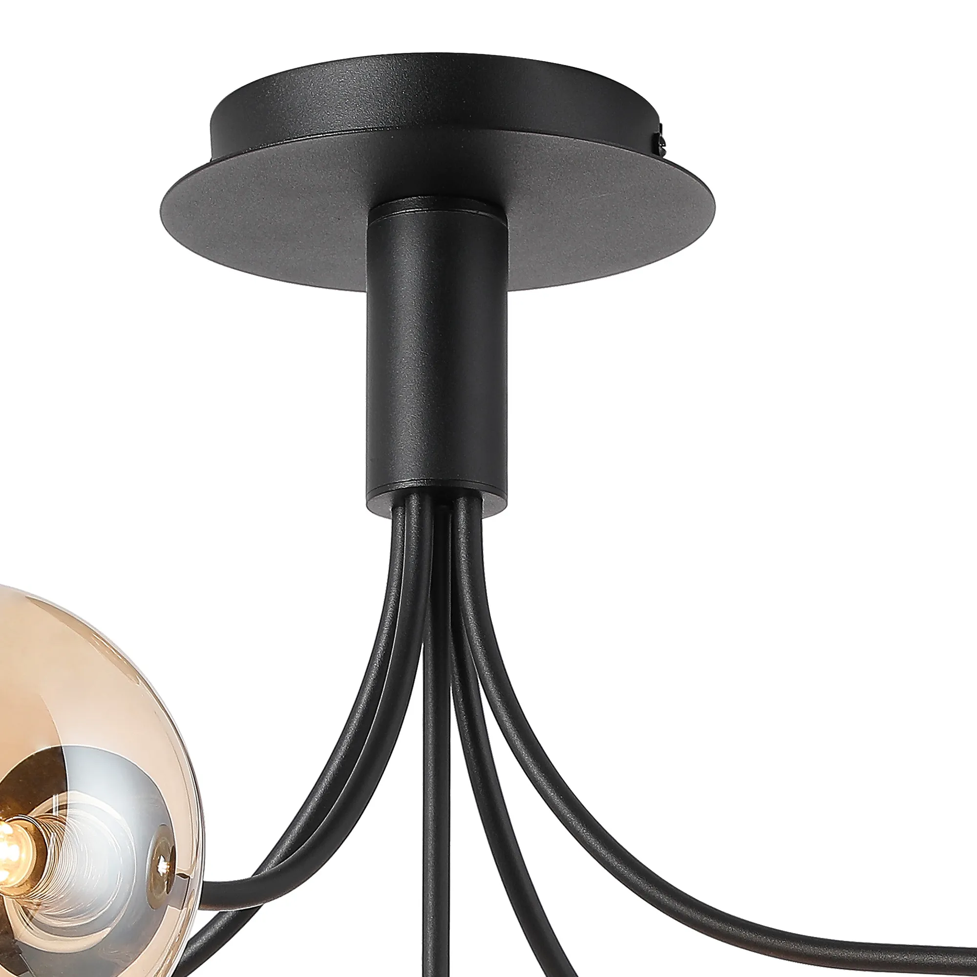 Lanciano Semi Flush Ceiling Light, 6 x G9, Satin Black, Amber Plated Glass