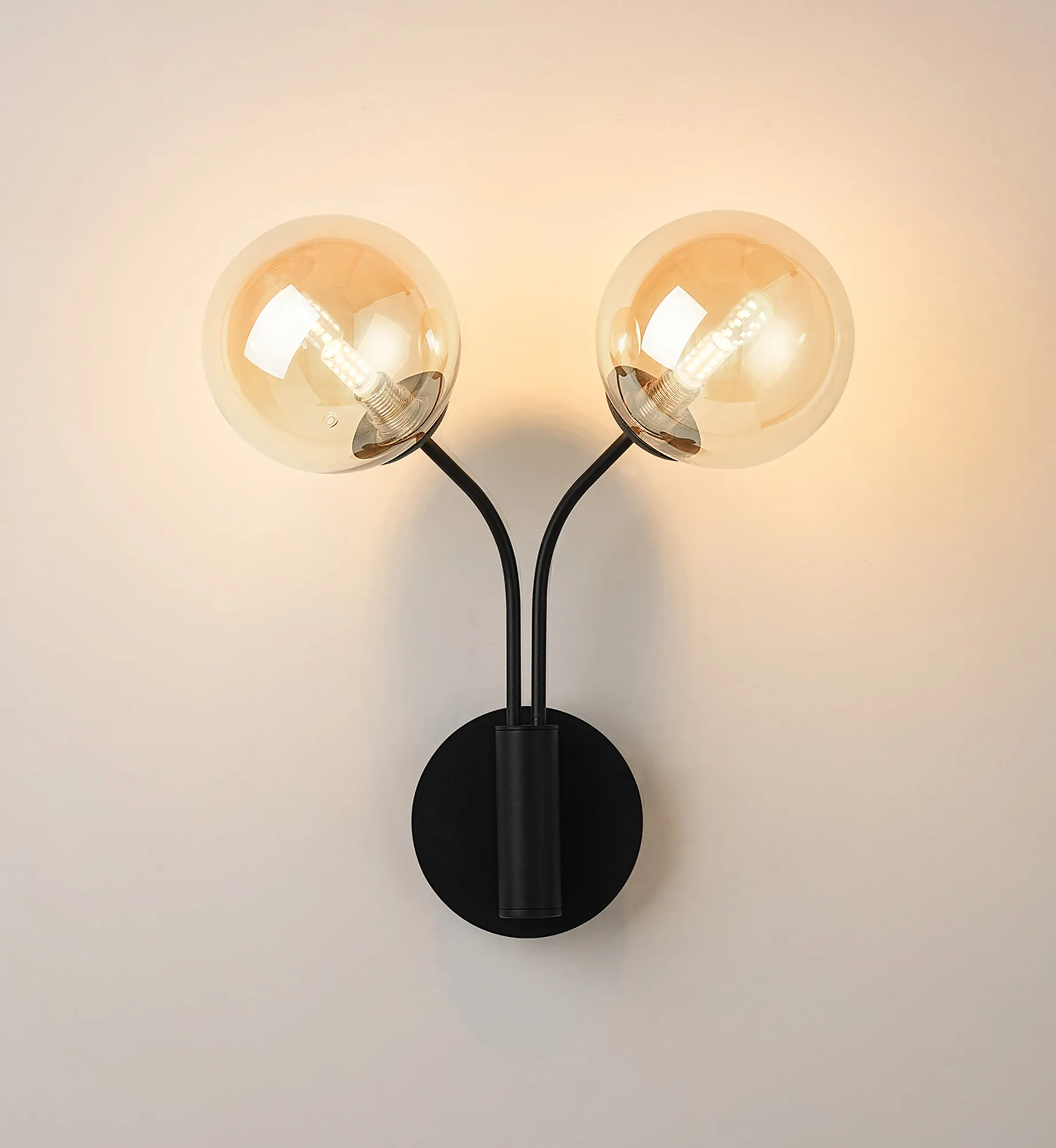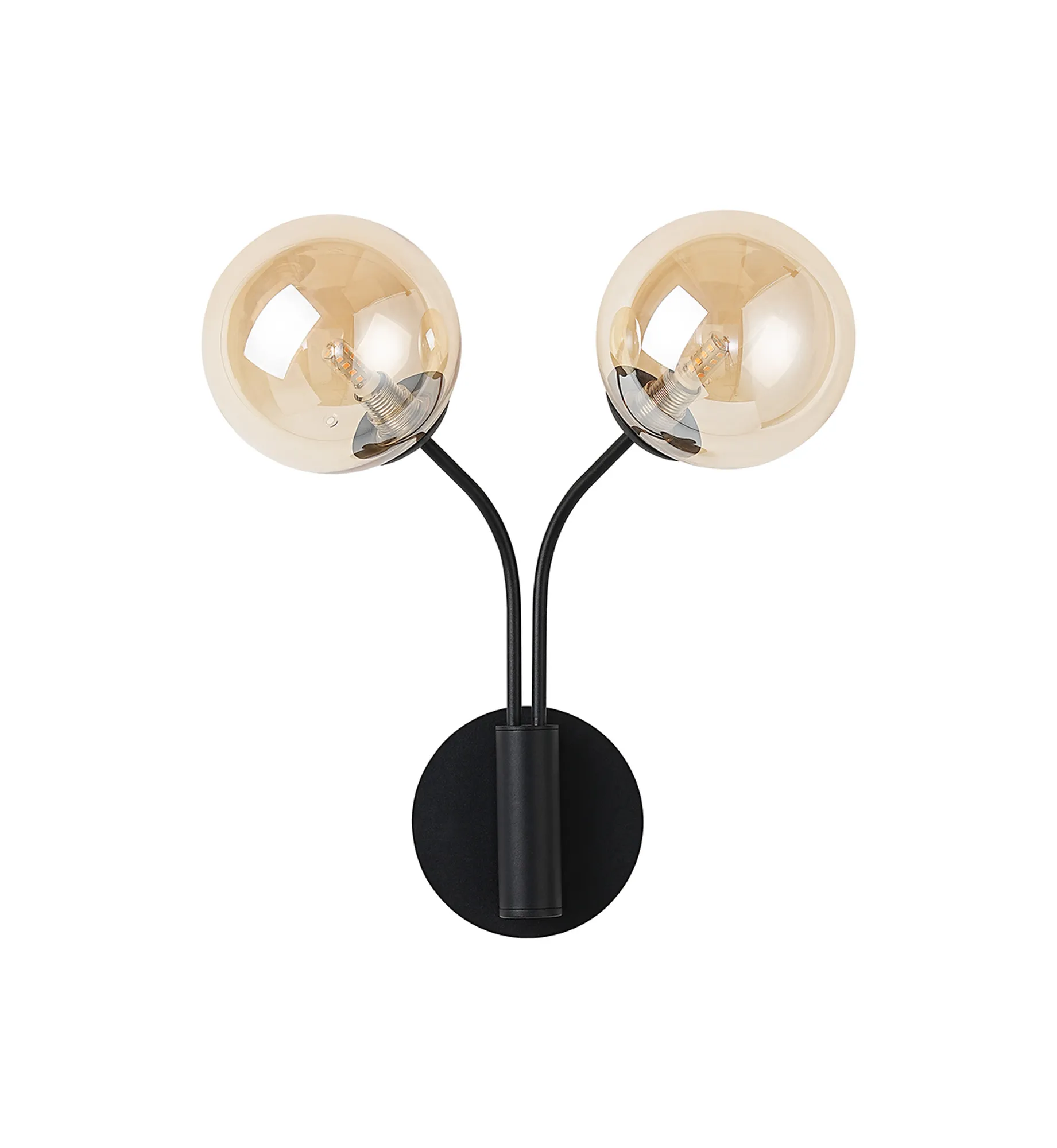 OTHER Lanciano Curved Arm Wall Lamp, 2 x G9, Satin Black, Amber Plated 13cm Glass