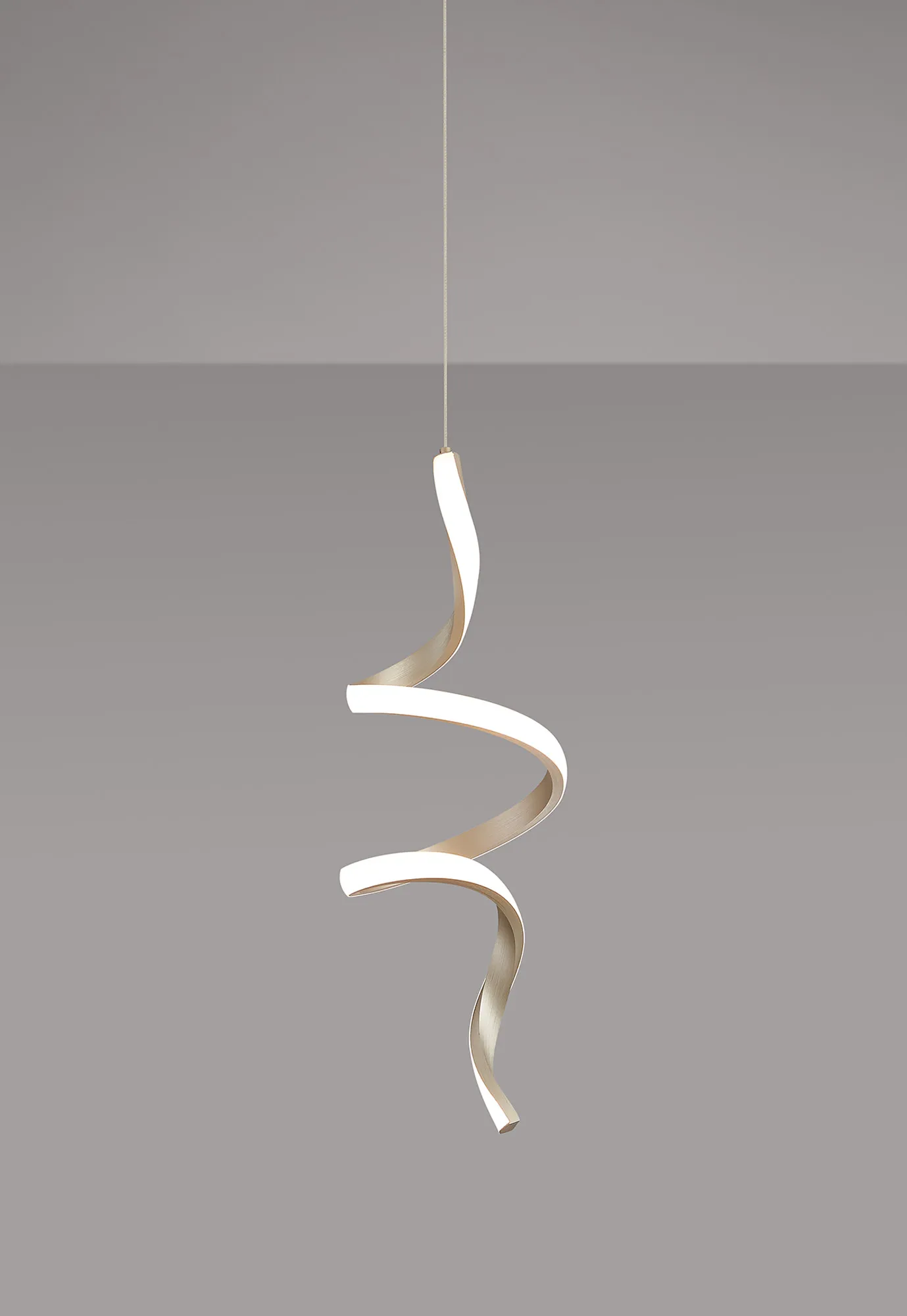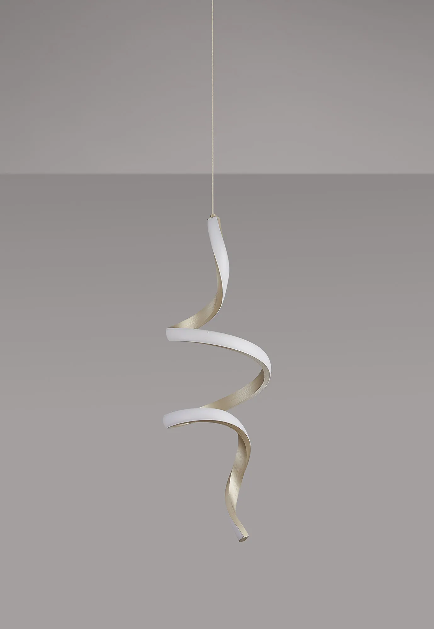 Susegana Style H, Brushed Gold, Spiral LED, 15W, 3000K, 730lm, 2.5m Assembly Pendant With A DC Plug