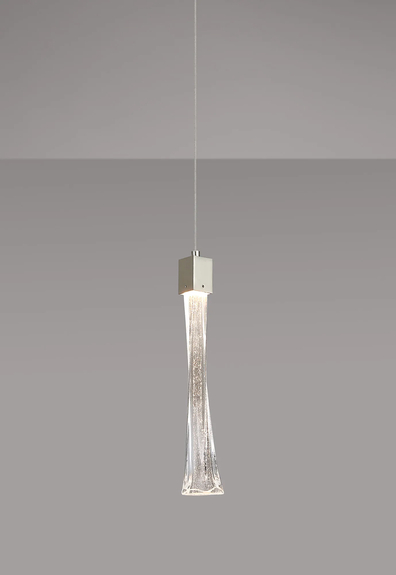 Susegana Style P, Black Chrome/Clear Twisted Glass, 3W LED, 3000K, 100lm, 2.5m Assembly Pendant With A DC Plug