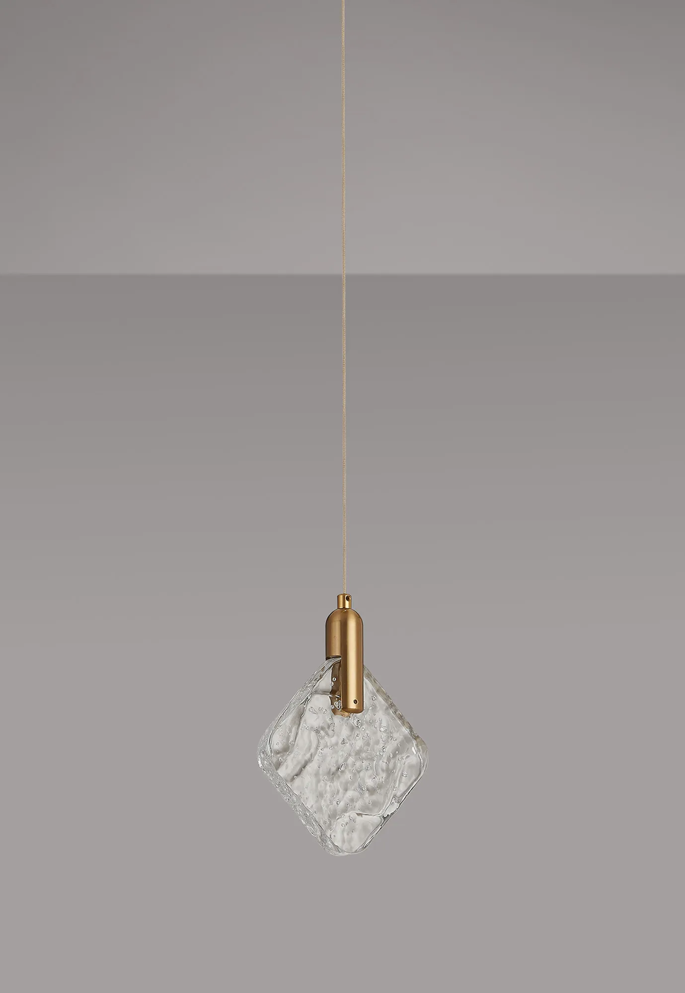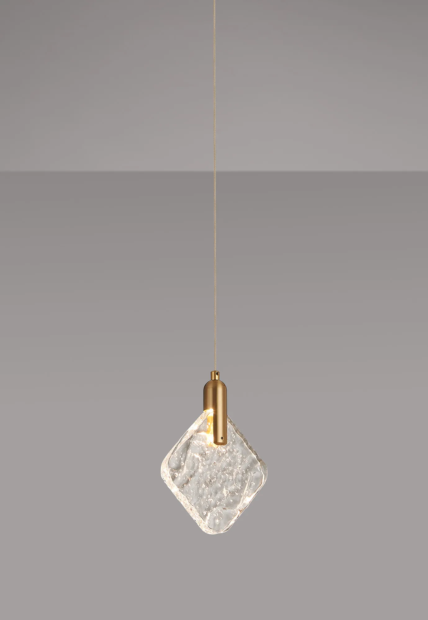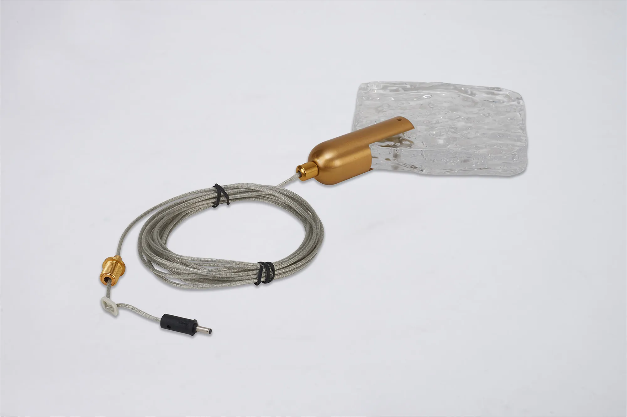 Susegana Style R, Brass/Clear Crackled Square Acrylic, 3W LED, 3000K, 110lm, 2.5m Assembly Pendant With A DC Plug