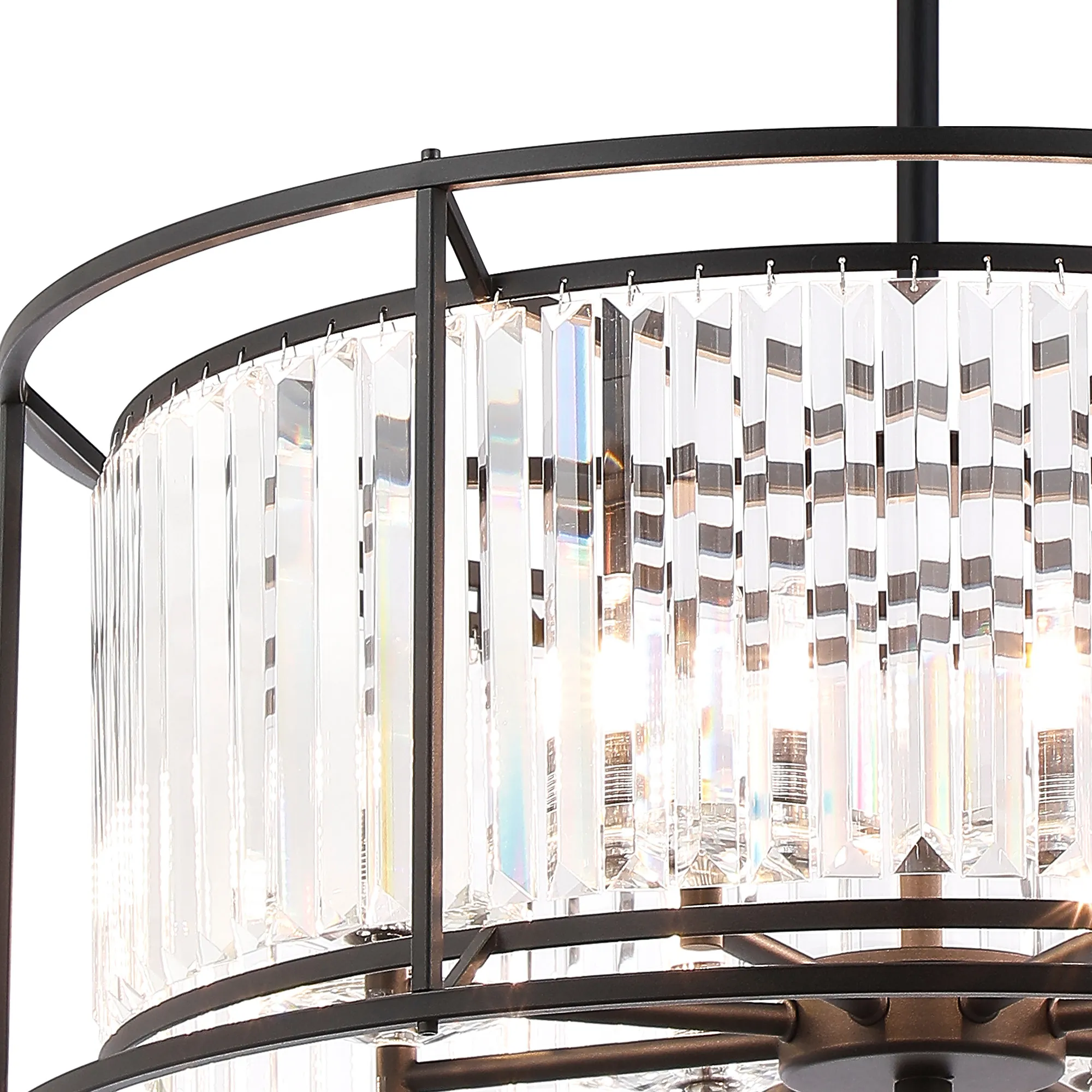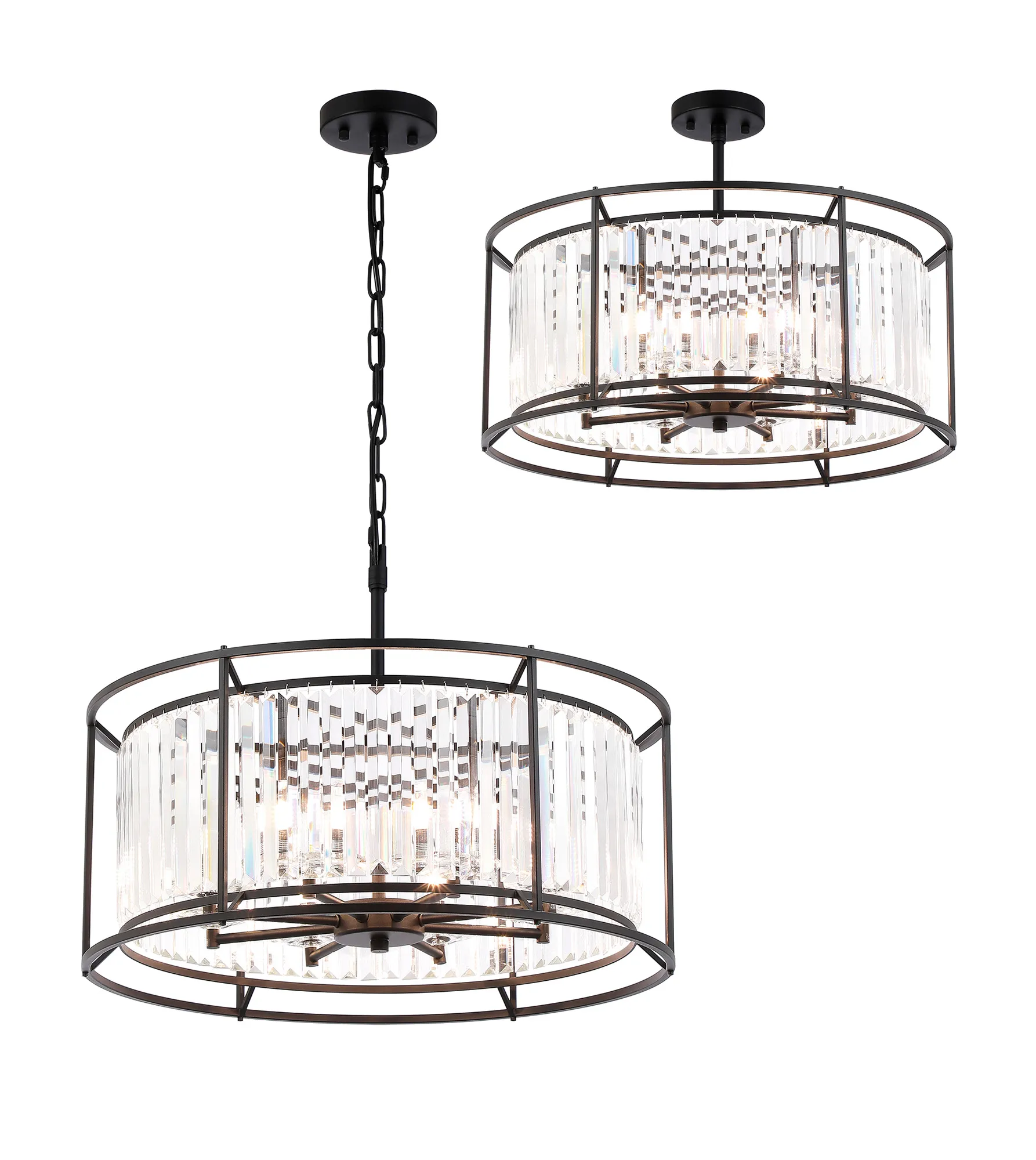 Ceneselli 36cm Pendant/Semi Ceiling Convertible, 3 x G9, IP44, Satin Black/Clear Crystal