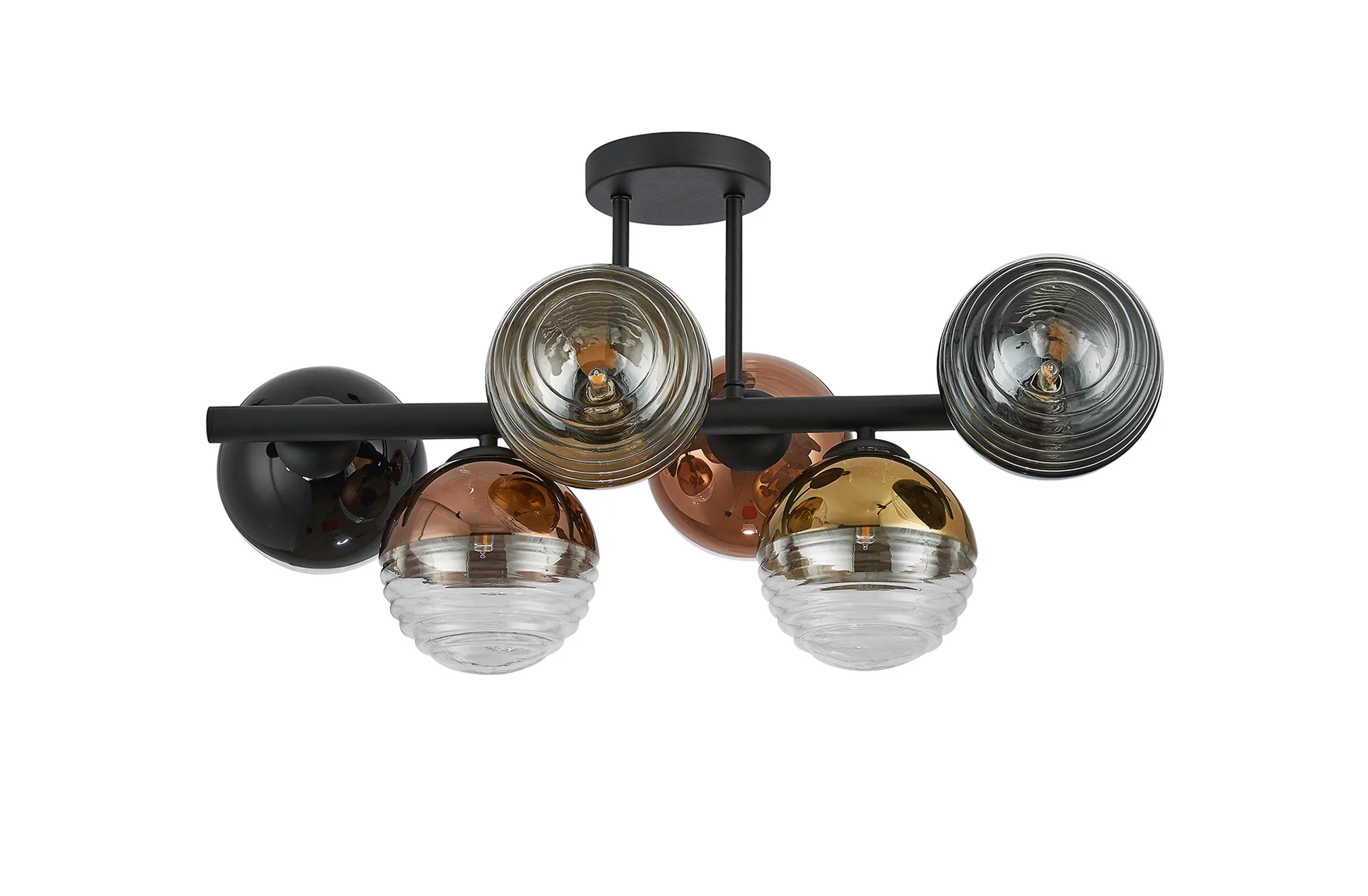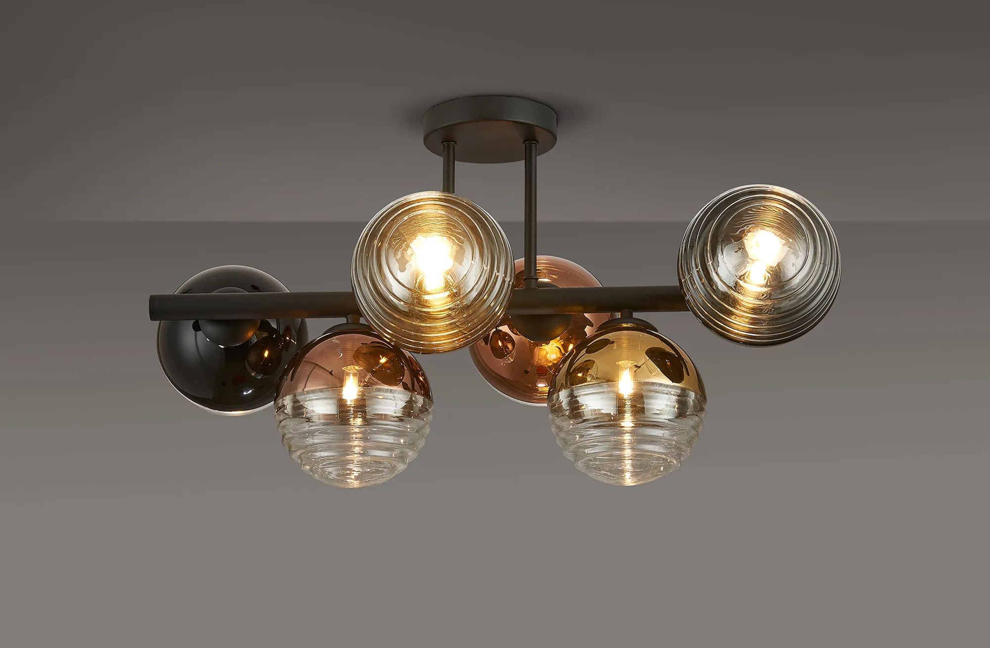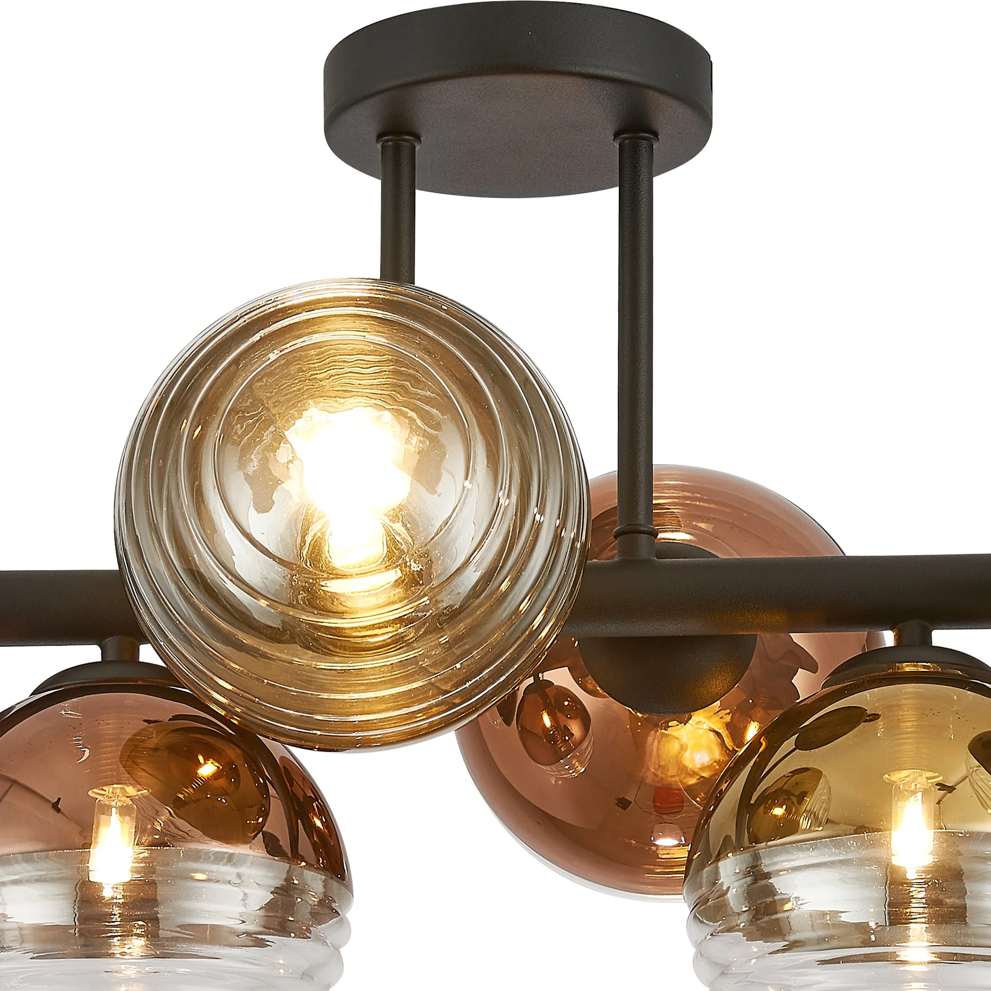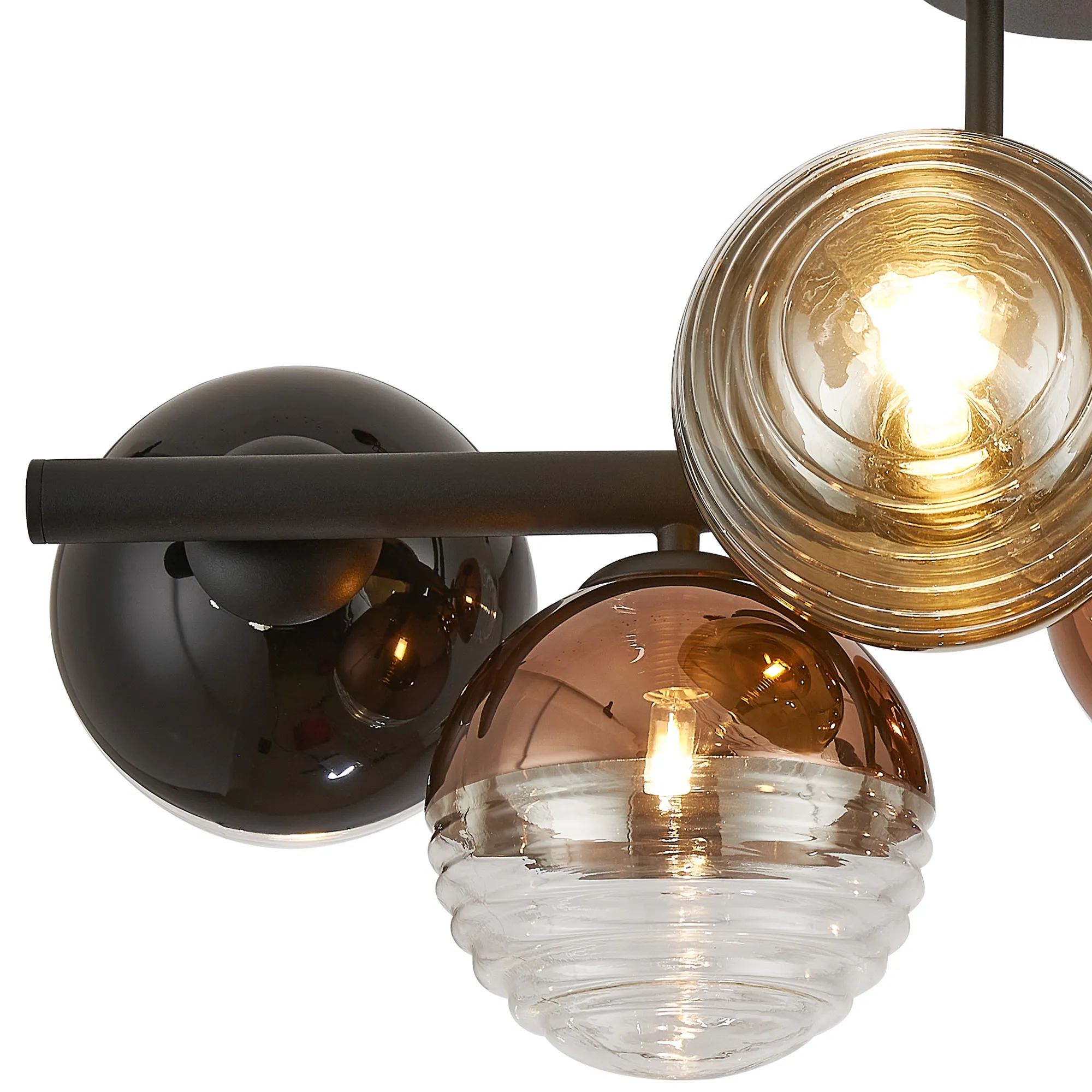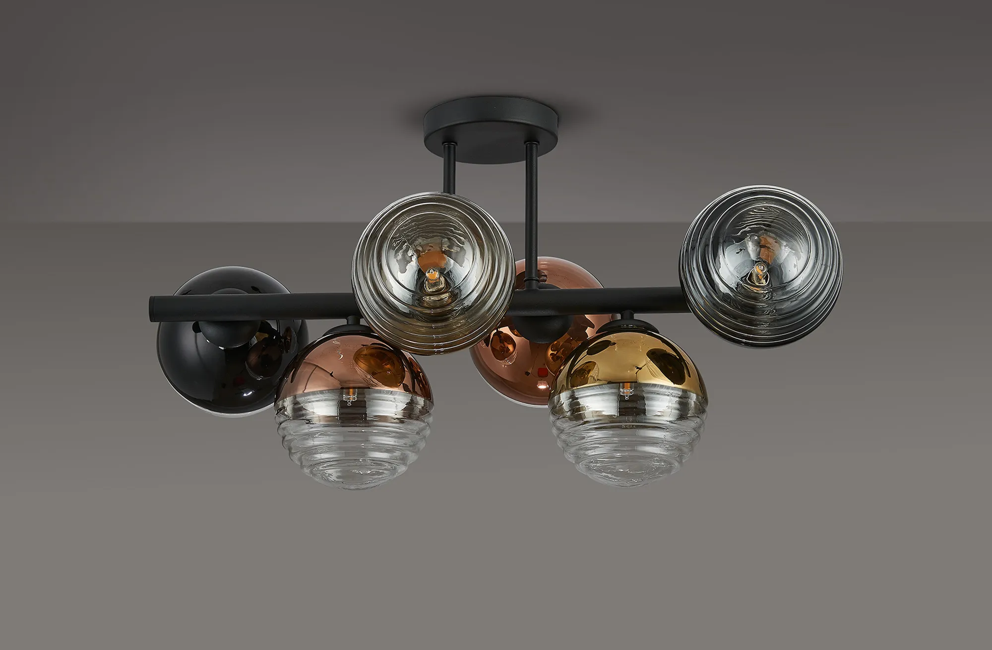 Saccolongo Semi-Flush Ceiling Light, 6 x G9, Satin Black/Black/Clear Two-Tone Round Spiral Glass (A)