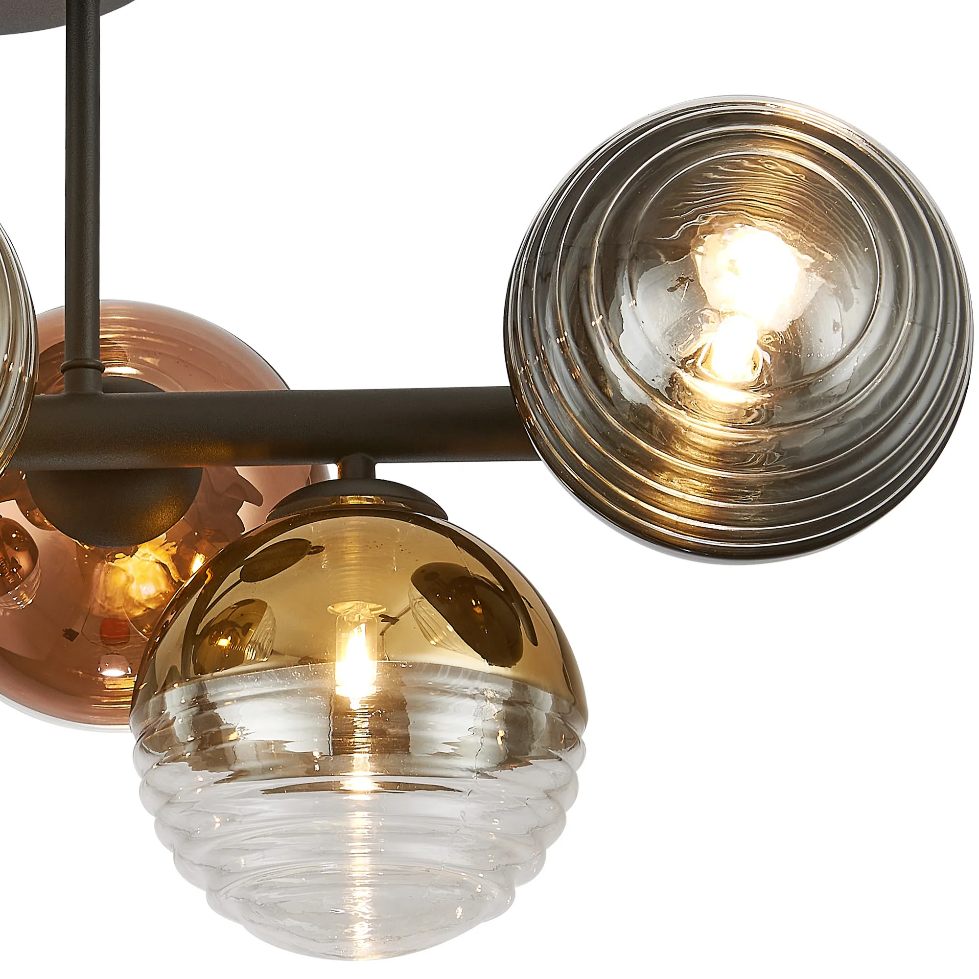 Explore our Saccolongo range, featuring unique round glass shades perfect for a variety of G9 fittings. Each 15cm glass shade is two-toned, available in stunning combinations: black plated/clear, copper/clear, chrome/clear and gold/clear. These versatile and elegant shades add a touch of sophistication to any setting.