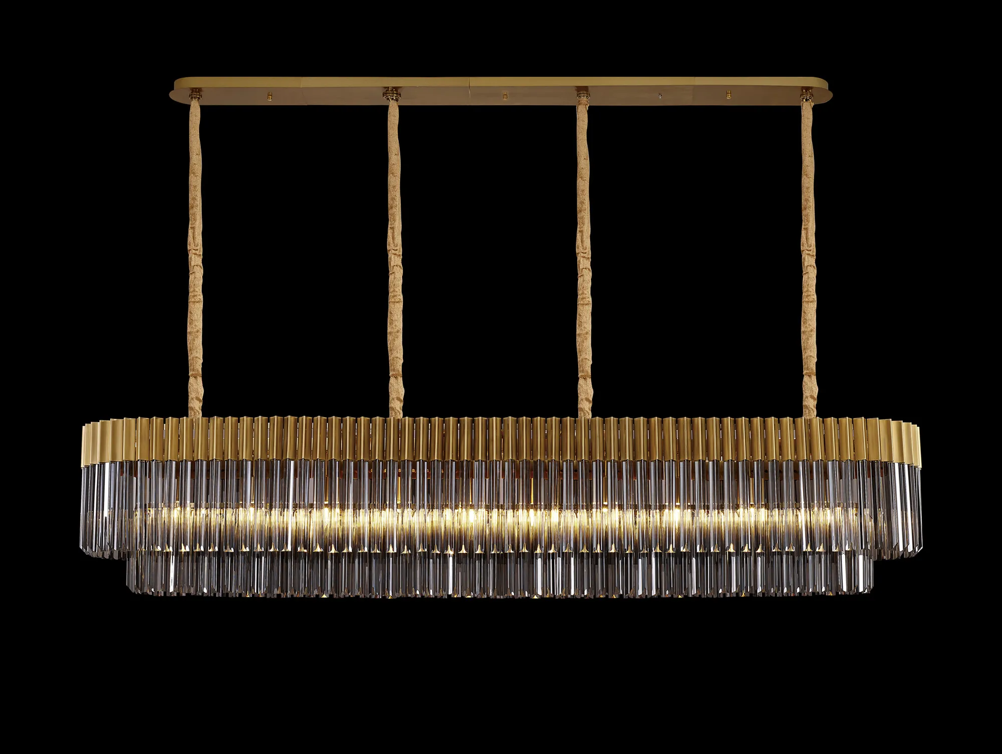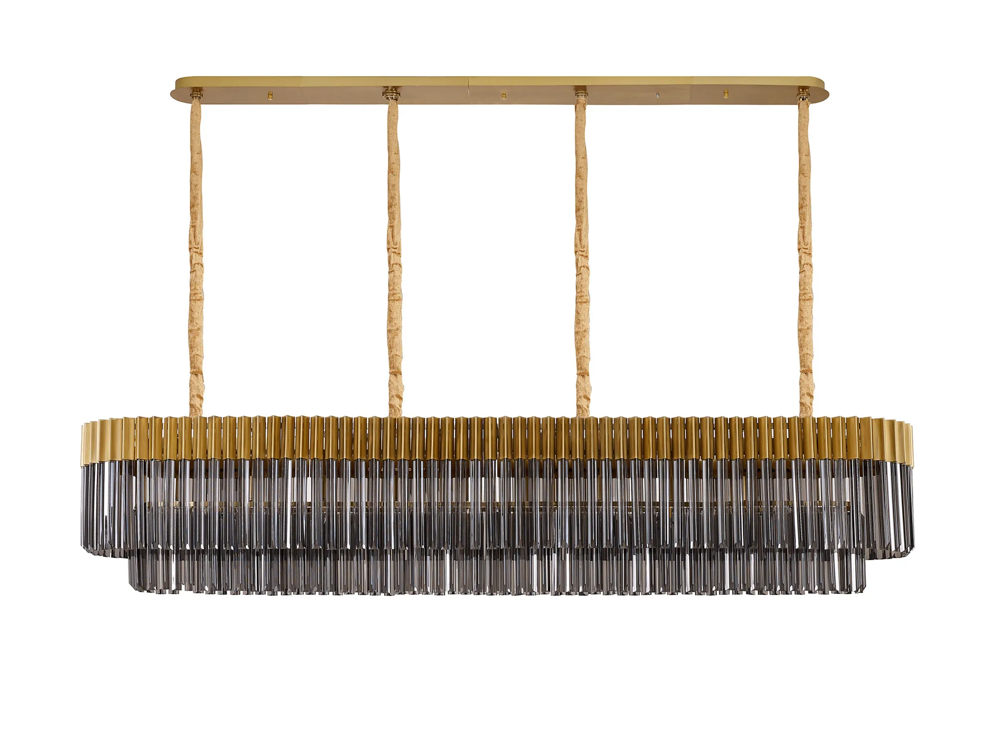 Magliano Modular 250 x 40cm Linear Pendant, 13 Light E14, Brass/Smoked Sculpted Glass