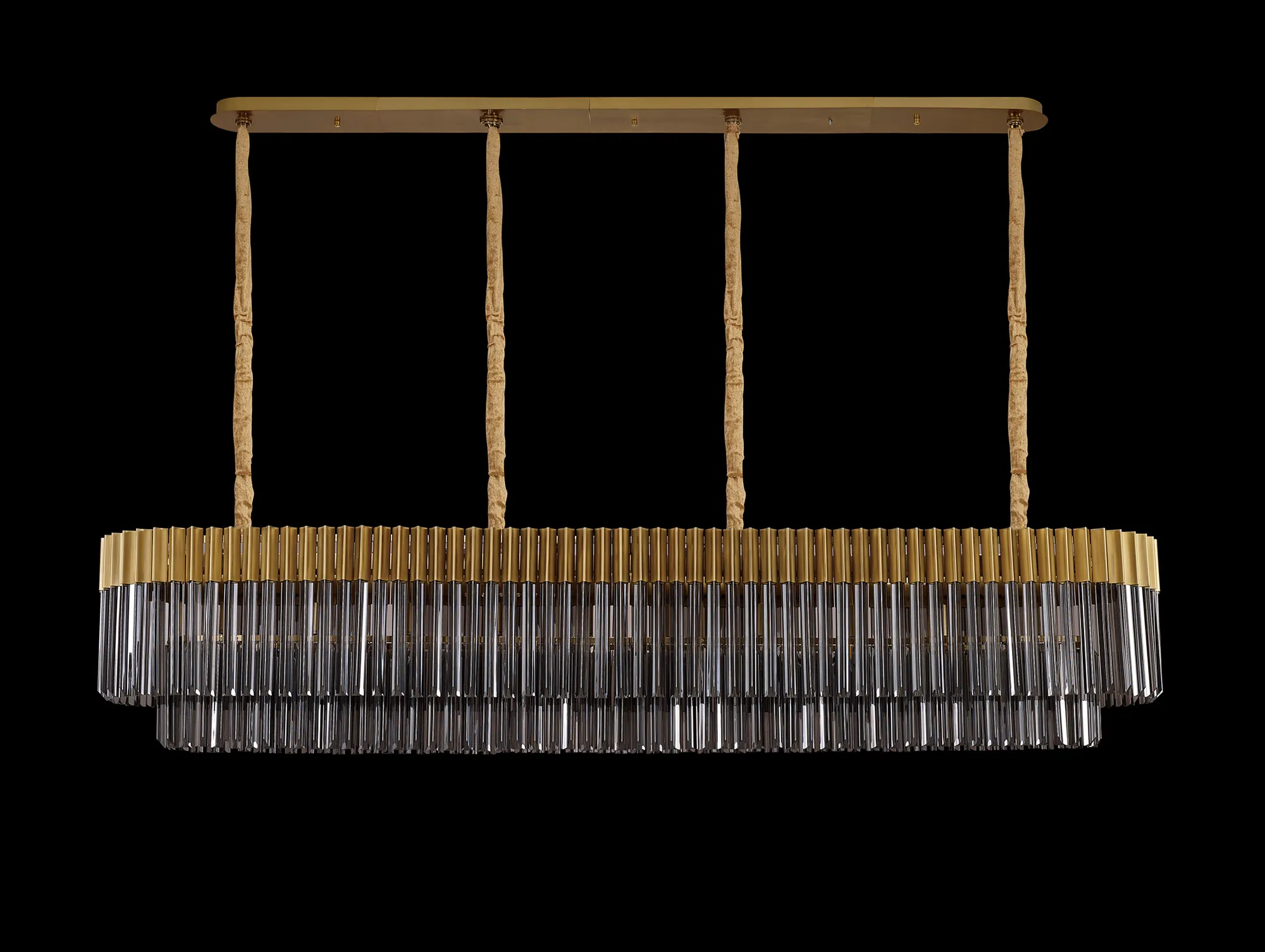Magliano Modular 250 x 40cm Linear Pendant, 13 Light E14, Brass/Smoked Sculpted Glass, Item Weight: 67kg