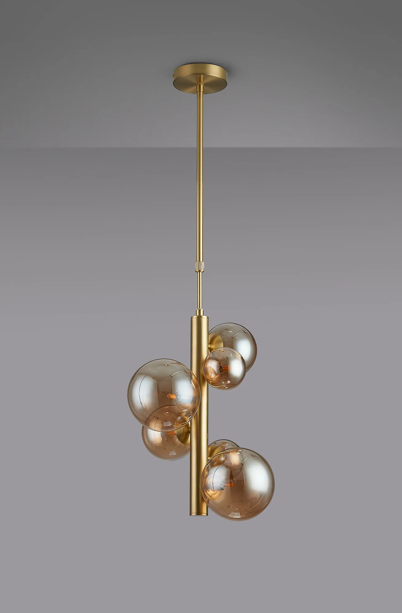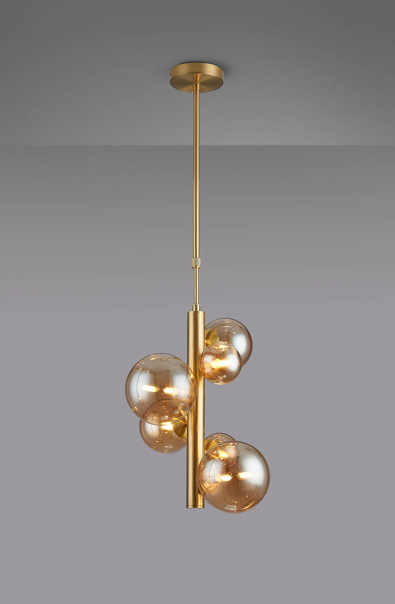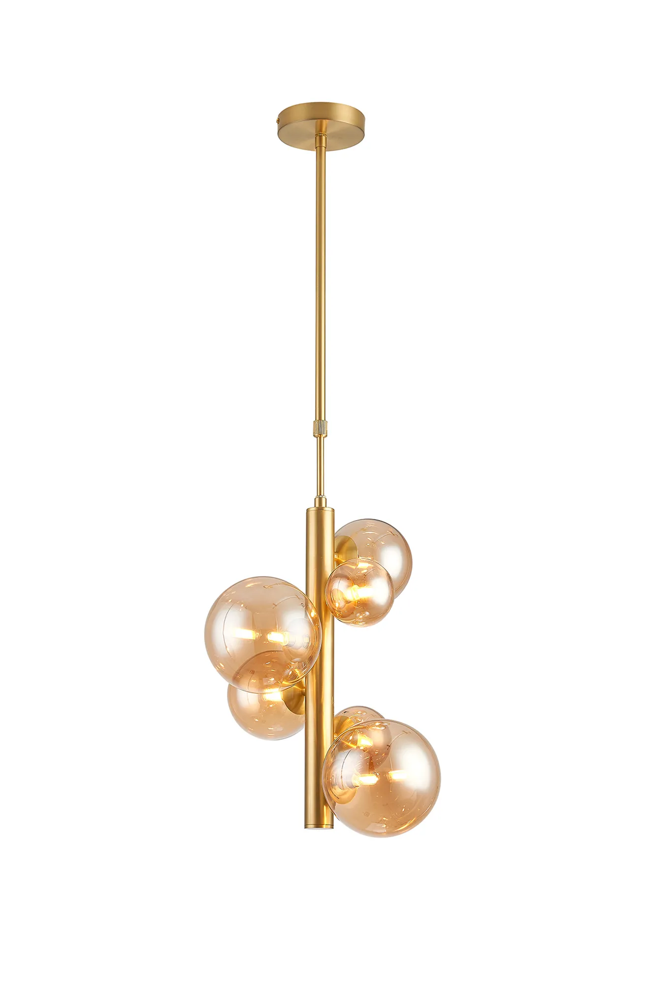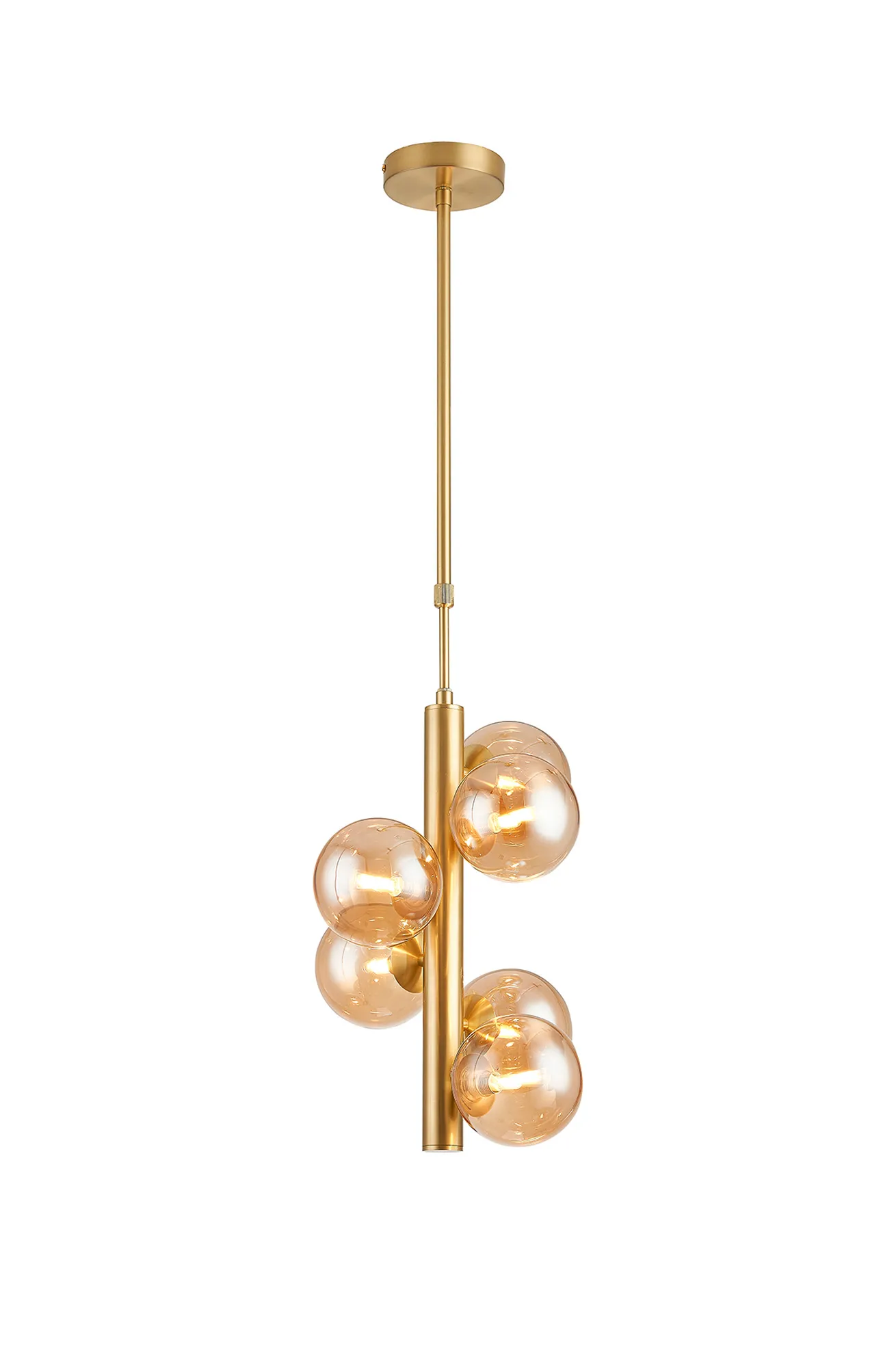 OTHER Lanciano 31cm Vertical Linear Telescopic Pendant, 6 x G9, Satin Gold, Amber Plated Mixed Size Glass