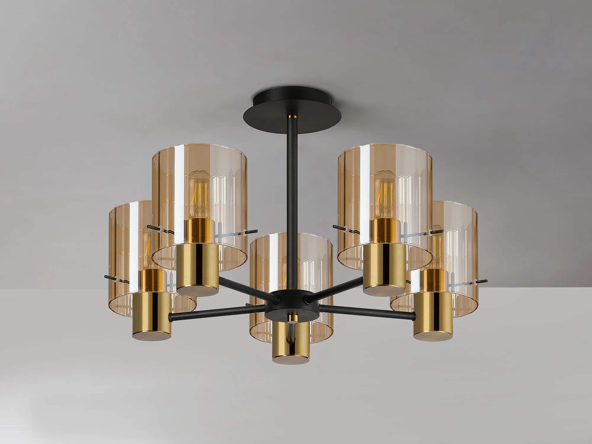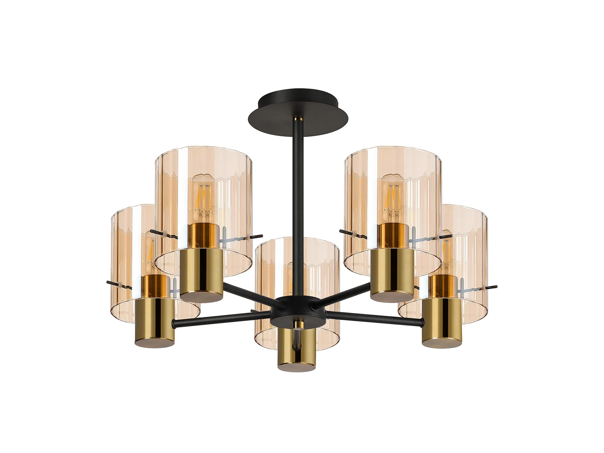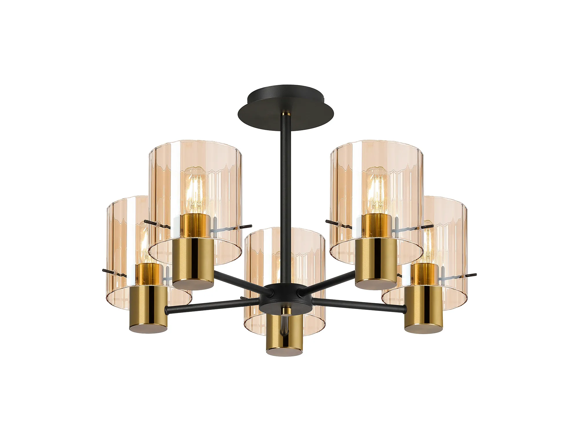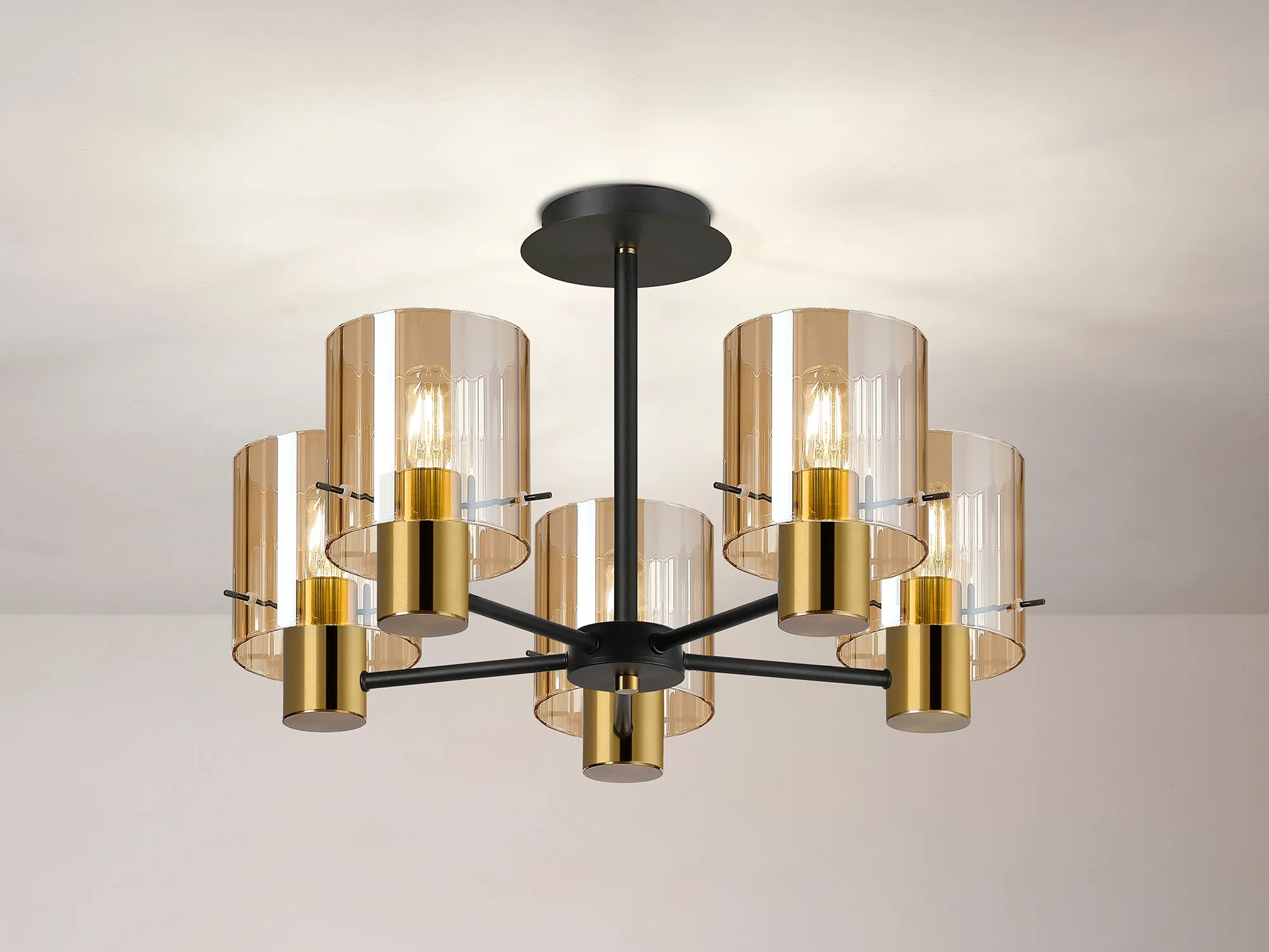 OTHER Arienzo 36cm Semi Flush Light, 5 x E27, Brass/Sand Black/Amber Wide Inner Lines